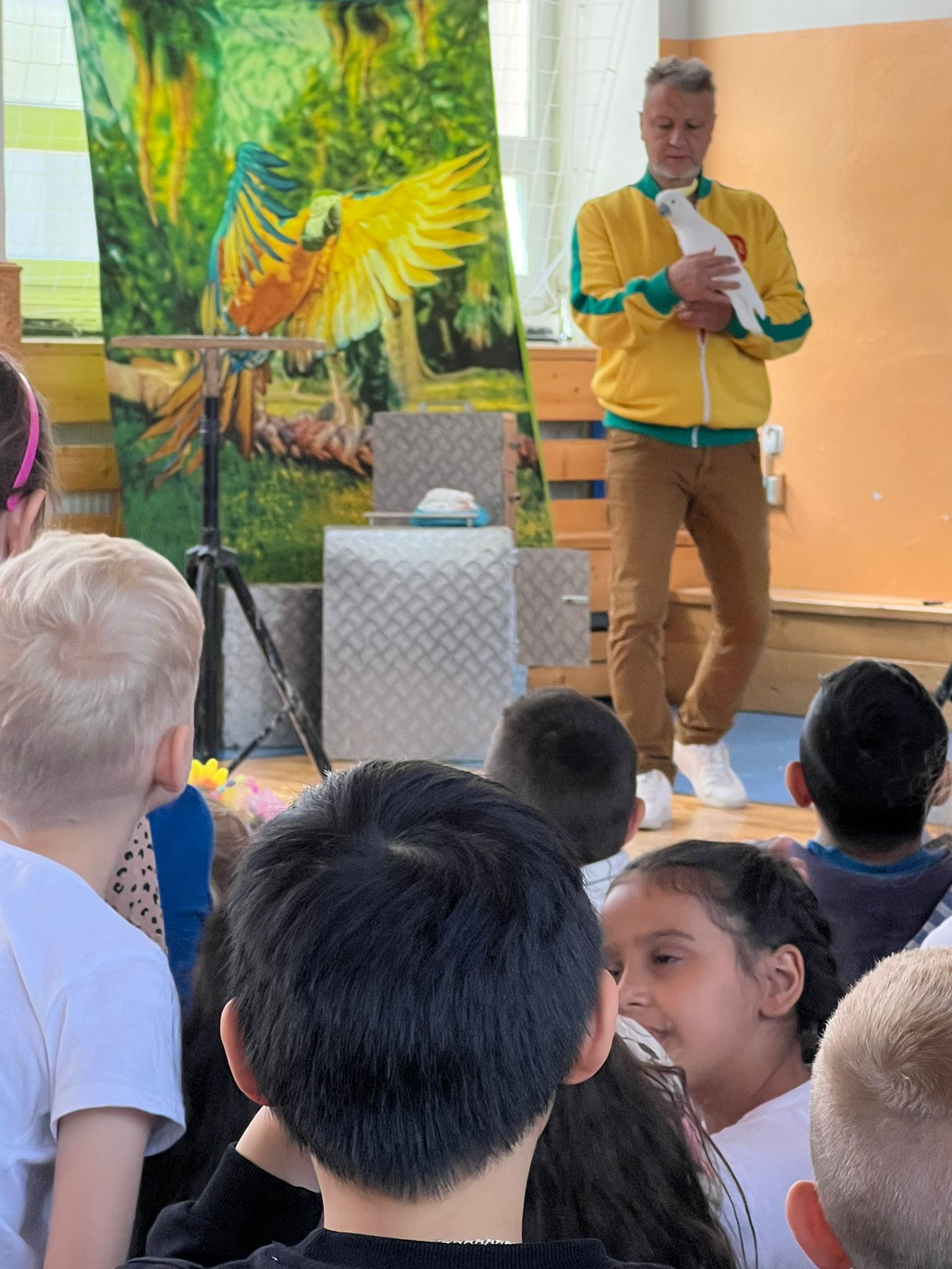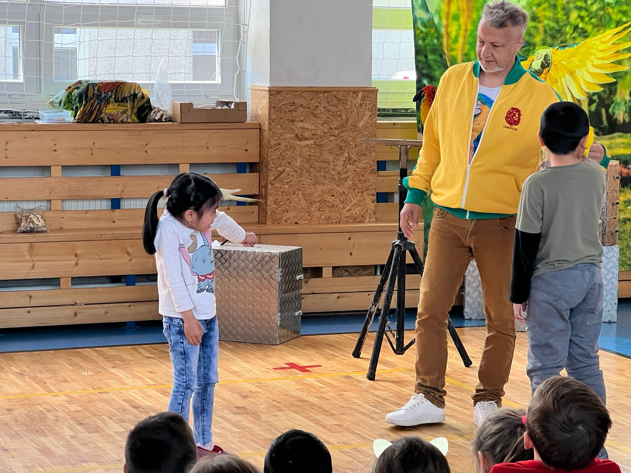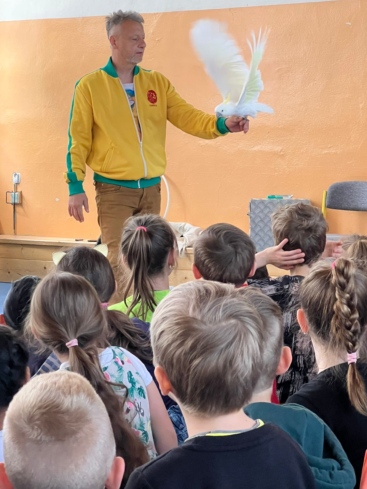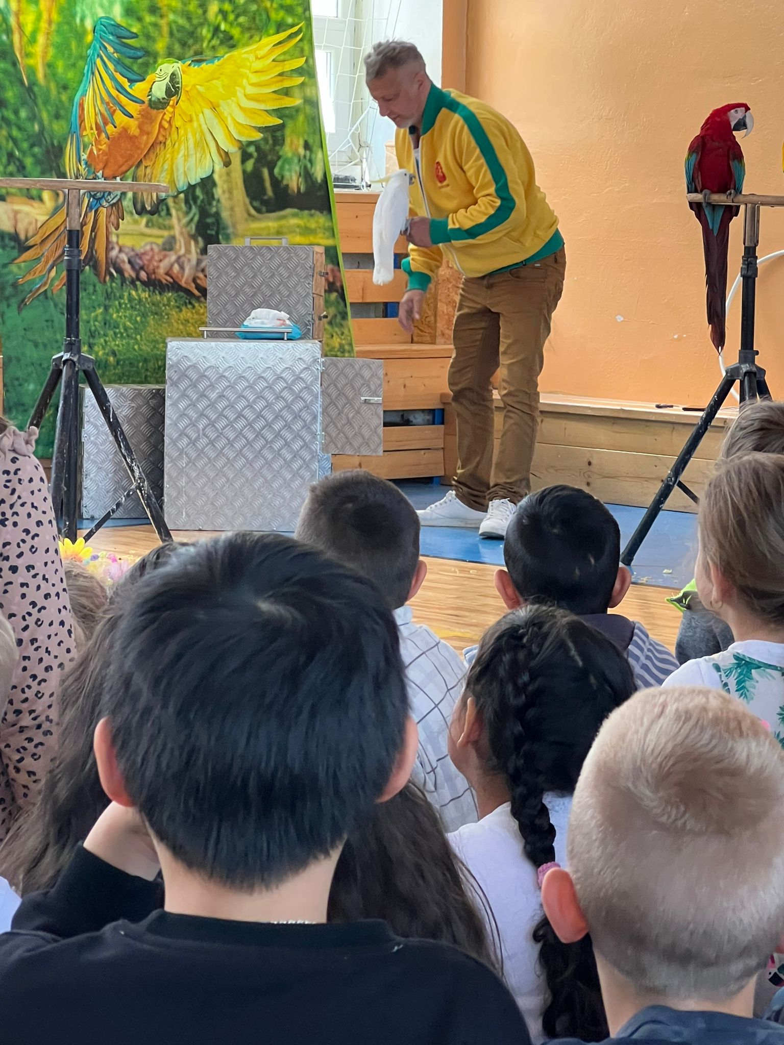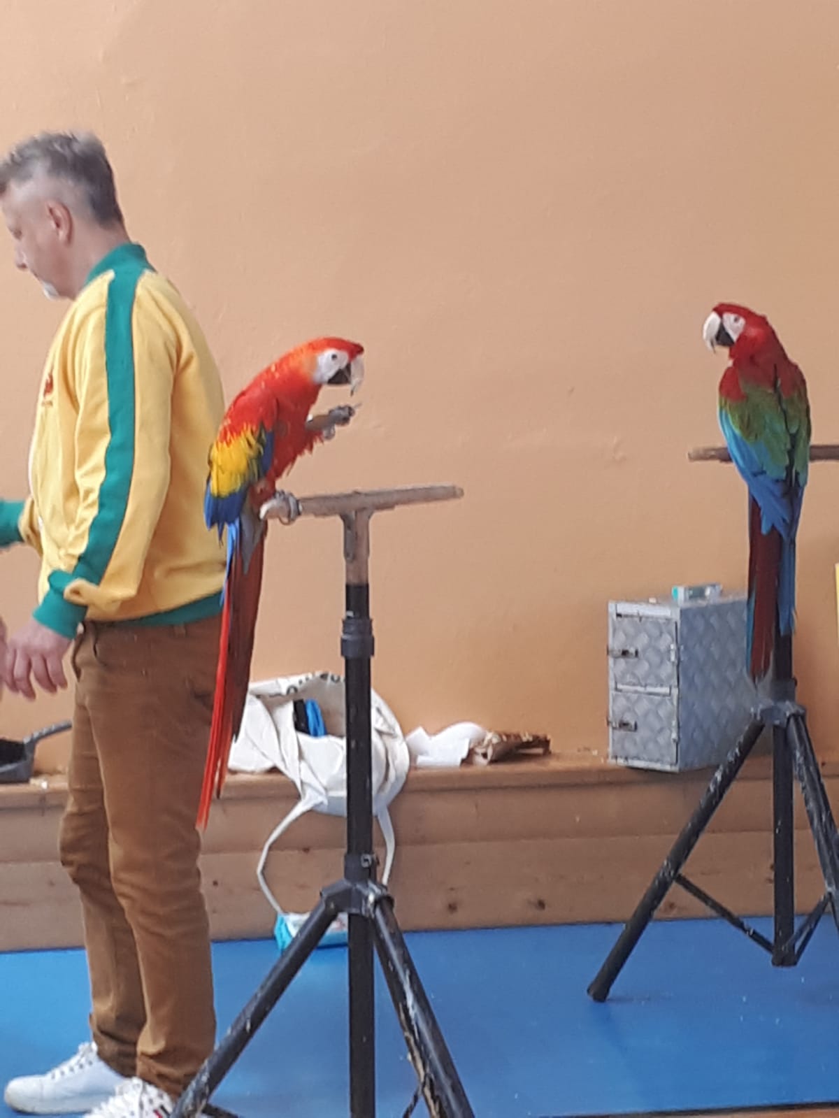V pátek 19. května 2023 se v naší škole, pro žáky a žakyně 1. stupně, uskutečnilo představení "Papoušci z celého světa". Celým programem děti provázel pan Radek Jareš a se svým kolegou. Dětem přivezli na ukázku celkem 14 papoušků. Papoušci dětem předvedli létání, válení sudů, houpačku, šplh, namlouvání, hádku a spoustu dalších kousků. Těšíme se zase někdy příště 🖐