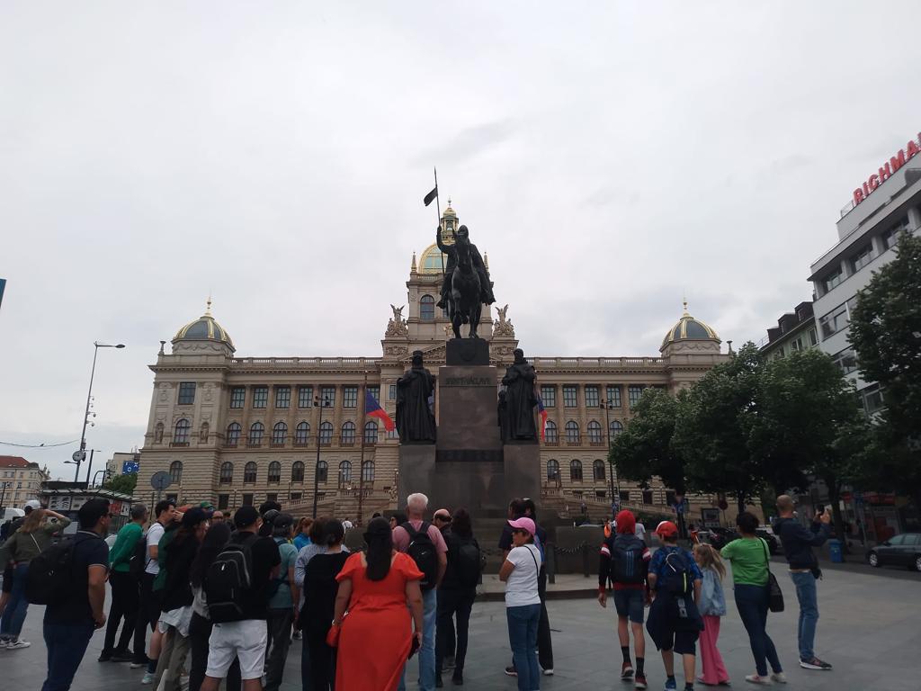 Ve 12 hodin se obě party opět sešly a vydaly se na procházku na Staroměstské náměstí, Karlův most a pak zpátky na Václavské náměstí.