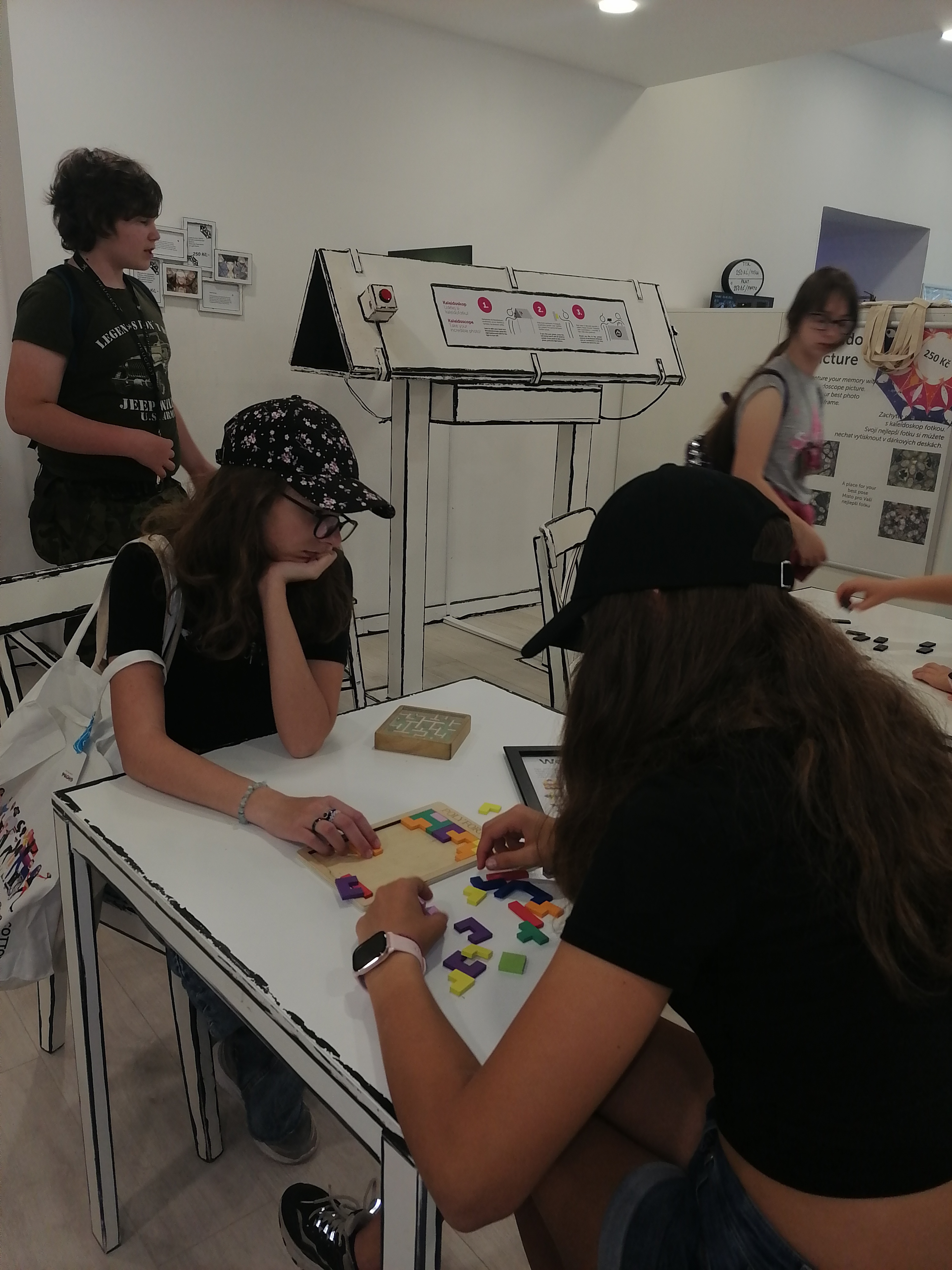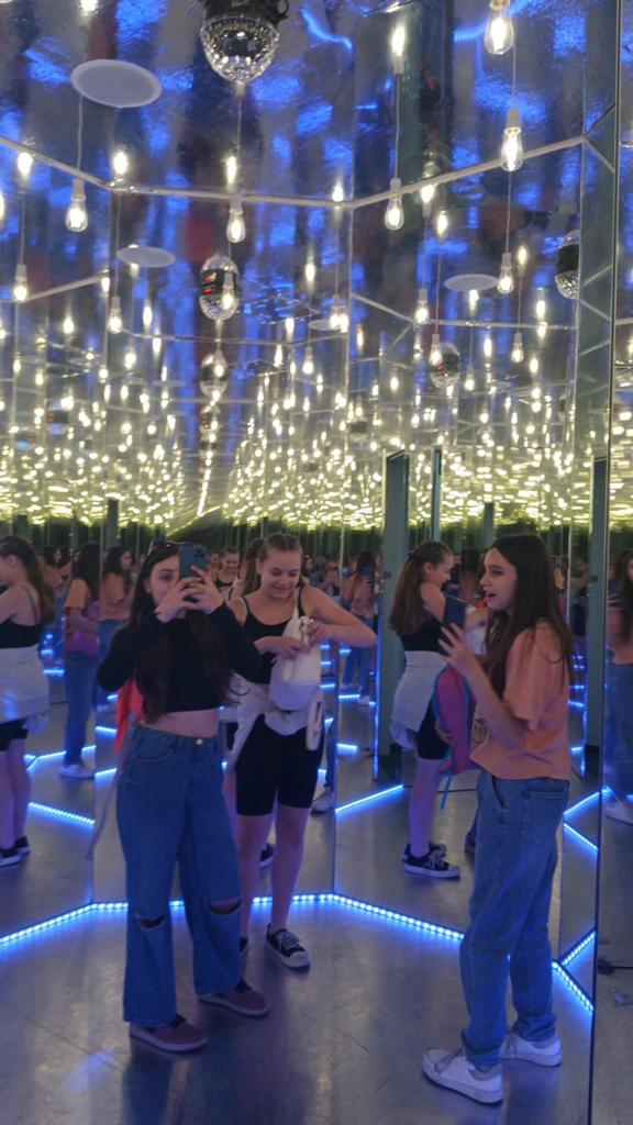 Po příjezdu do Prahy jsme se na chvíli rozdělili. 6. A si šla užít návštěvu Muzea smyslů, 7. B měla čas projít si „Václavák“ a nakouknout do obchodů. Žáky velmi překvapila rychlost lidí na Václavském náměstí, přeci jen to tam žije trošku jinak a více než u nás v Děčíně. No a pak také ceny potravin v obchodech kolem Václavského náměstí. Holt Praha 😊 Po hodince se třídy v muzeu prostřídaly. Pokud vás lákají optické klamy, hlavolamy, zrcadlová bludiště apod., rozhodně návštěvu Muzea smyslů doporučujeme 😊 Žáci si tam užili spoustu zábavy.