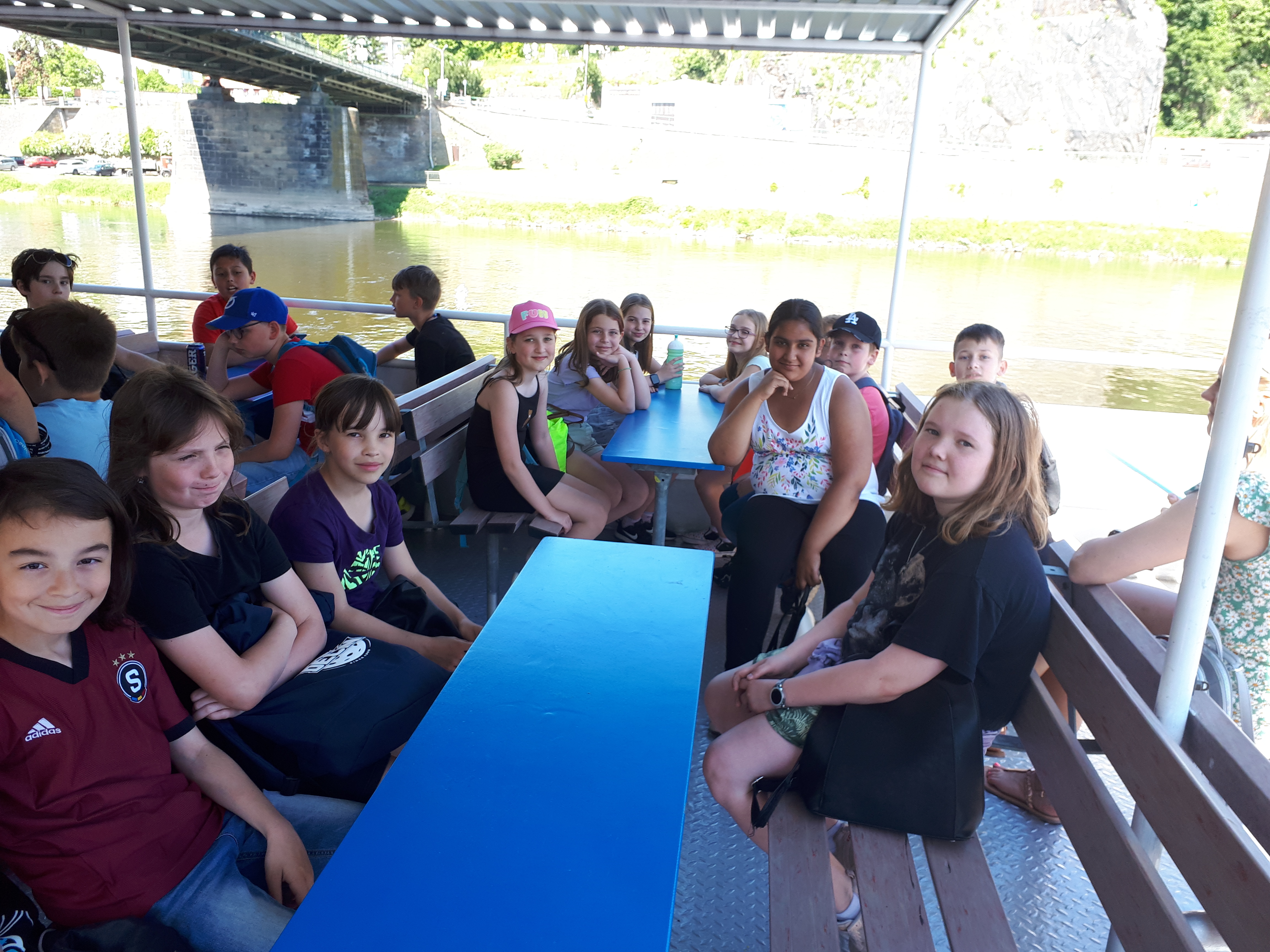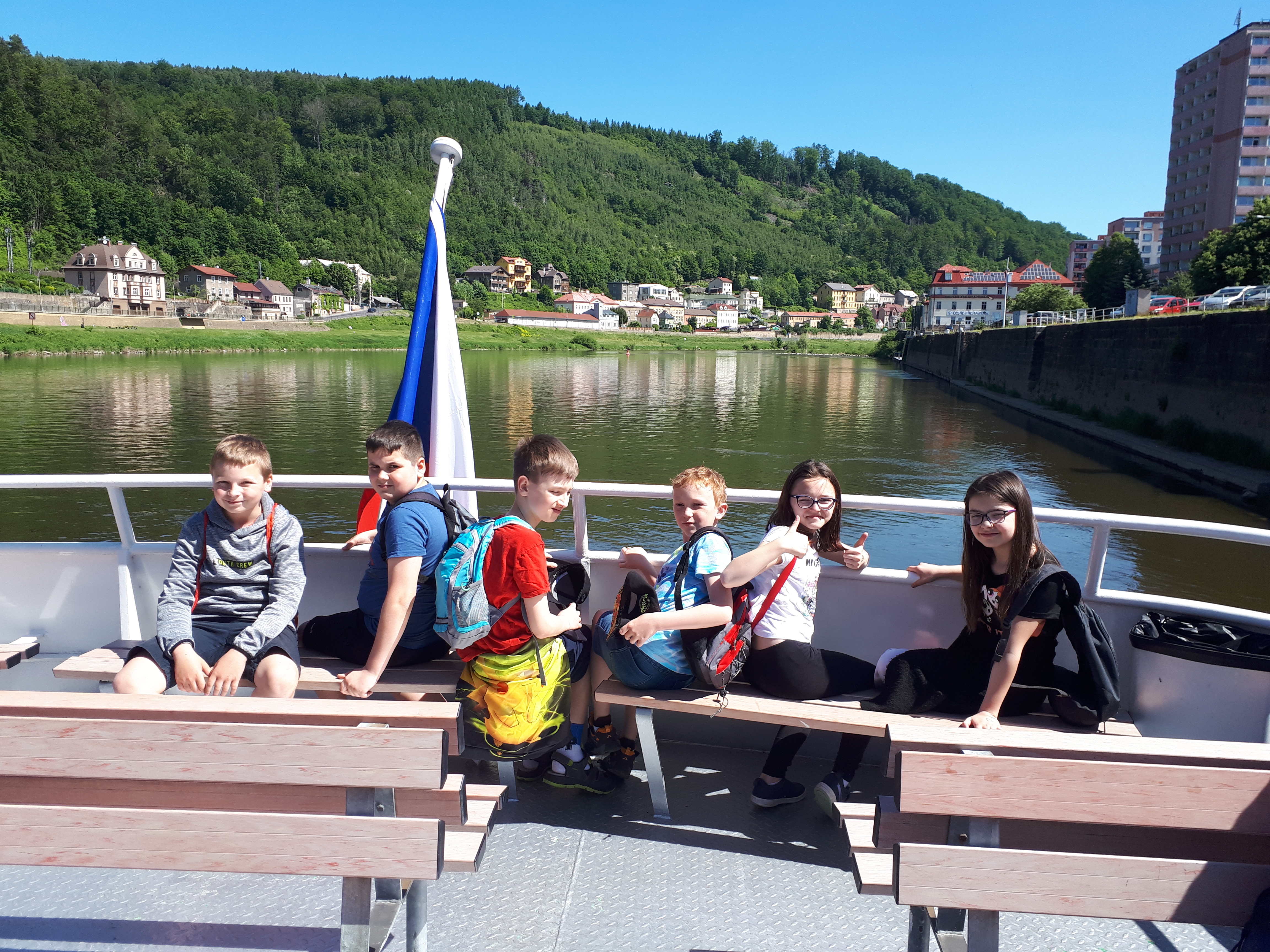 Labská plavební společnost Děčín si pro školy v Děčíně, v rámci DĚTSKÉHO DNE, připravila program "Exkurze na parníku Labe a projížďku lodí Bohemia". Akce se zúčastnilo několik tříd z naší školy, mimo jiné i třída 4.A. Děti si prohlédly parník Labe, zasoutěžili si a téměř hodinu trvala projížďka na parníku Bohemia. Myslím, a mohu říci za všechny, že se tato akce pro děti velmi povedla. Závěrem celého dětského dopoledne byla návštěva "Občerstvení u Franze Josefa", kterou si děti užily na 1000% 😀