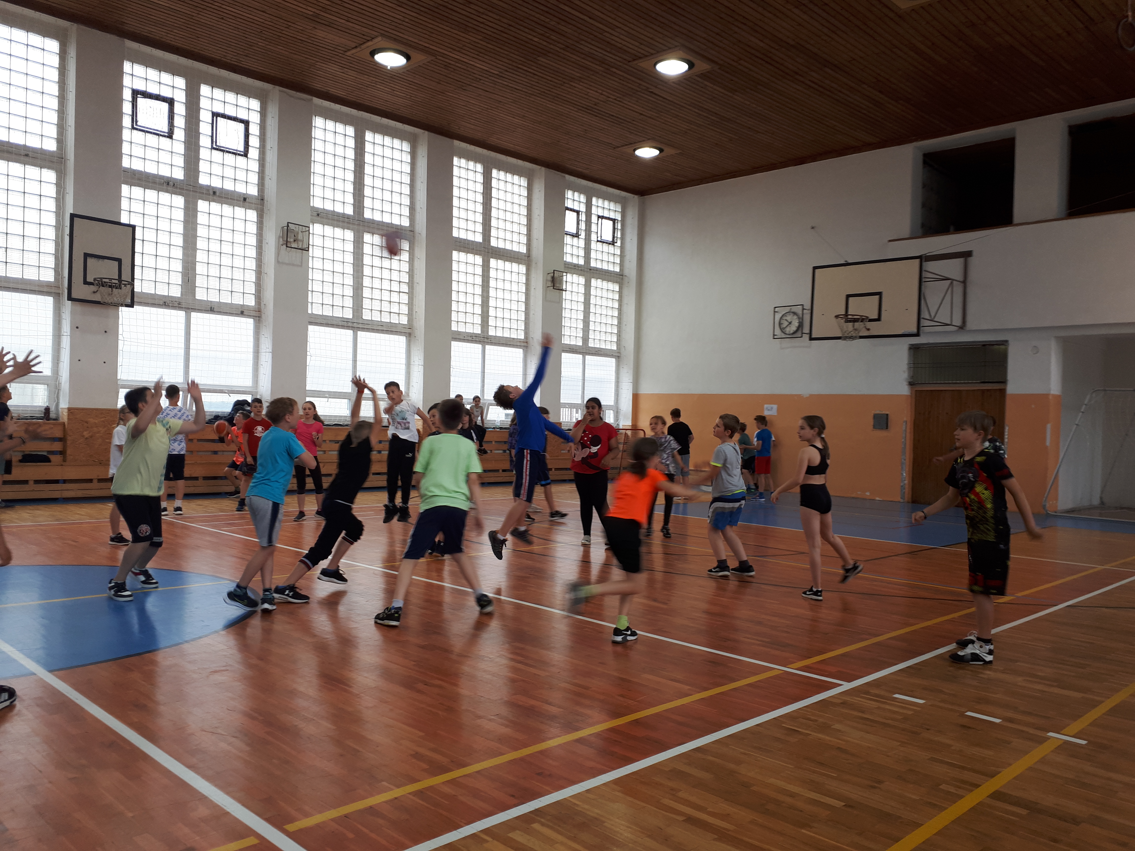 6.června se pro žáky a žákyně čtvrtých a pátých tříd uskutečnil "Sportovní den". Je pravda, že jediným těmto třídám bohužel nevyšlo počasí a protože pršelo, všechny disciplíny byly přesunuty do prostor naší školy. Program a disciplíny pro děti připravila p.uč.Kopejsková, které patří velký dík za organizaci a následné vyhodnocení a předání cen vítězným třídám a žákům. Děti své síly poměřily v těchto disciplínách - skok přes švihadlo, skok do dálky z místa, kolektivní soutěže - florbal, fotbal, hod na koš a přehazovaná. Soutěžily mezi sebou třídy 4.A, 4.B., 5.A, 5.B.
