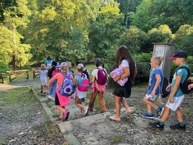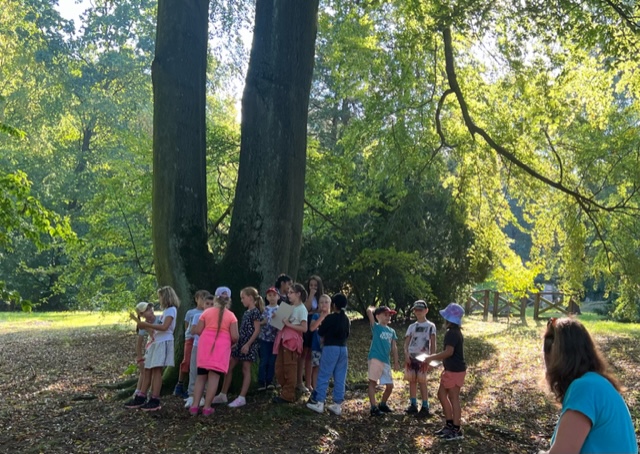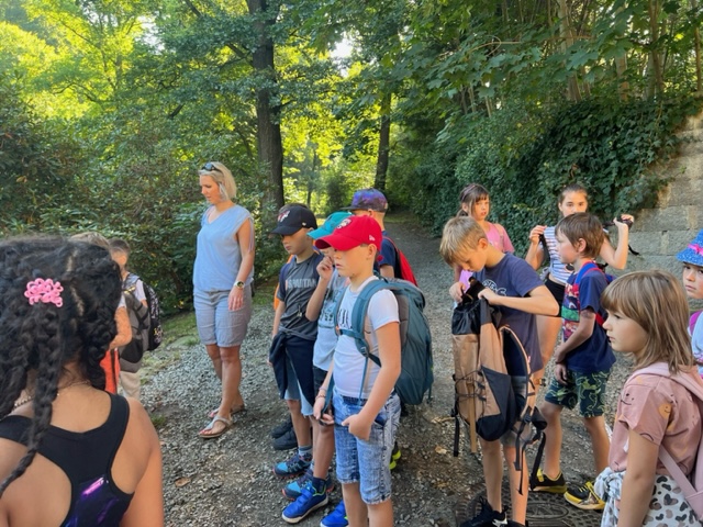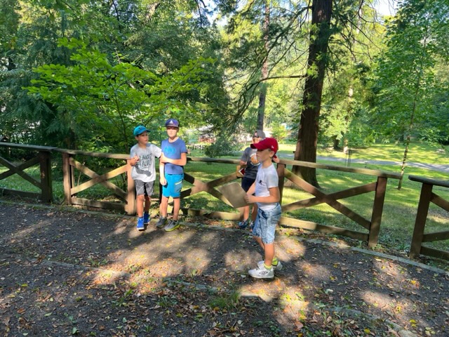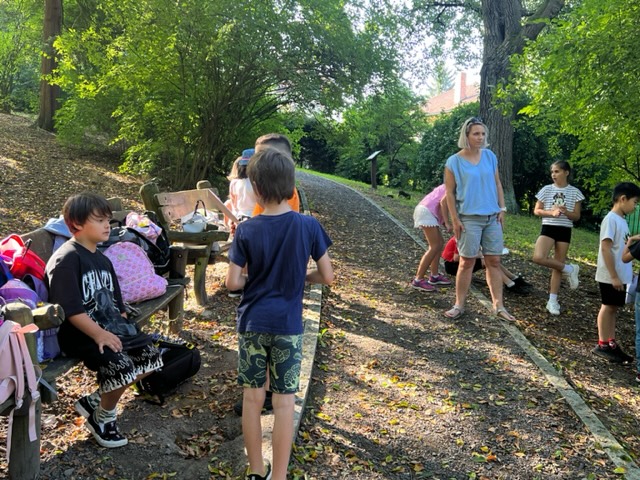 V parku se děti rozdělily do skupin a vyzkoušely si svou samostatnost při procházení určené trasy. Při této cestě měly za úkol seznámit se s informacemi o stromech uvedenými na informačních tabulkách, prohlédnout si, jak skutečně vypadají a zaznamenat si jejich názvy. Zajímavým zpestřením  procházky byly také veverky a žáby, které děti viděly.