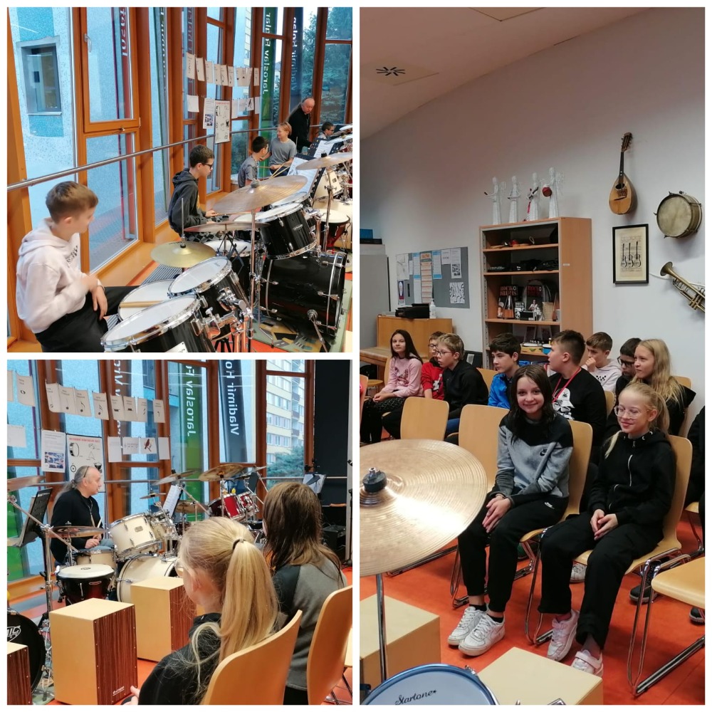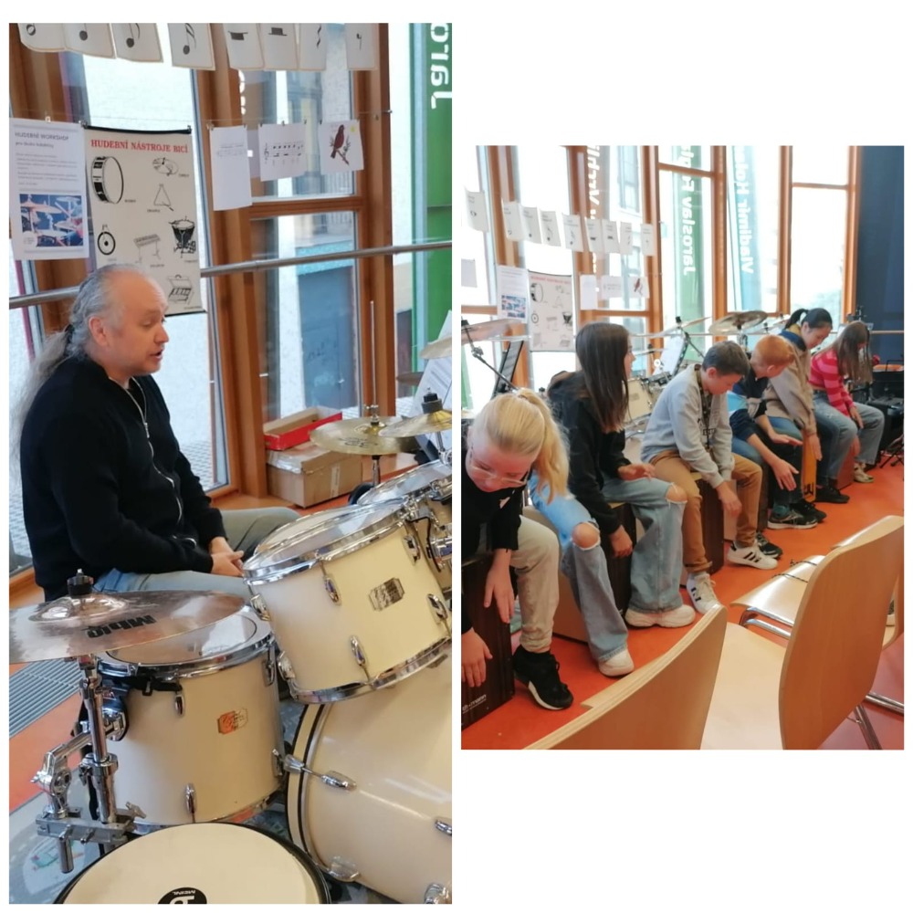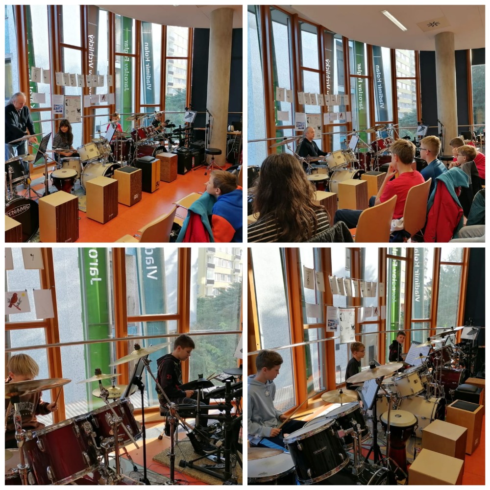V průběhu měsíce října se žáci 6. a 7. tříd zúčastnili hudebního workshopu bicích nástrojů, který se konal v Městské knihovně v Děčíně pod vedením lektora Karla Suchánka.