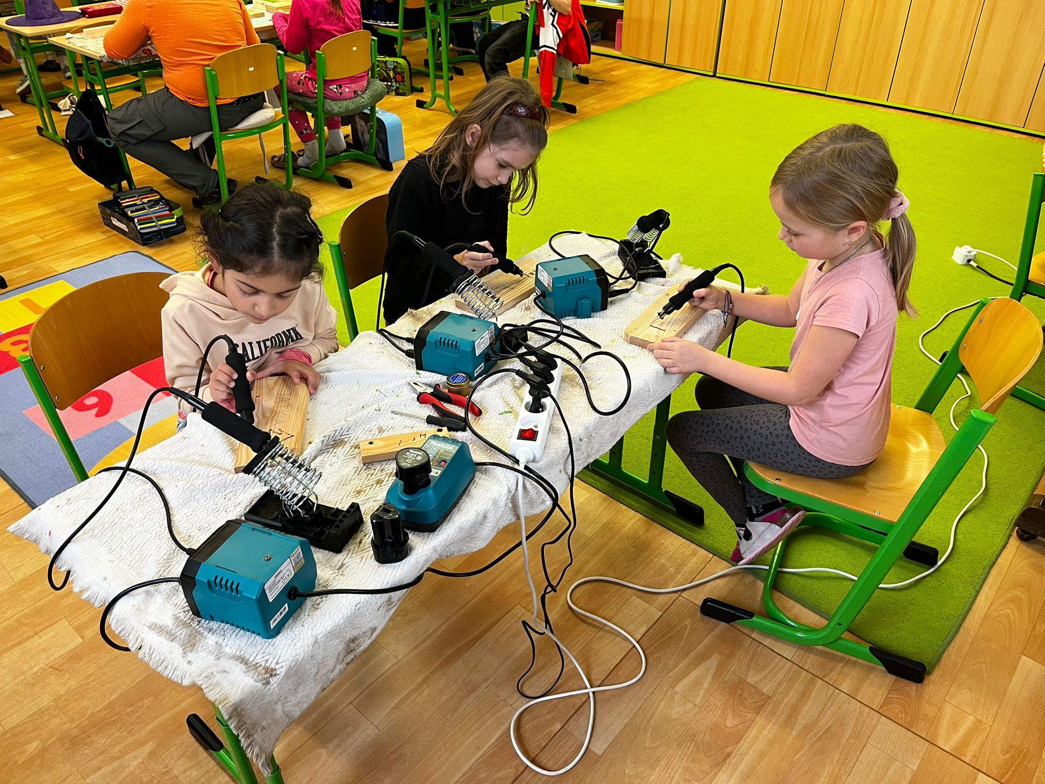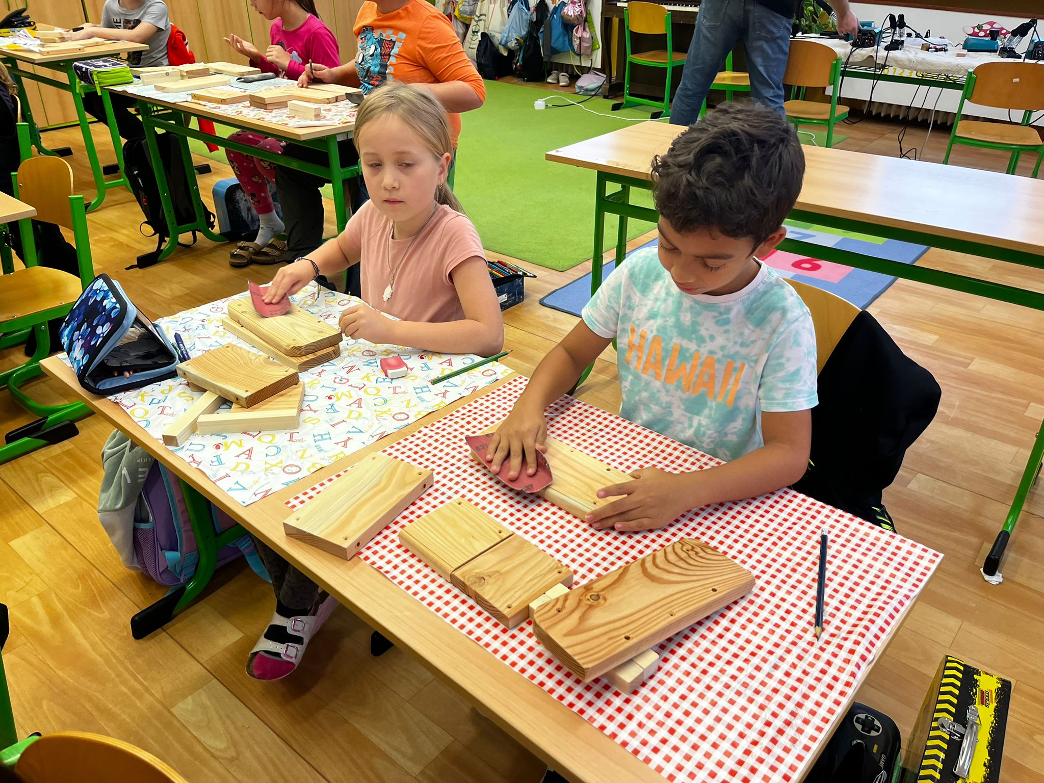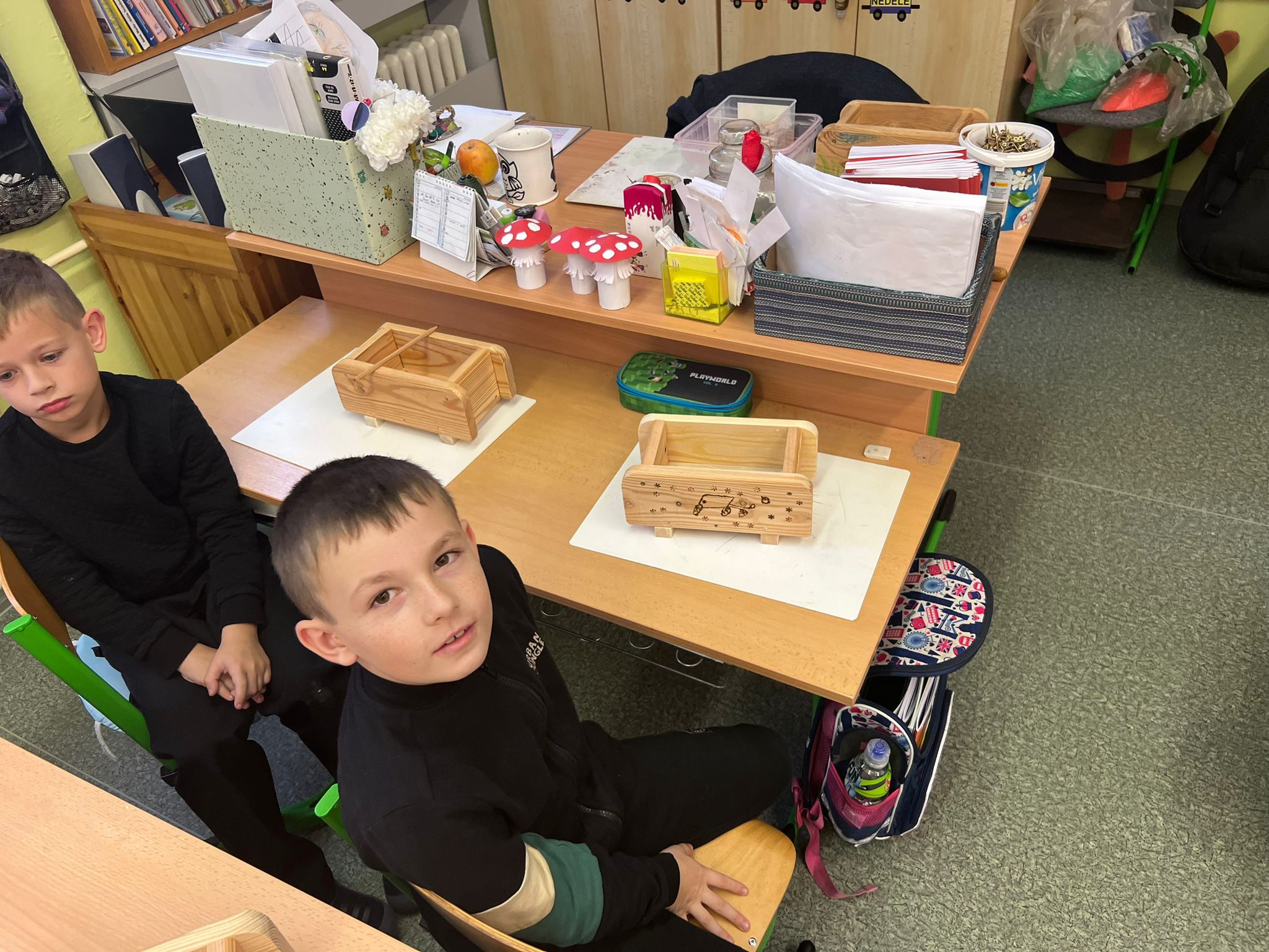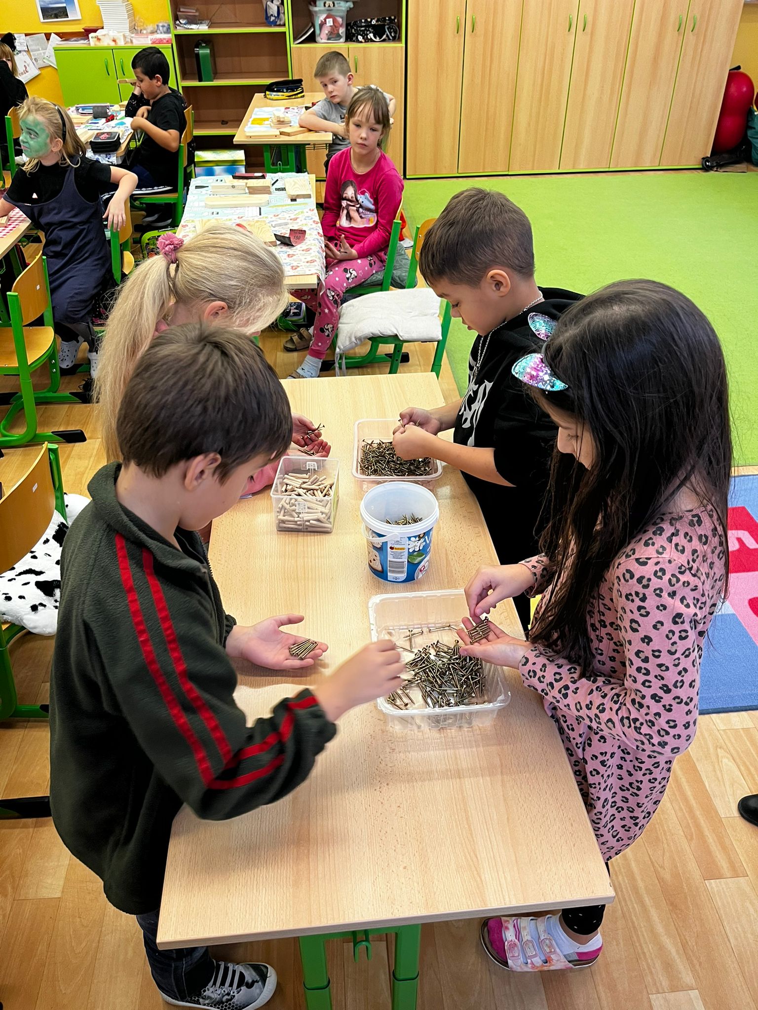 V pátek 3. 11. 2023 si děti ze tříd 2. A a 2. B zahrály pod vedením pana truhláře na malé truhláře a truhlářky.