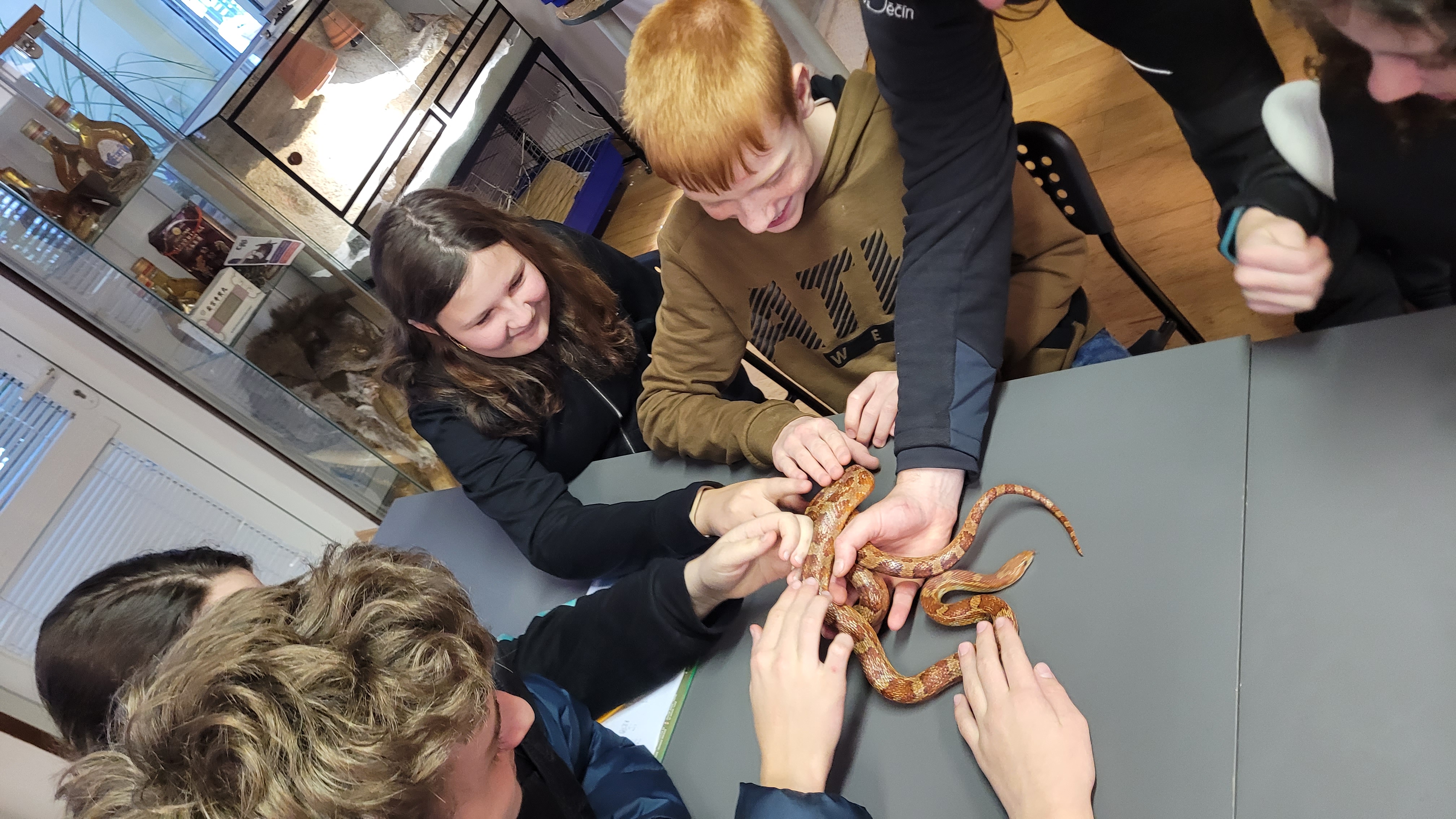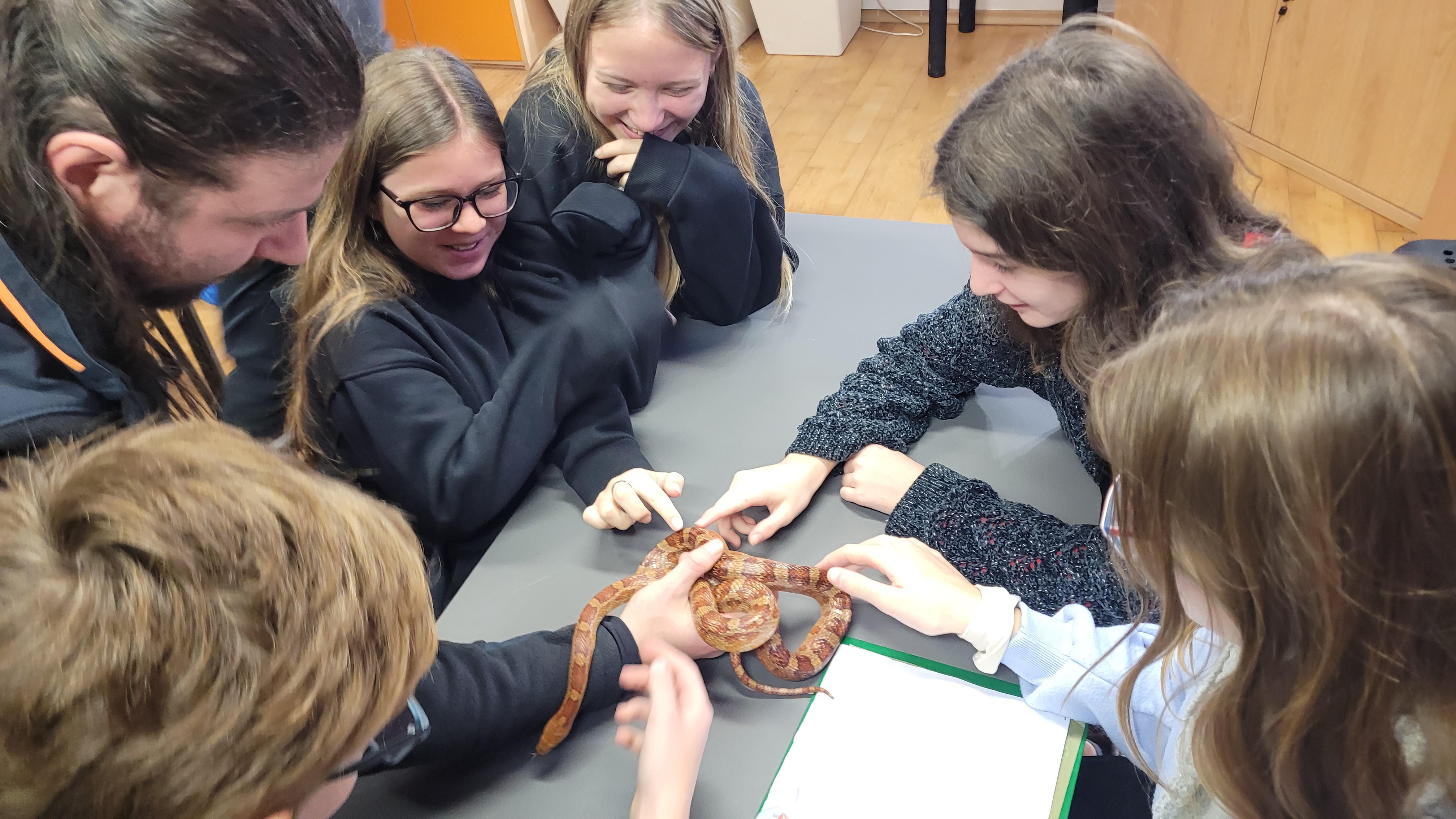 Na závěr programu byla jako zpestření dětem nabídnuta možnost seznámit se s užovkou červenou.