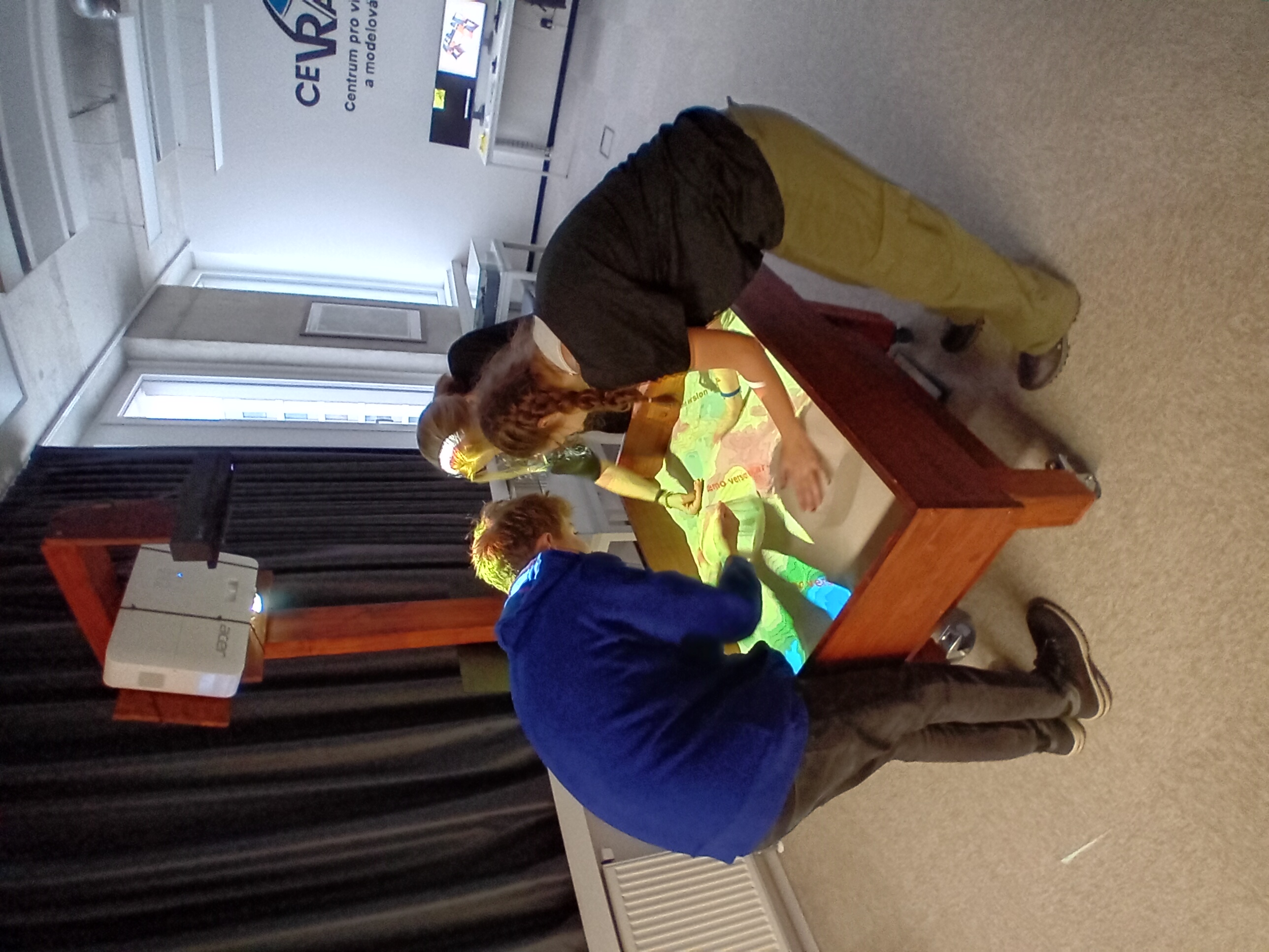 V centru virtuální reality si žáci prohlédli a vyzkoušeli několik moderních a velmi zajímavých stanovišť. Práci s termokamerou, hlukoměrem a nejrůznějšími mapovými aplikacemi. Seznámili se s 3D tiskem. Největšími favority se zcela jistě stalo cestování po světě prostřednictvím virtuální reality a Sandbox aneb "pískoviště", kde si každý mohl vymodelovat vlastní krajinu včetně vrstevnic.