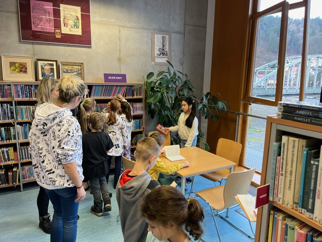 Paní knihovnice si připravila zajímavé povídání o historii knihovny a o českých pohádkách se zaměřením na tvorbu Boženy Němcové a Karla Jaromíra Erbena. Děti se dozvěděly zajímavosti o těchto spisovatelích, a hlavně o pohádkách, které napsali. Mezi regály si prolistovaly knihy, které je zaujaly a pokud mají registraci, mohou si je i zapůjčit.