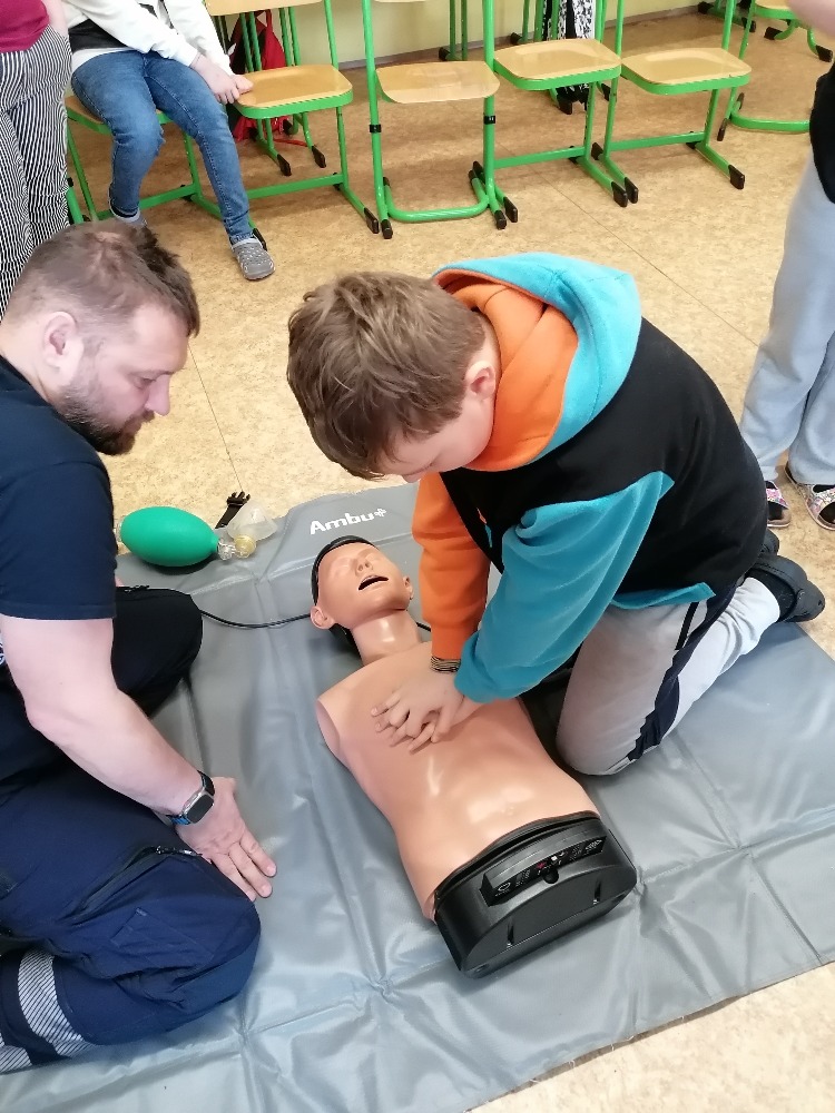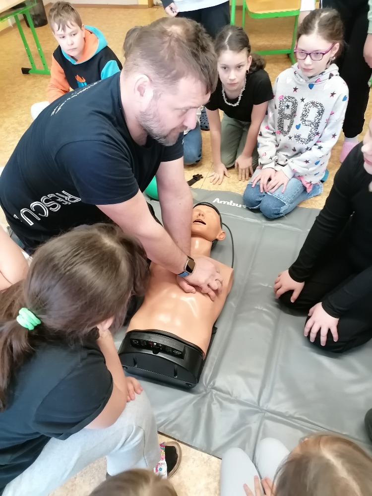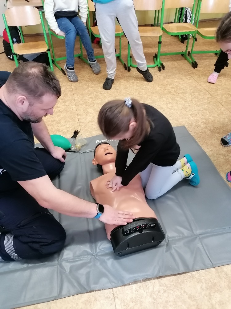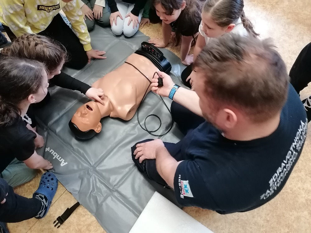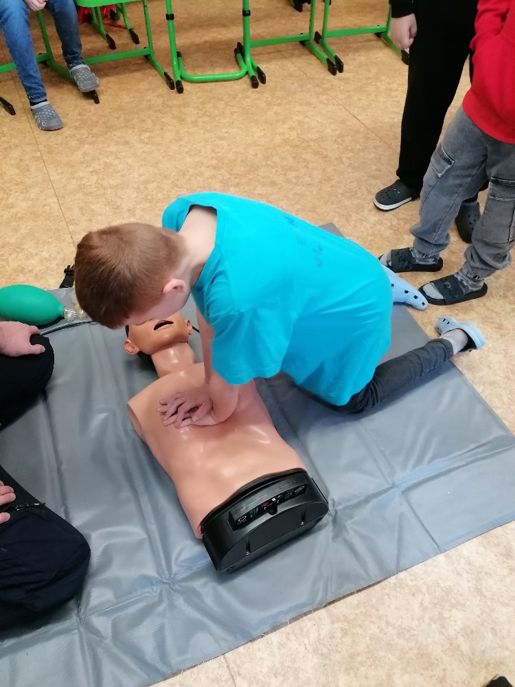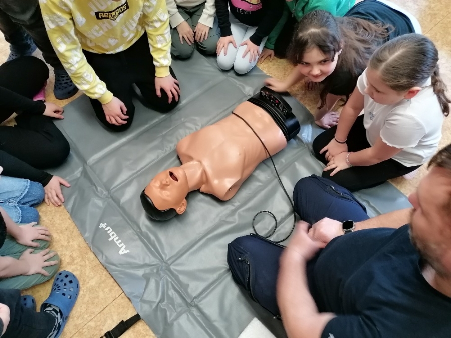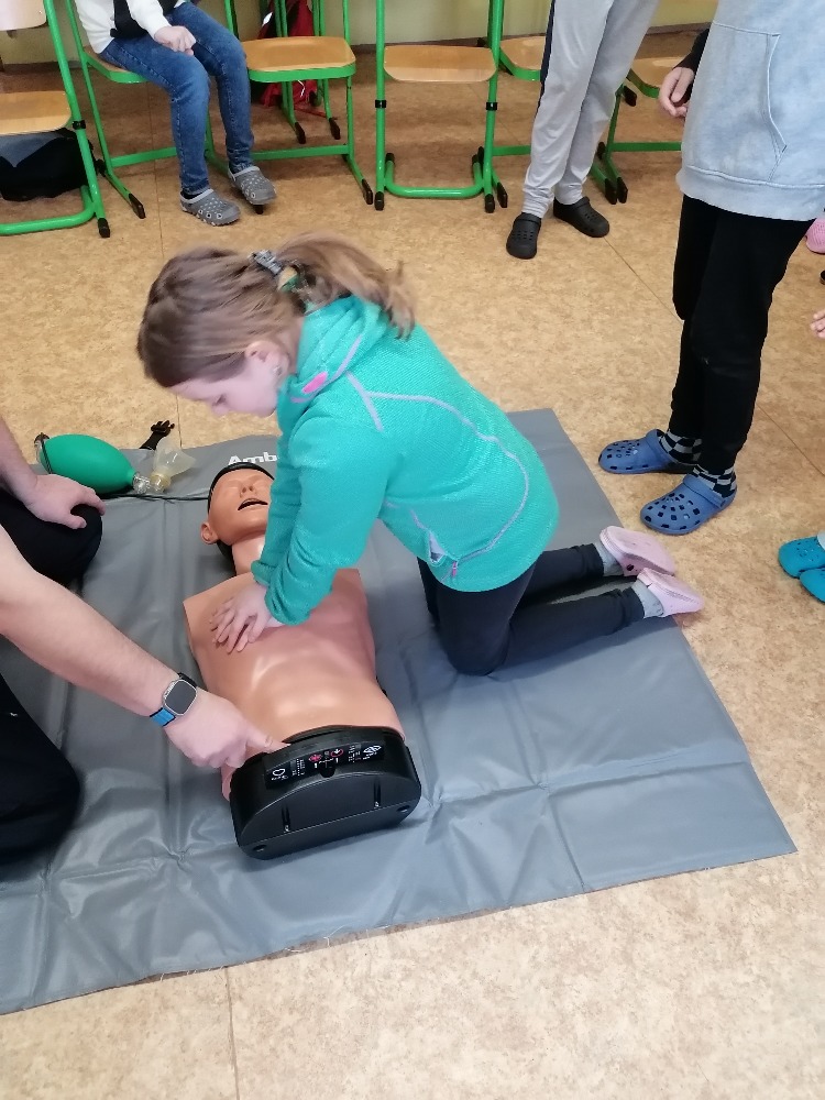 Všechny děti si mohly vyzkoušet umělé dýchaní a masáž srdce, obvázat spolužákovi zlomenou ruku a jak správně použít škrtidlo. Dále se žáci dozvěděli důležité informace k transportu zraněného a jak správně postupovat při volání záchranné služby. Při této příležitosti si žáci zopakovali všechna důležitá telefonní čísla.