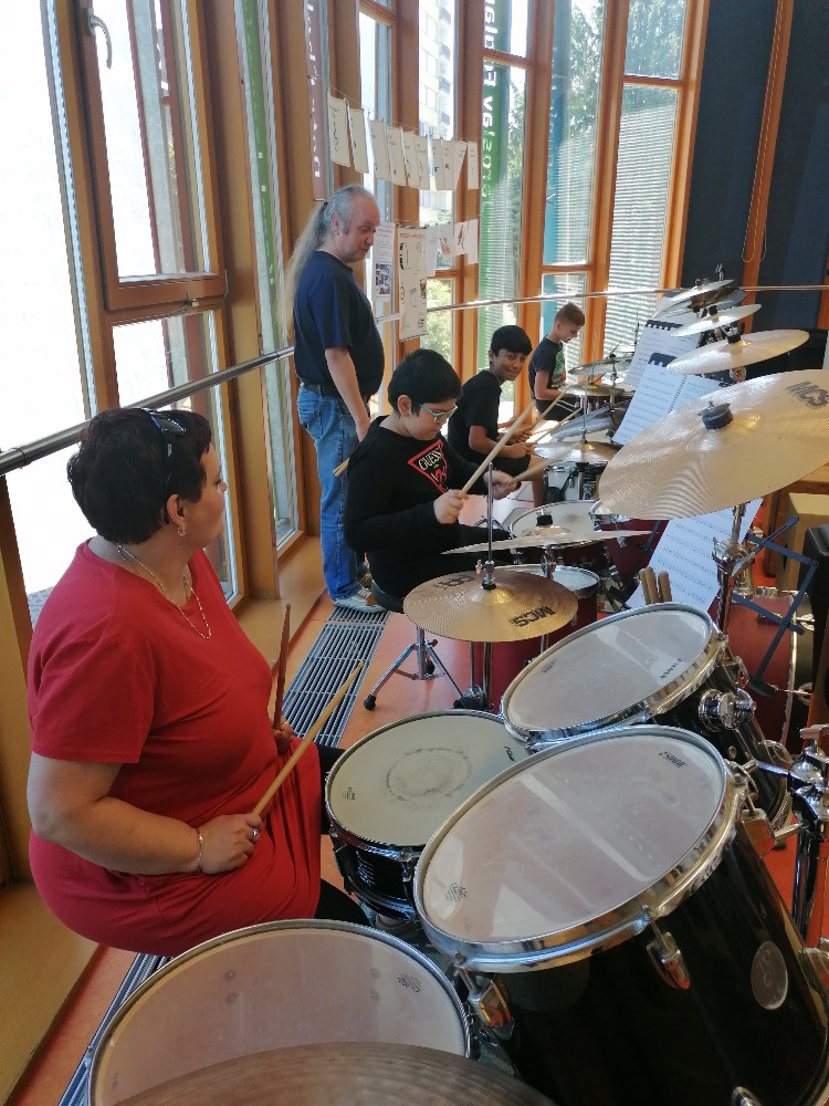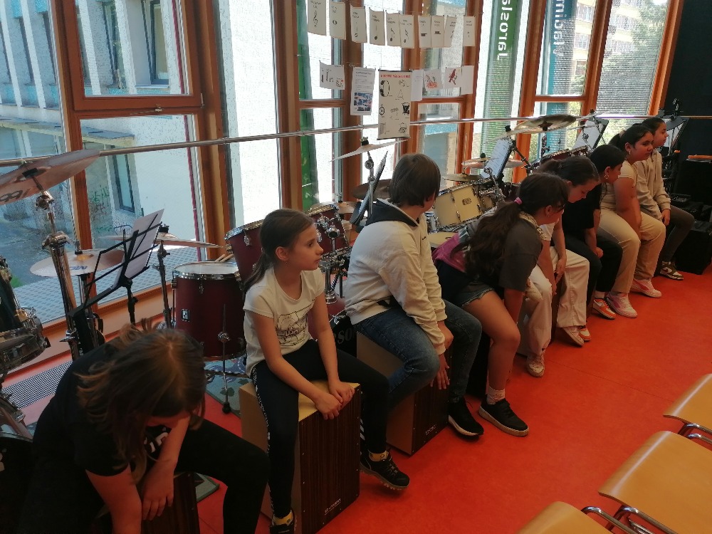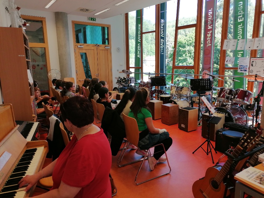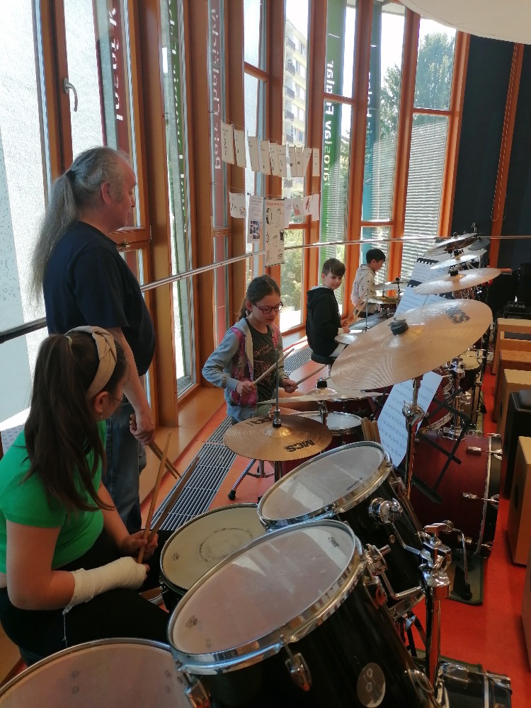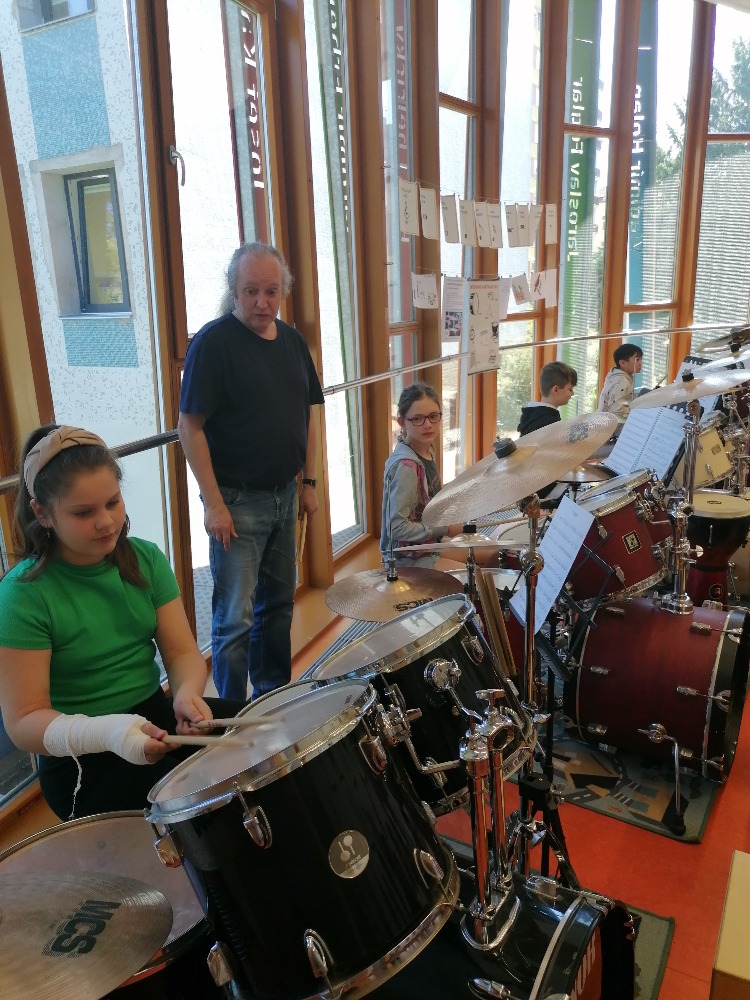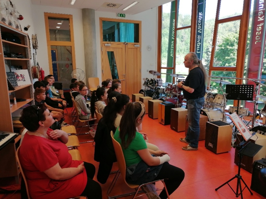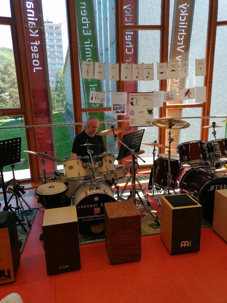 Nejdříve si děti zopakovaly hudební teorii, poté se seznámily se zajímavými informacemi ohledně bicích souprav akustických i elektrických, cajonů a dalších perkusí. Za doprovodu těchto nástrojů si také žáci zazpívali jednoduché dětské písně např. Skákal pes a Pec nám spadla.