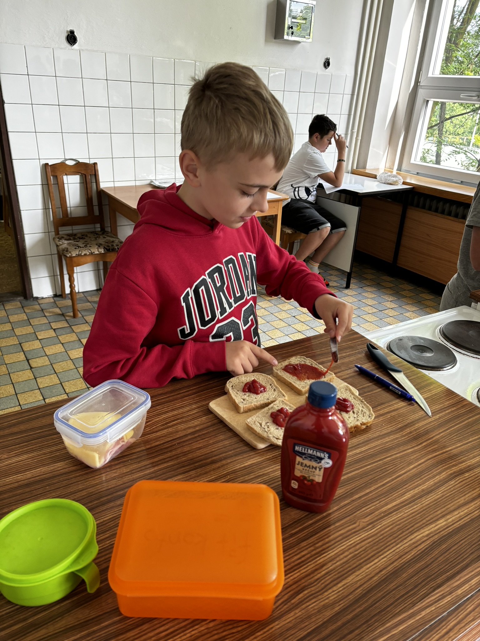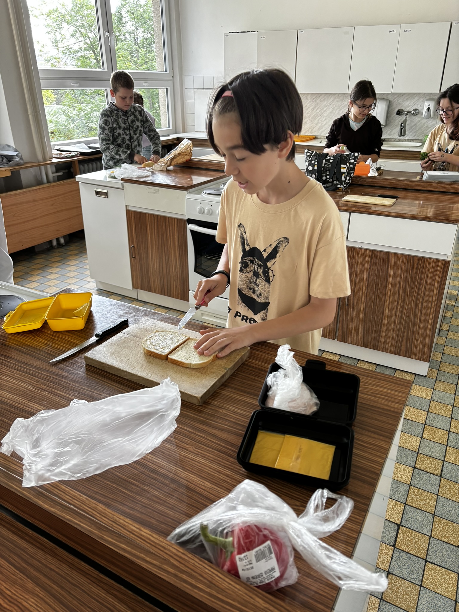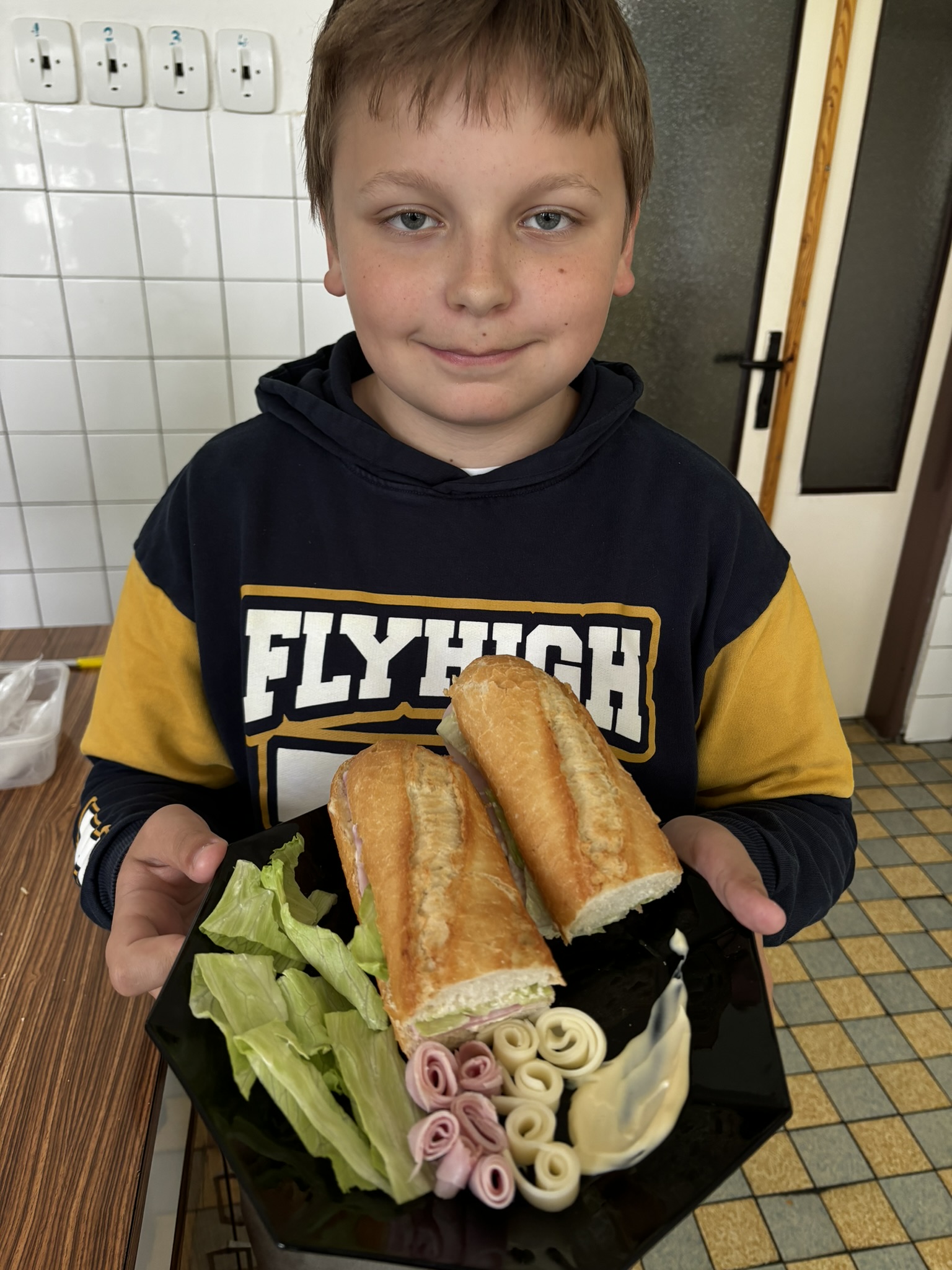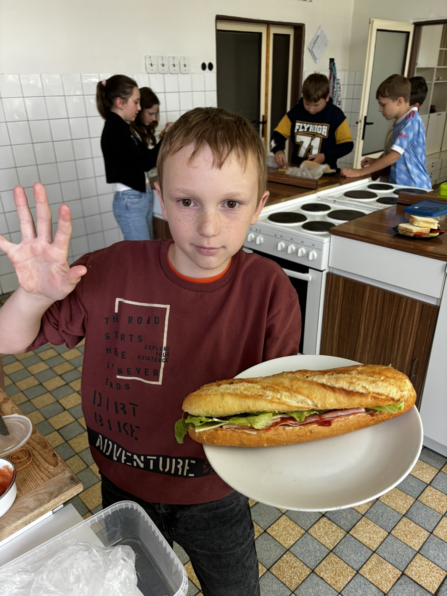 Aby mohli sestavit recept na jednoduchý studený pokrm, museli nejdříve takový pokrm vymyslet a následně vytvořit. A co bylo úkolem? Z oblíbených surovin,které si každý přinesl dle své chuti a nápadu, si připravil obloženou bagetu či croissant, studený sendvič nebo obložené rýžové chlebíčky. Věřte nebo ne, všechny pochoutky vypadaly víc než lákavě....😀 a děti si na své svačince také pochutnaly!