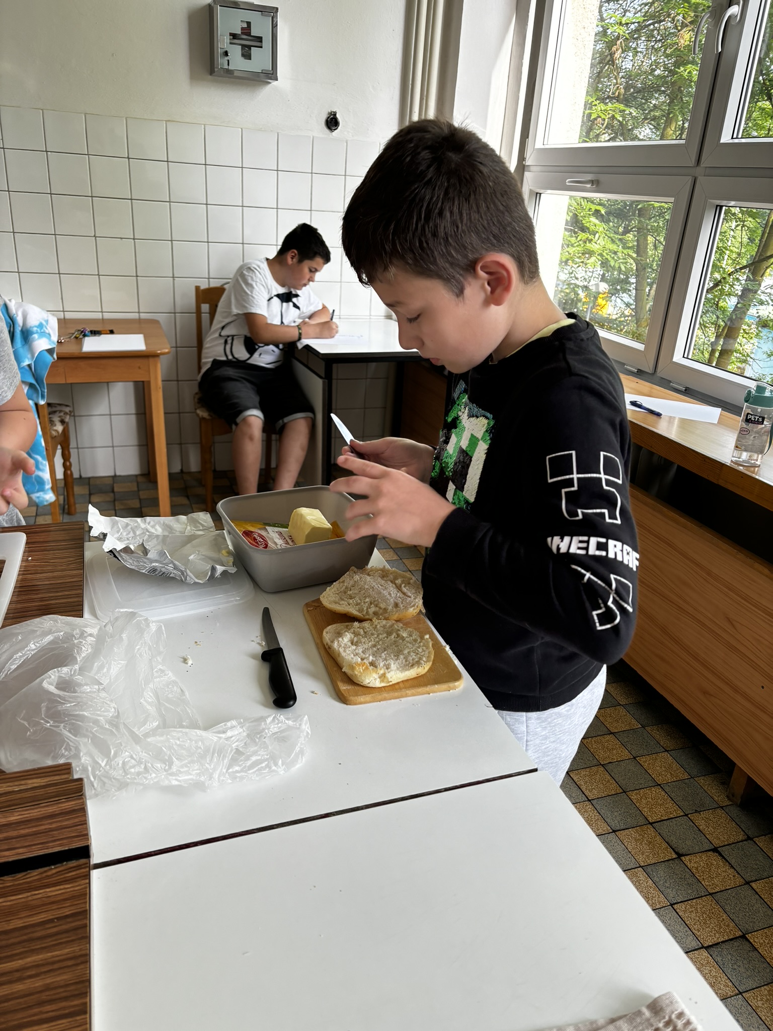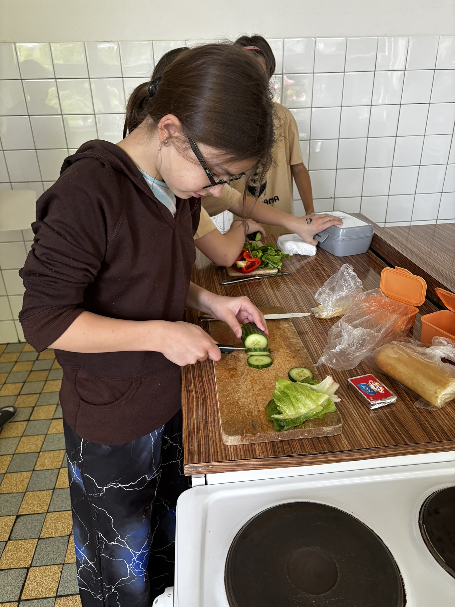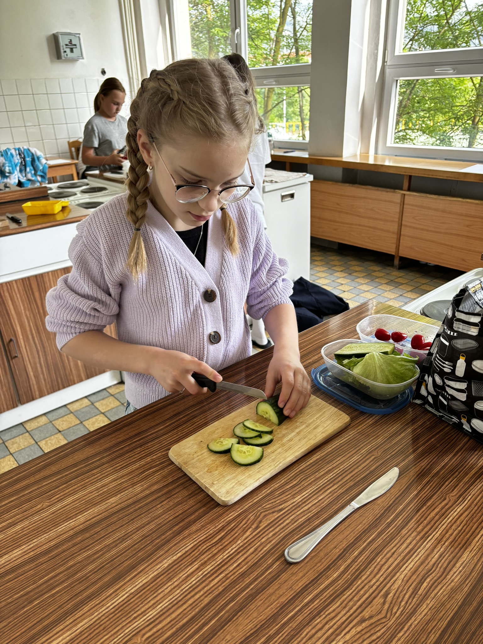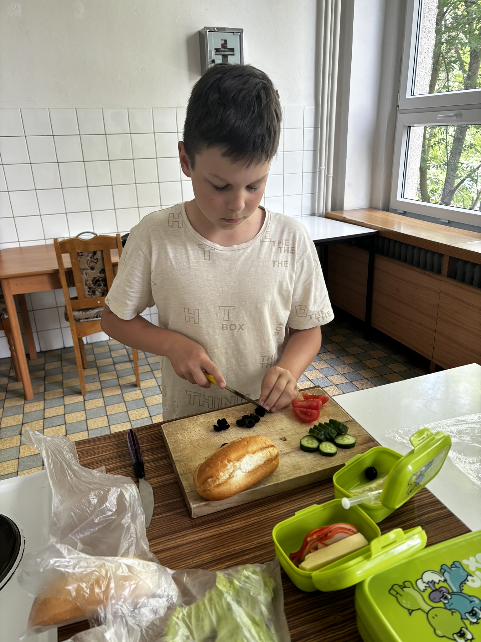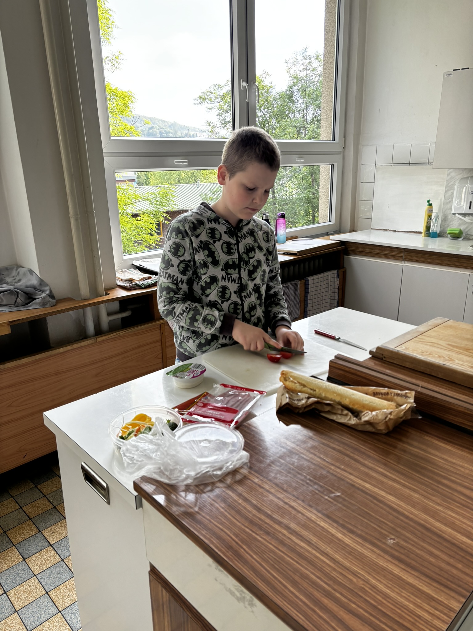 Aby mohli sestavit recept na jednoduchý studený pokrm, museli nejdříve takový pokrm vymyslet a následně vytvořit. A co bylo úkolem? Z oblíbených surovin,které si každý přinesl dle své chuti a nápadu, si připravil obloženou bagetu či croissant, studený sendvič nebo obložené rýžové chlebíčky. Věřte nebo ne, všechny pochoutky vypadaly víc než lákavě....😀 a děti si na své svačince také pochutnaly!