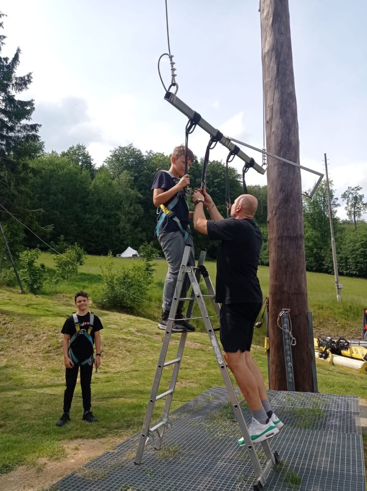 Po příjezdu jsme se ubytovali a hned odpoledne jsme zamířili do adrenalin parku, kde nás čekala obří houpačka a krok do prázdna. Někteří z nás potřebovali pořádnou dávku odvahy, ale všichni to zvládli na jedničku!