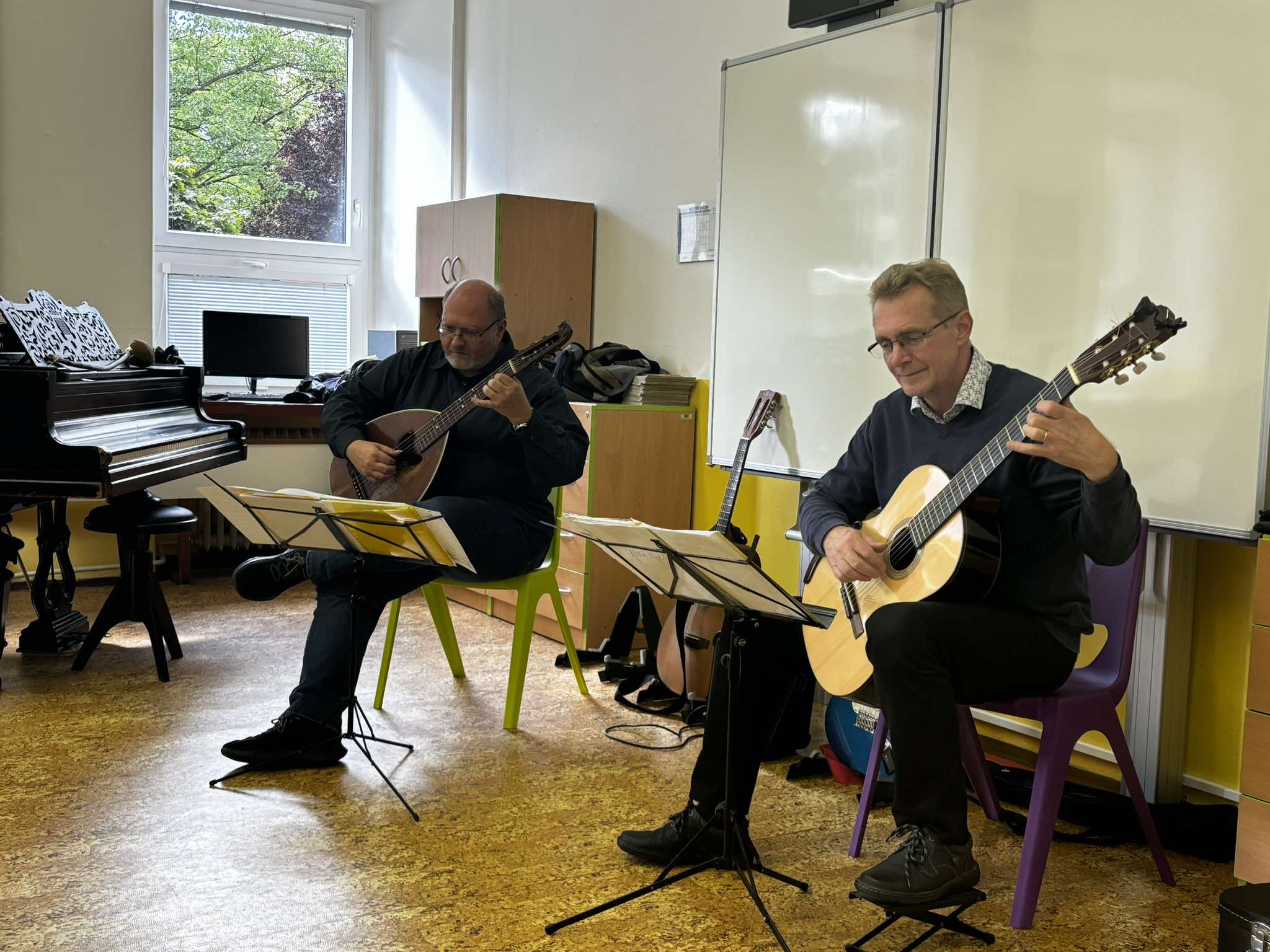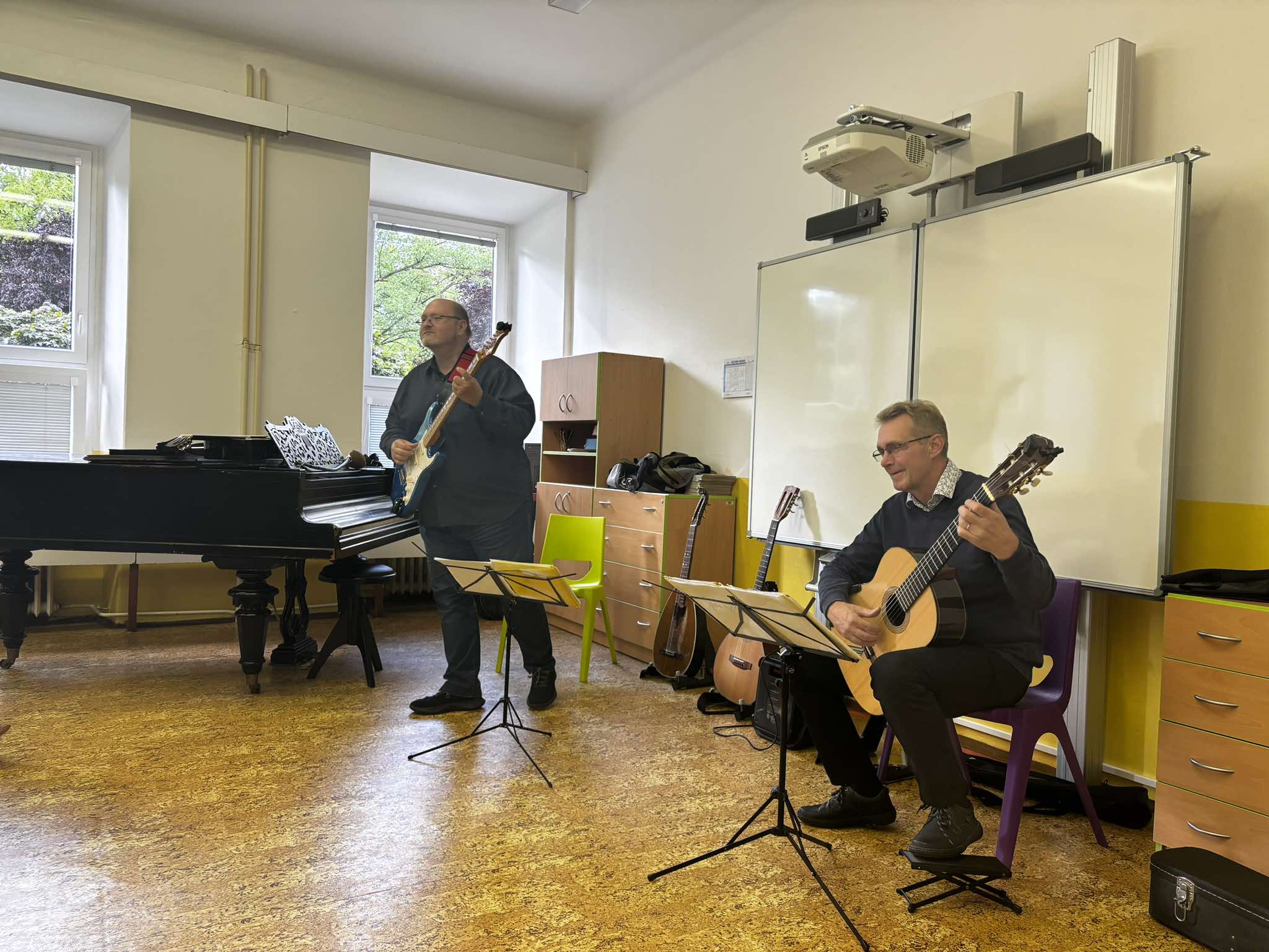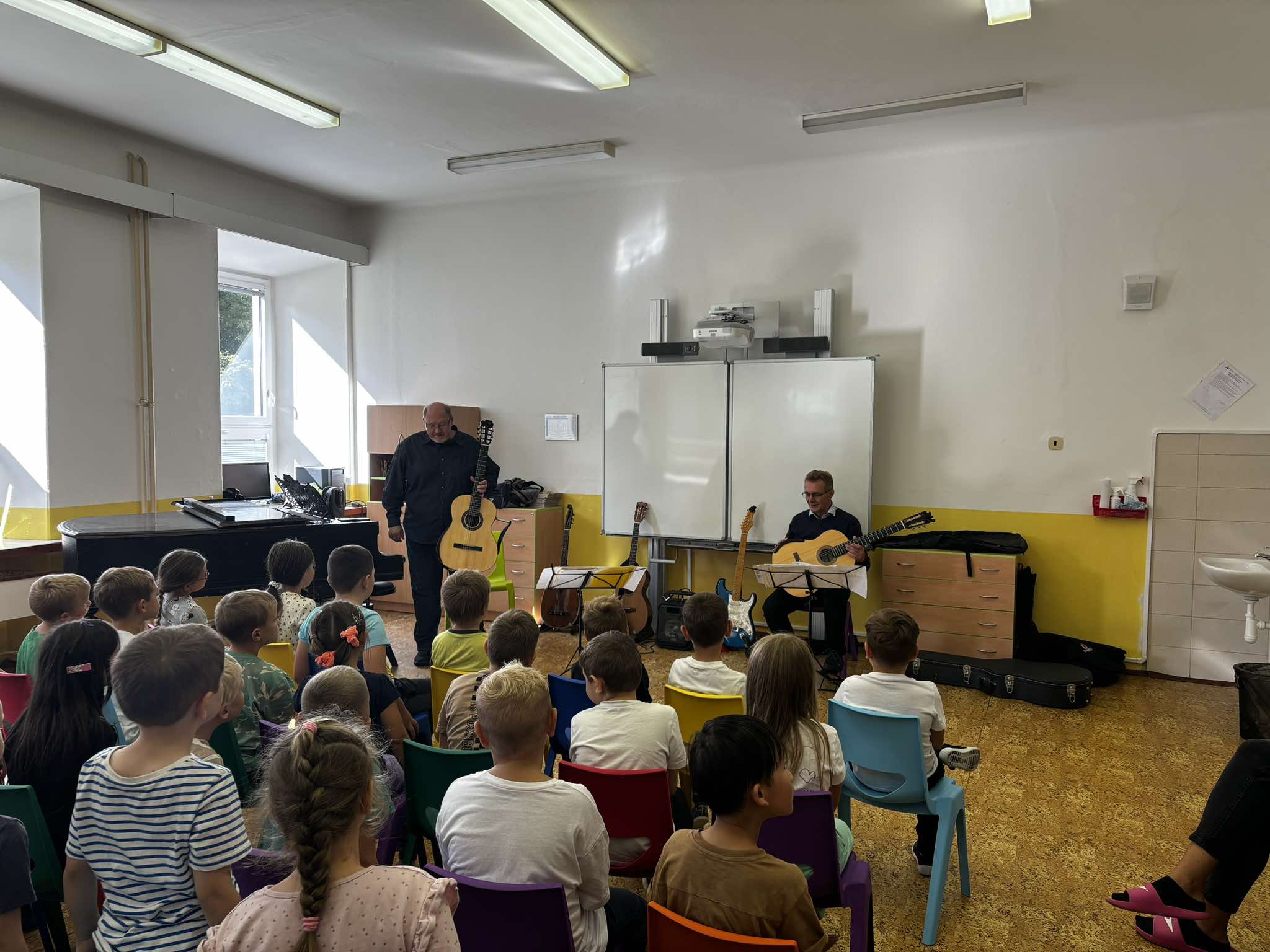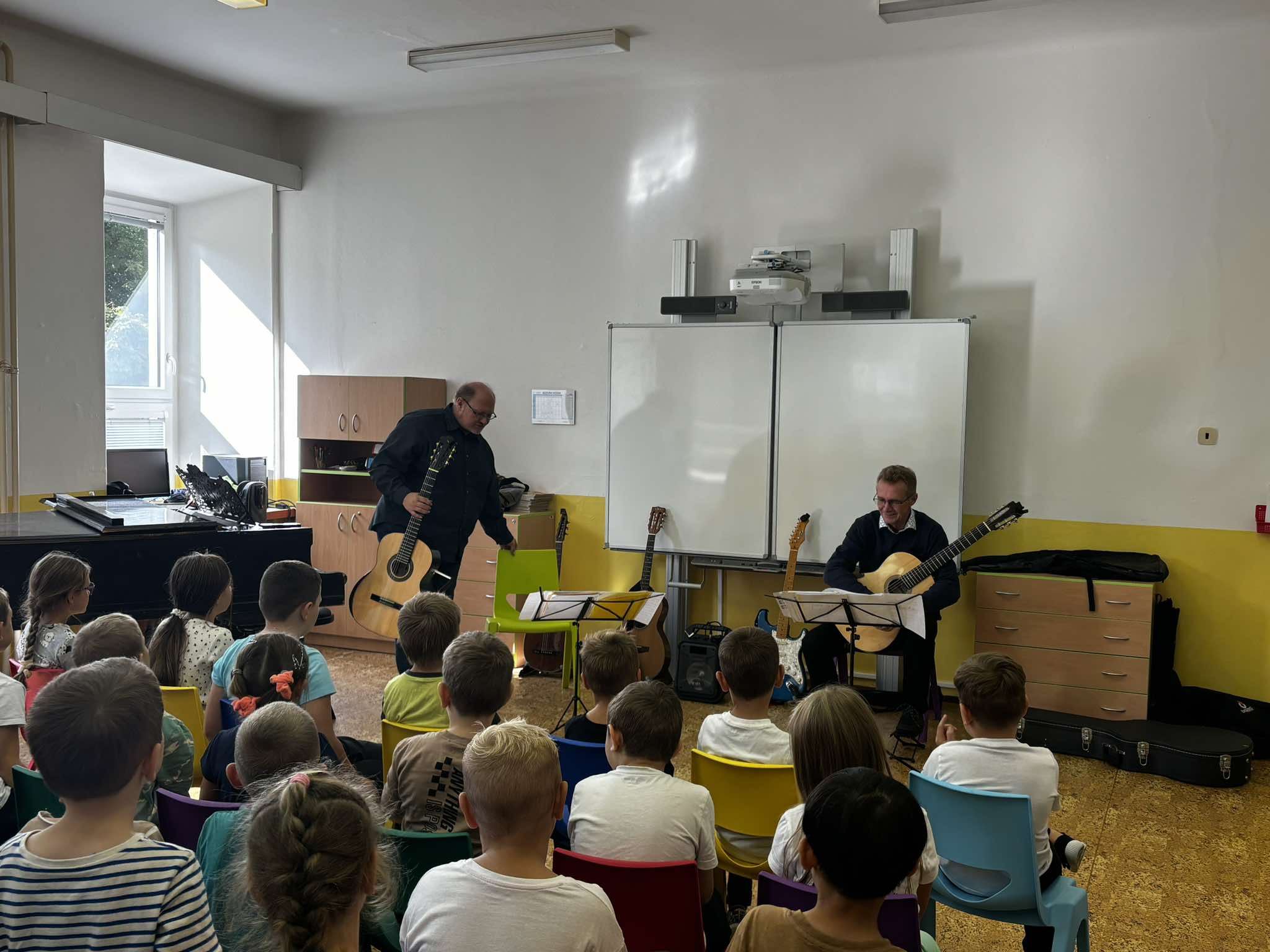 Opět po roce navštívili naši školu páni Jindřich Kaulfers a Ivan Šoltys, kteří působí jako učitelé kytary na ZUŠ v České Kamenici a Děčíně. Pro děti měli tentokrát připravený velmi zajímavý program o původu a vývoji kytary od pravěku až po současnost.
