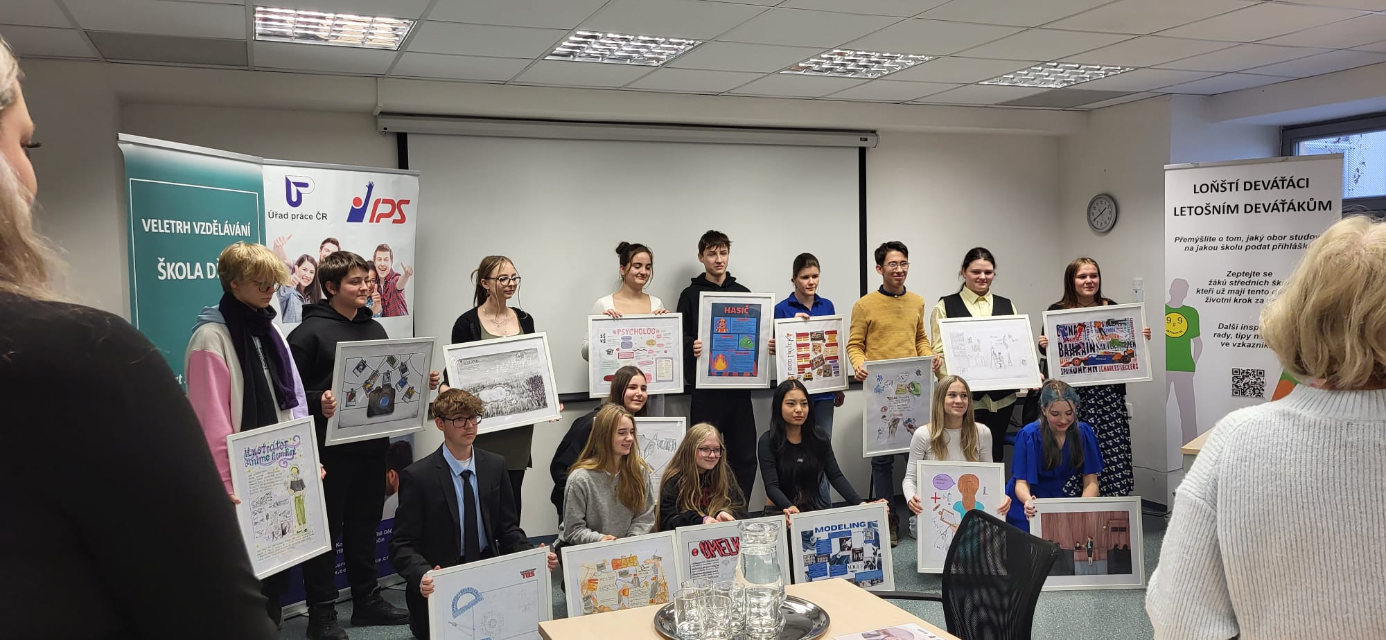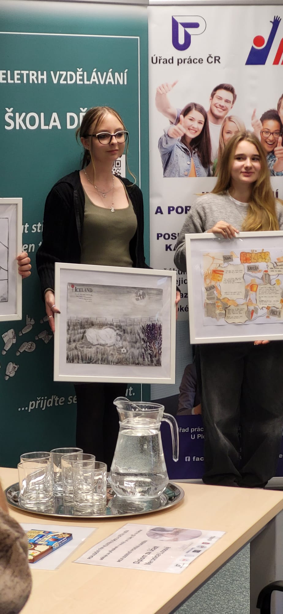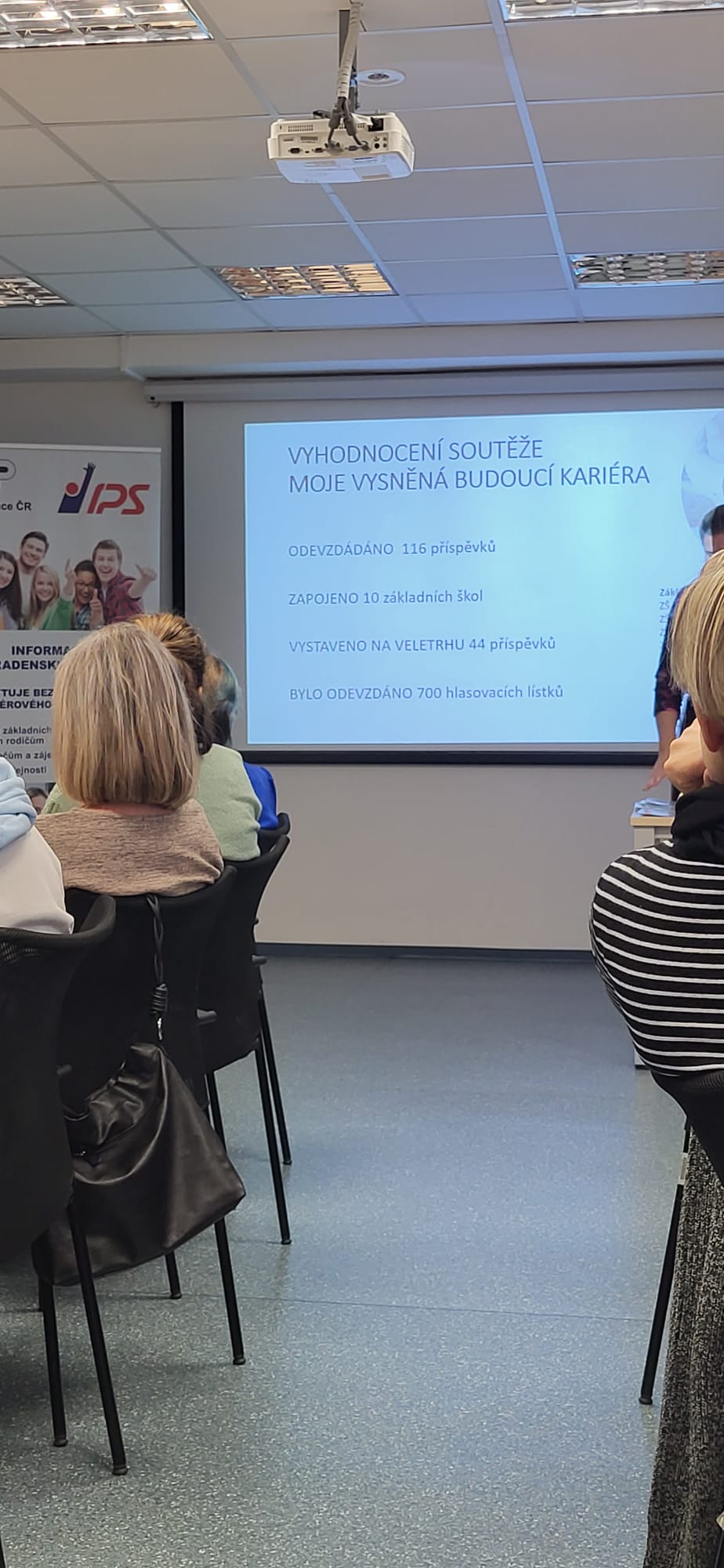 Dne 27.11.2024 proběhlo na děčínském Úřadu práce předávání cen v soutěž Moje vysněné budoucí povolání. Soutěž spočívala v tom, aby žáci jakýmkoliv způsobem ztvárnili, co by chtěli v budoucnu dělat. Za naši školu jsem vybrala sedm prací i a jedna z nich byla oceněna pátým místem. Moc gratuluji Terezce Kluzáčkové k jejímu a přeji, ať své vysněné kariéry dosáhne. Mgr. Martina Hanzaliusová