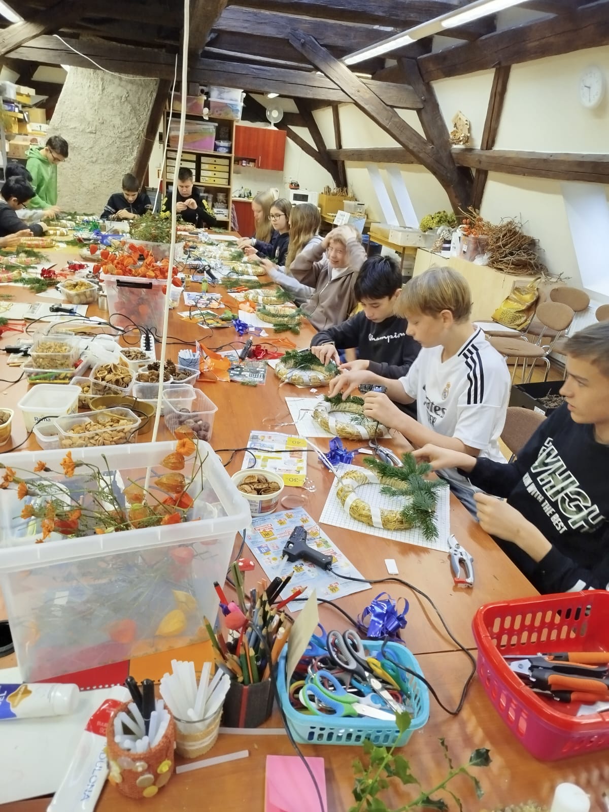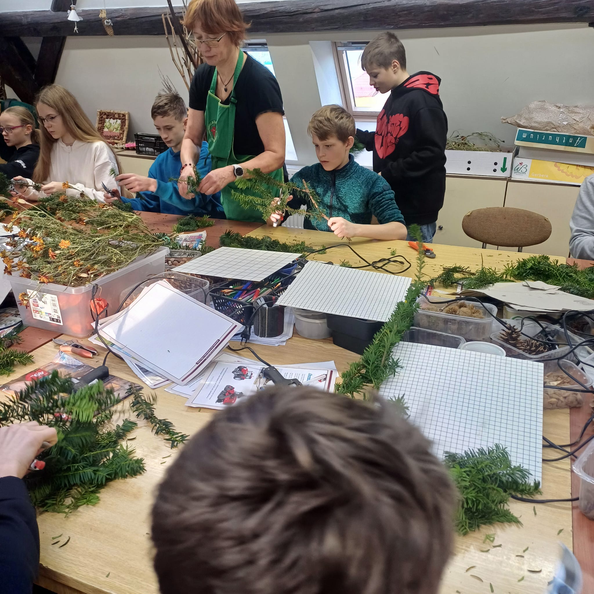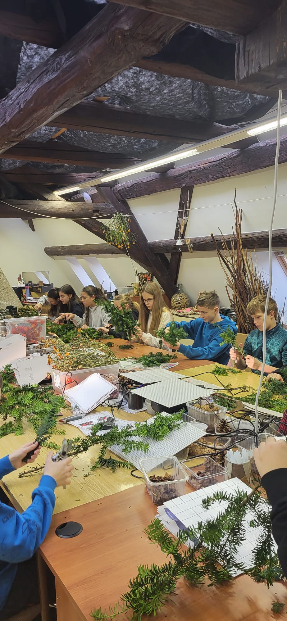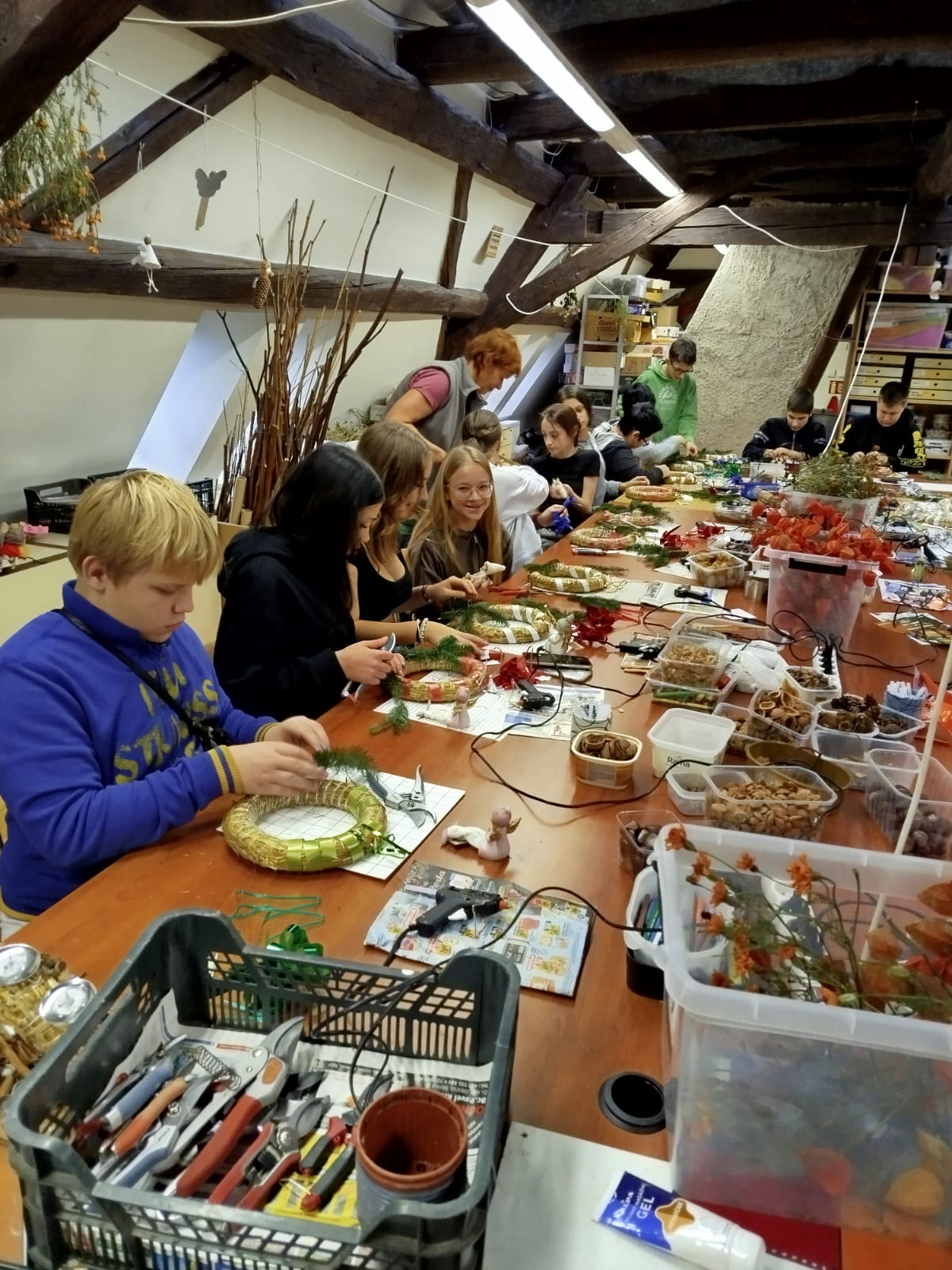 V minulých týdnech se třídy 7. A, 7. B, 8. A a 9. A zúčastnily vánočního tvoření na Libverdě. Celá akce proběhla pod dohledem zkušené floristky paní Jarešová, tudíž mají hotové věnce velmi vysokou úroveň. Žáci si tvoření užili a pokročili ve svých kreativních dovednostech. Mgr. Martina Hanzaliusová