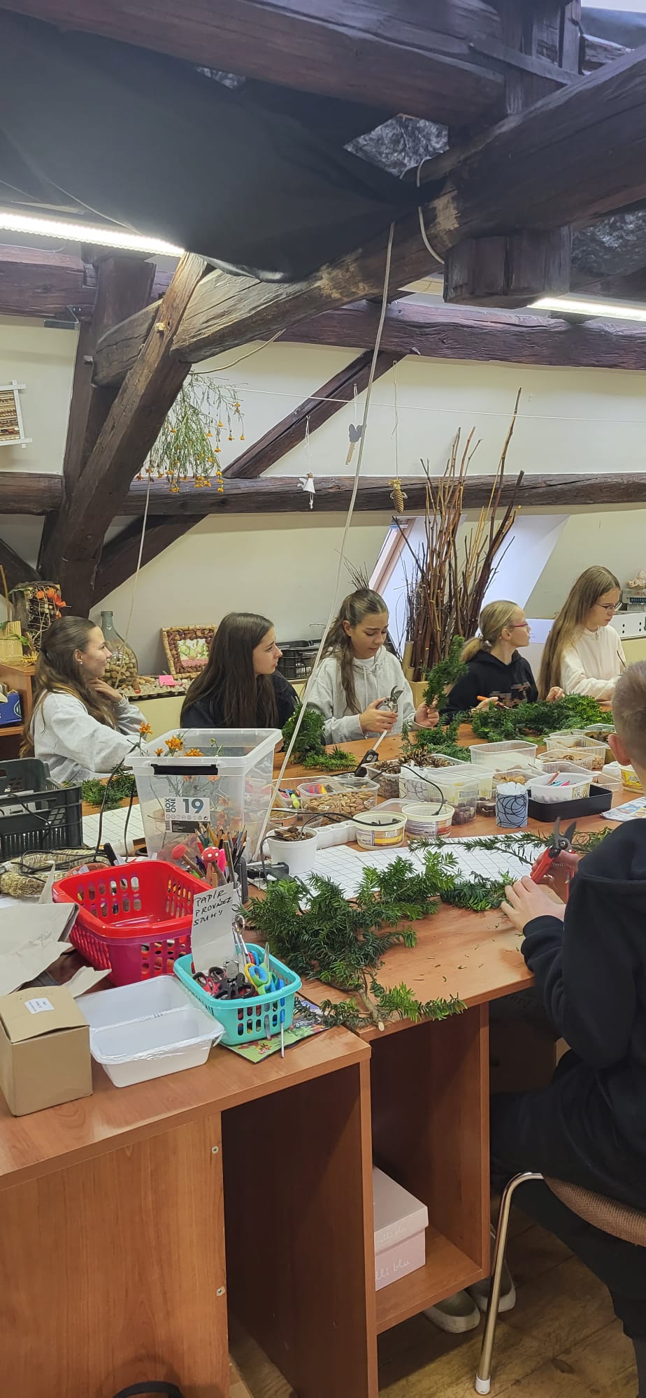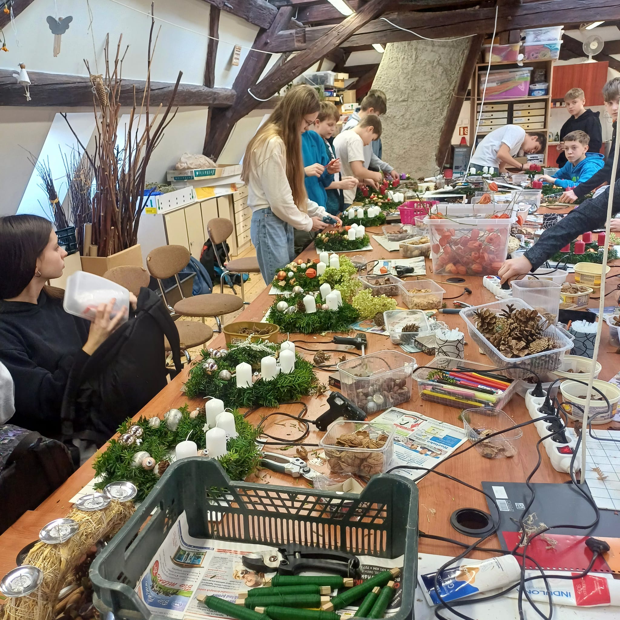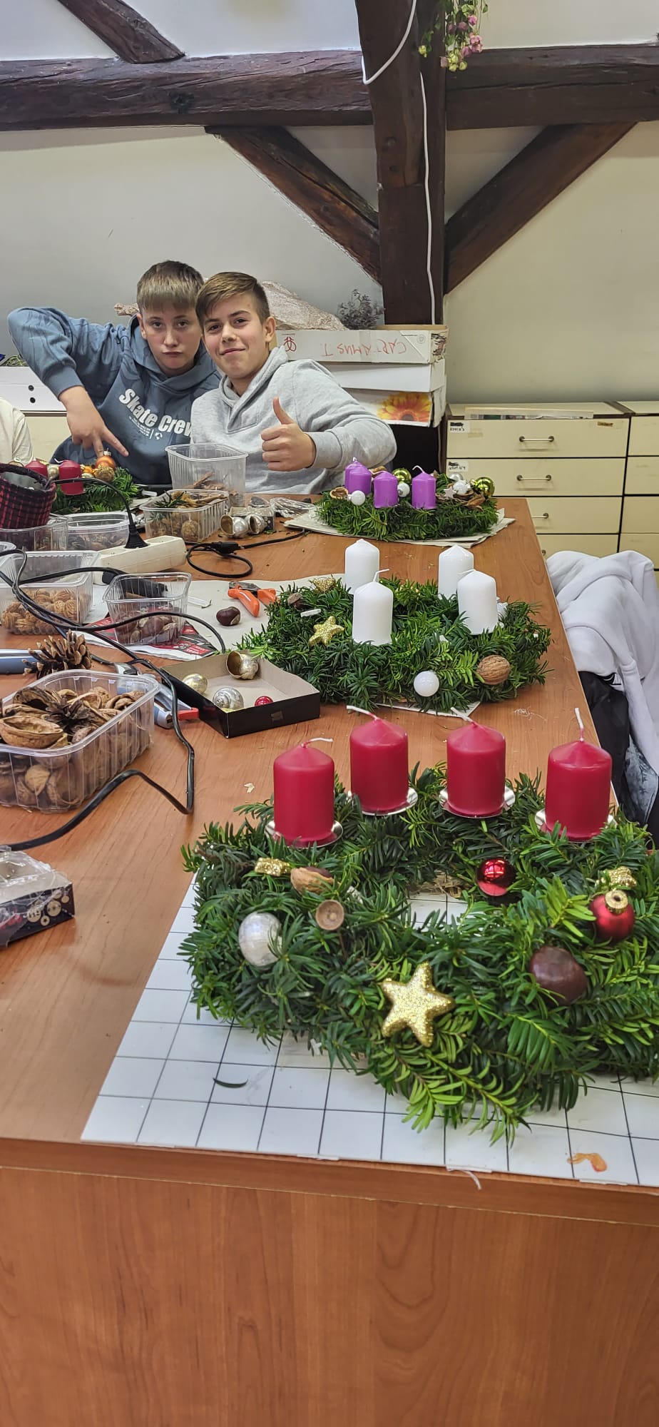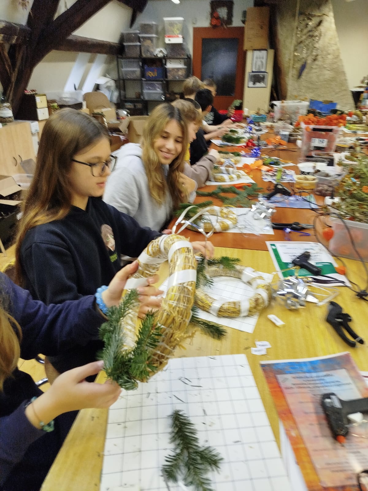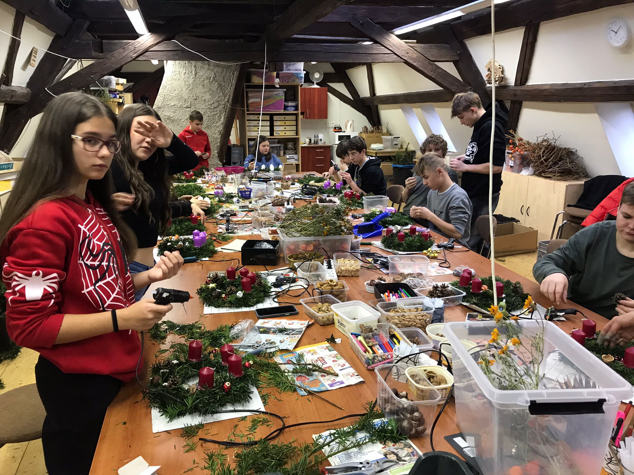 V minulých týdnech se třídy 7. A, 7. B, 8. A a 9. A zúčastnily vánočního tvoření na Libverdě. Celá akce proběhla pod dohledem zkušené floristky paní Jarešová, tudíž mají hotové věnce velmi vysokou úroveň. Žáci si tvoření užili a pokročili ve svých kreativních dovednostech. Mgr. Martina Hanzaliusová