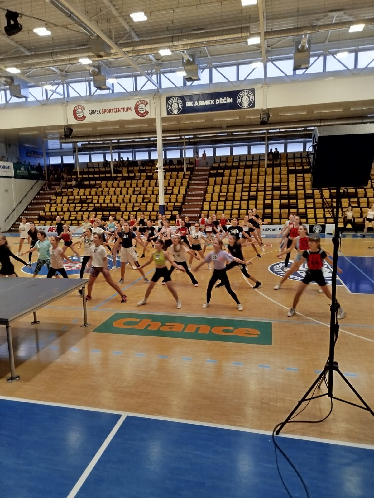V krásném profesionálním sportovním prostředí Maroldovy haly se konala pohybová soutěž pro nadšené dívky, které rády sportují a tančí. Celé dopoledne dívky cvičily pod vedením zkušených lektorek ze sportovního klubu Fajjn Aerobik Děčín a po celé dopoledne byla děvčata plná úsměvů. Akce nebyla pouze soutěžní, ale hlavně pro radost z pohybu za zvuků krásných a velmi chytlavých písní.