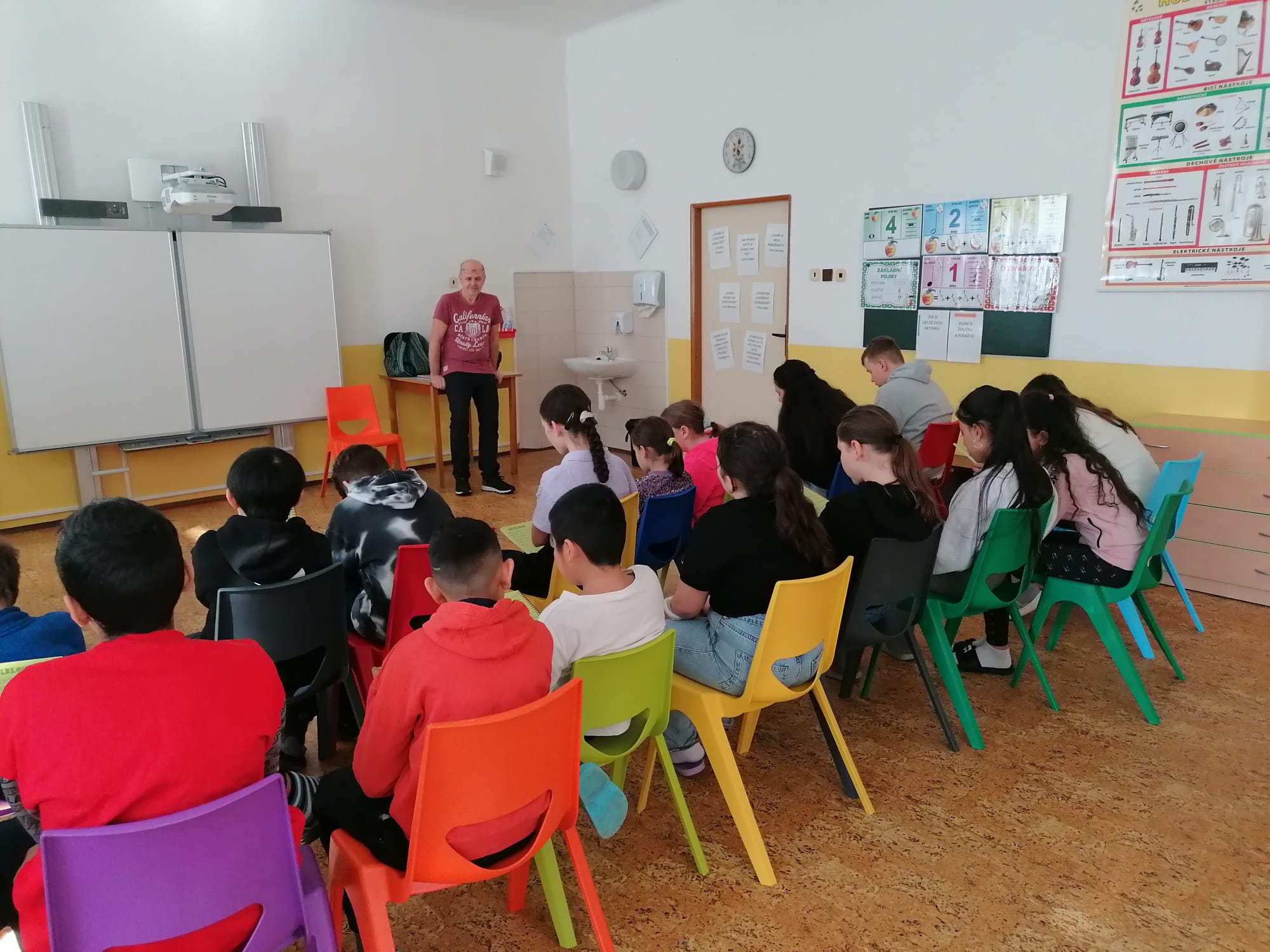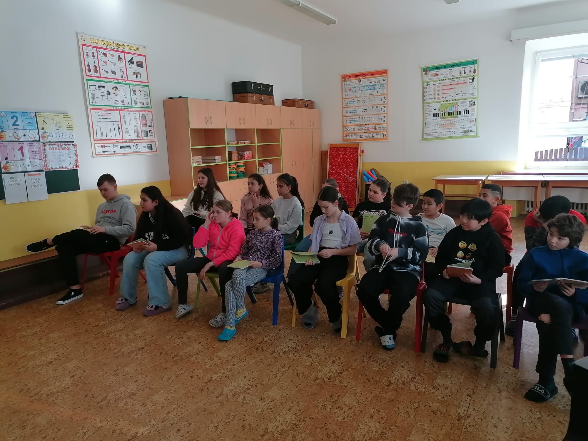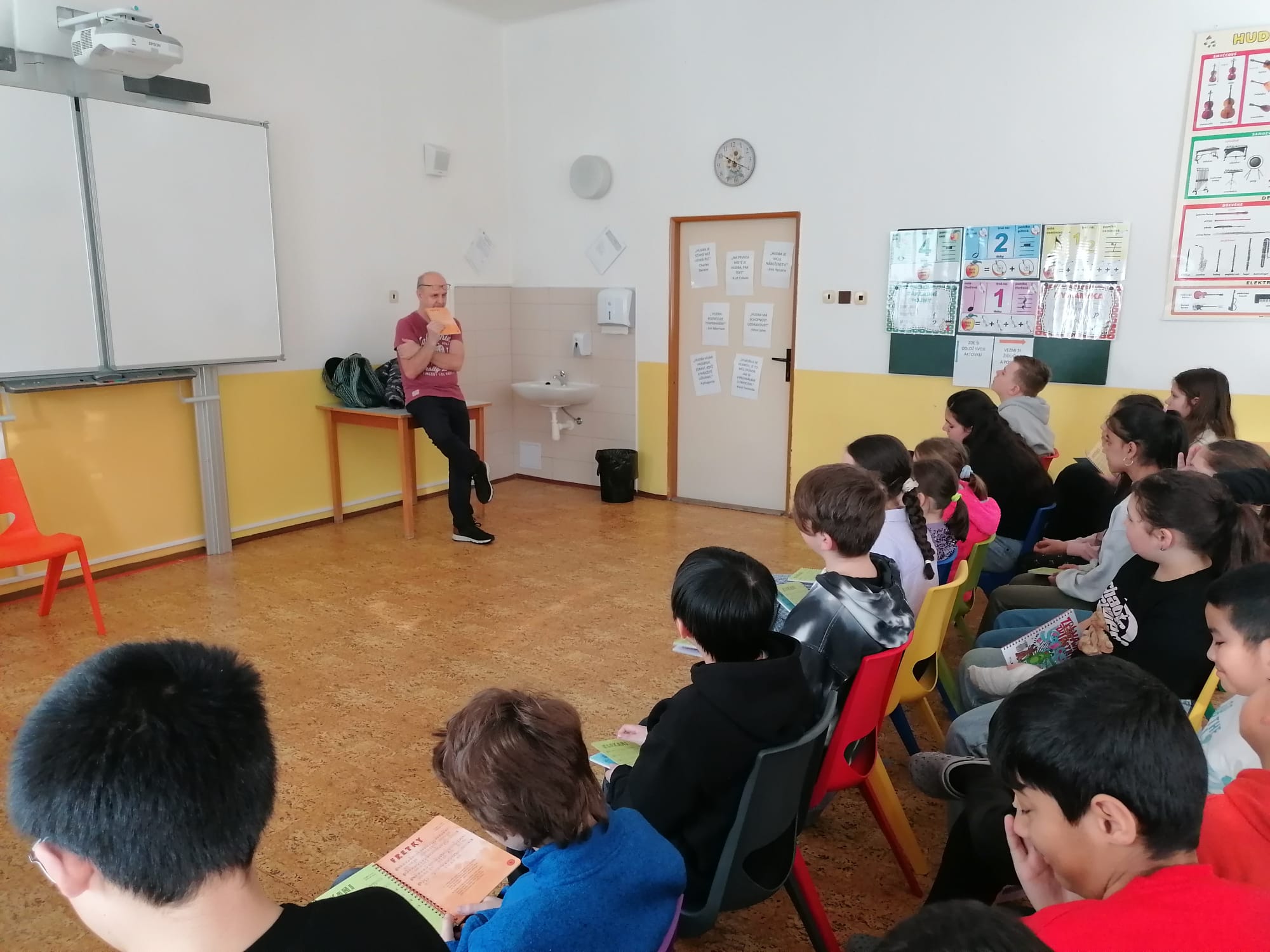 Jednalo se o besedu s panem Miloslavem Ivanem - autorem zpěvníků "Zvířetník" a "Prázdninový vánočník", které naše škola pořídila z projektu a žáci je teď mohou využívat v hodinách hudebních výchov.