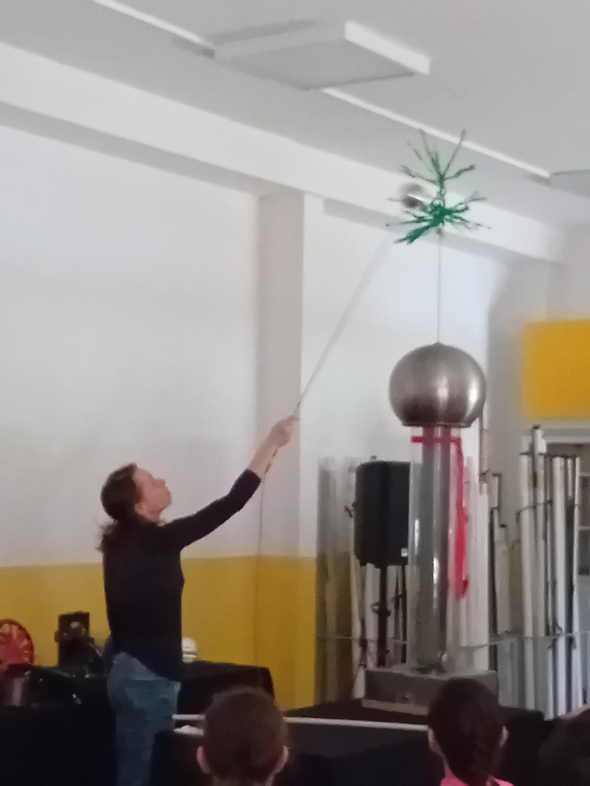 Pokračovali jsme výrobou elektřiny třením pomocí Van de Graafova generátoru.