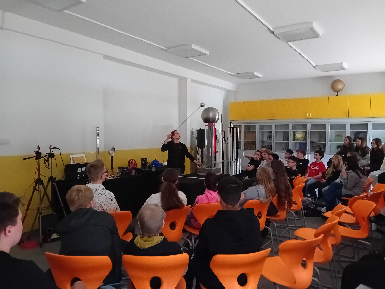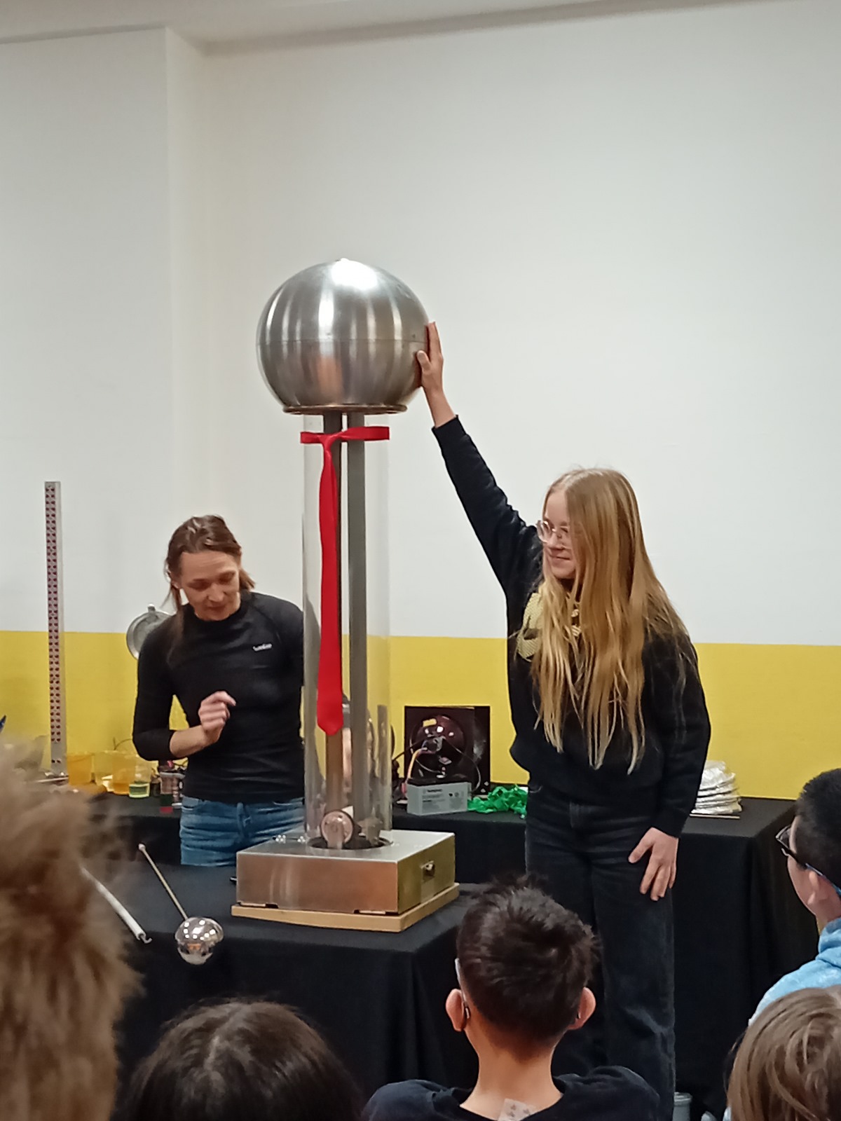 Ukázala nám průřez pokusů s elektřinou. Sestavili jsme si první baterii, jejíž součástí se stali samotní žáci 🙂