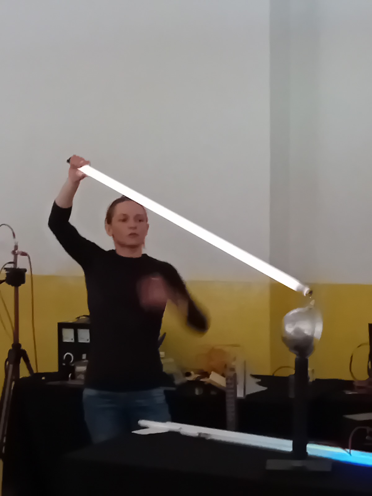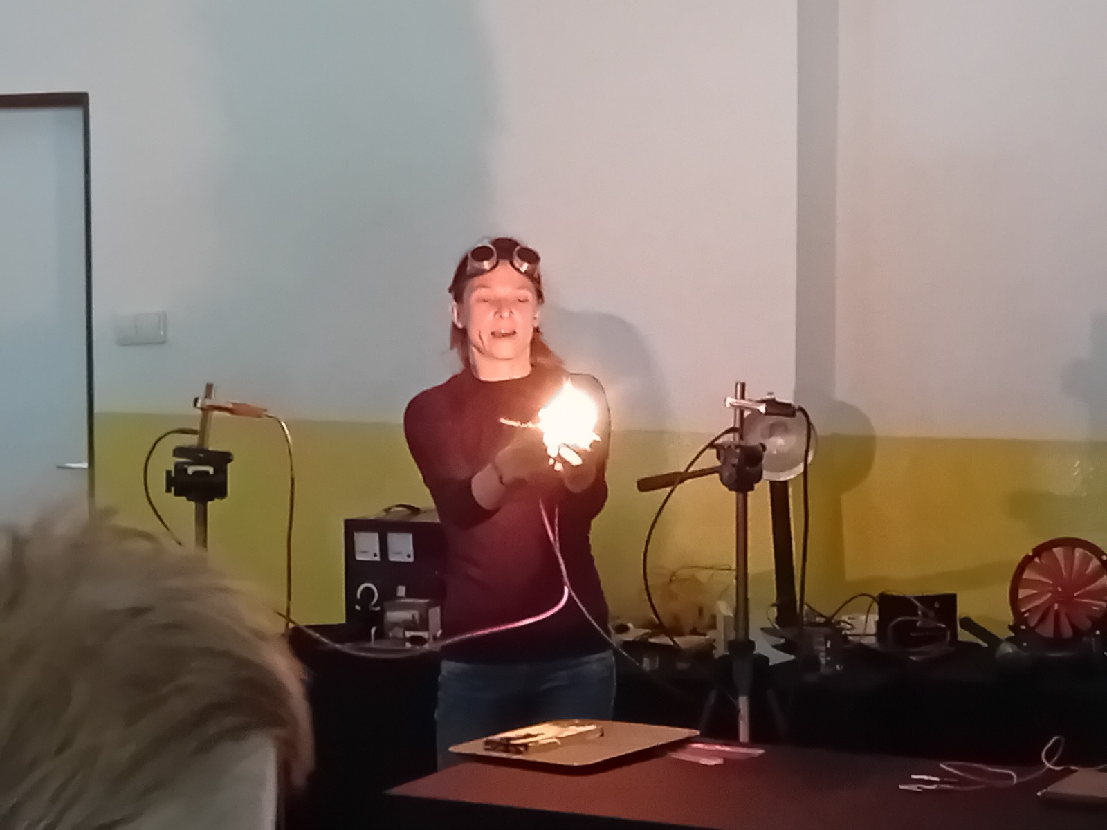 Na úplný závěr nám Bára předvedla, jaké nebezpečí reálně hrozí při kontaktu s el. proudem např. na železničních vagónech.