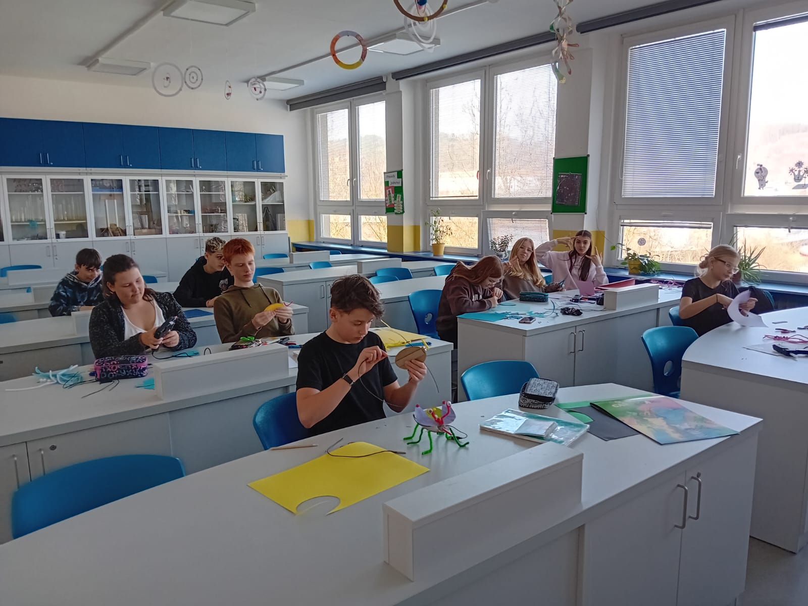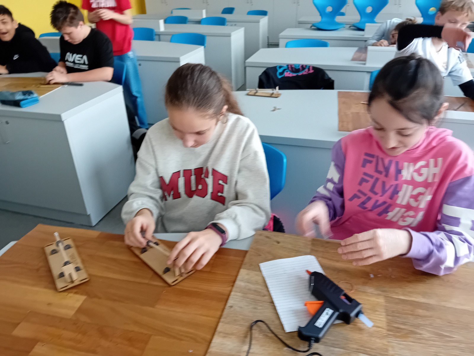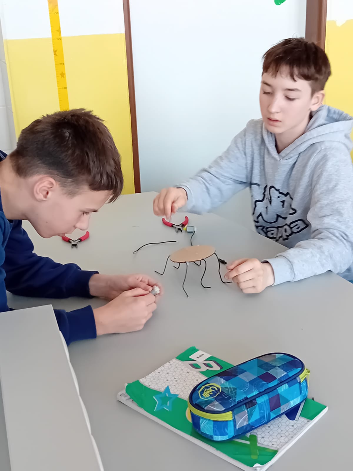 Na přednášku pak v dalších dnech navazoval workshop, při kterém si žáci vyrobili a odnesli domů zajímavou fyzikální hračku - buď levitující tužku nebo elektro brouka.