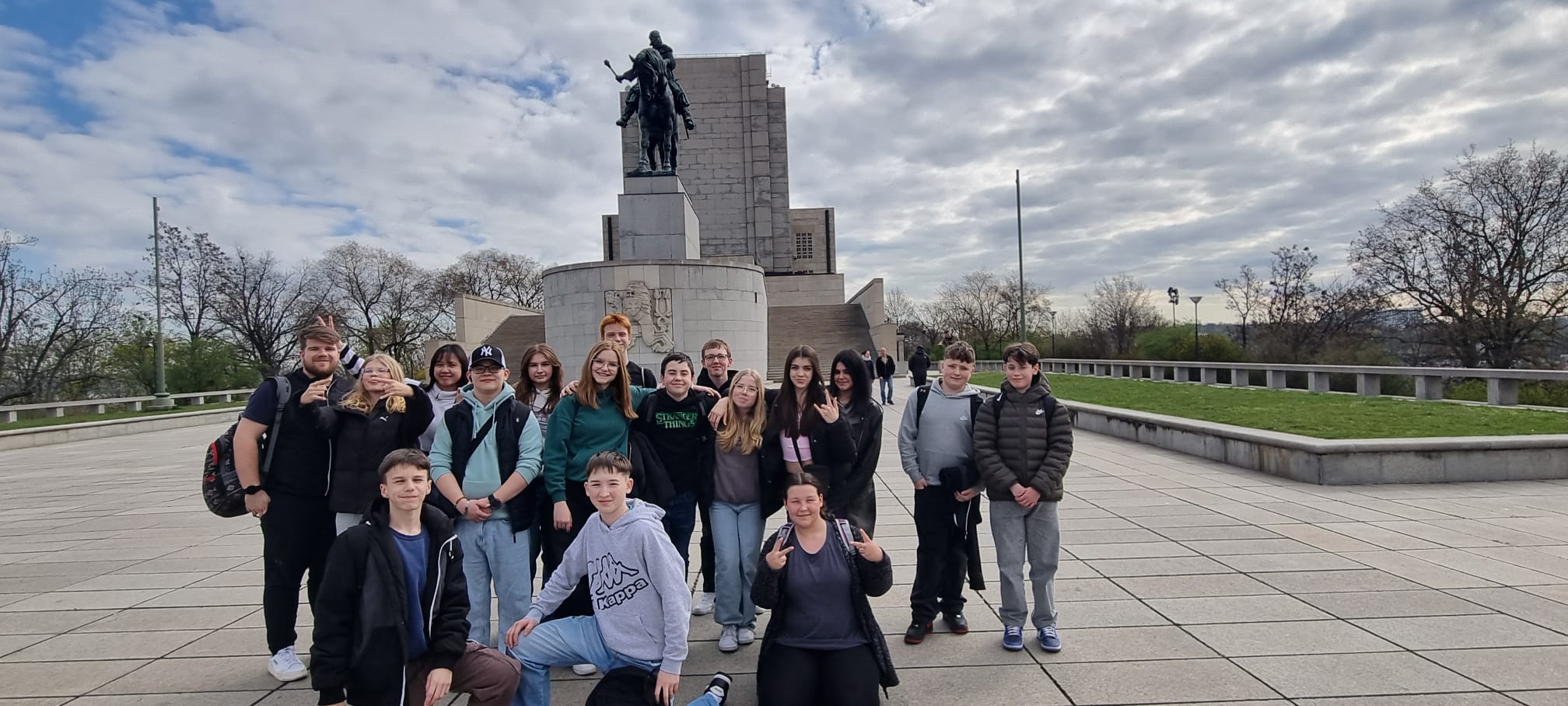 Hned po příjezdu dostali žáci praktickou ukázku, jak bylo pro Křižáky těžké vydrápat se za Janem Žižkou na kopec Vítkov - bohužel neměli žáci k dispozici těžké křižácké brnění.
