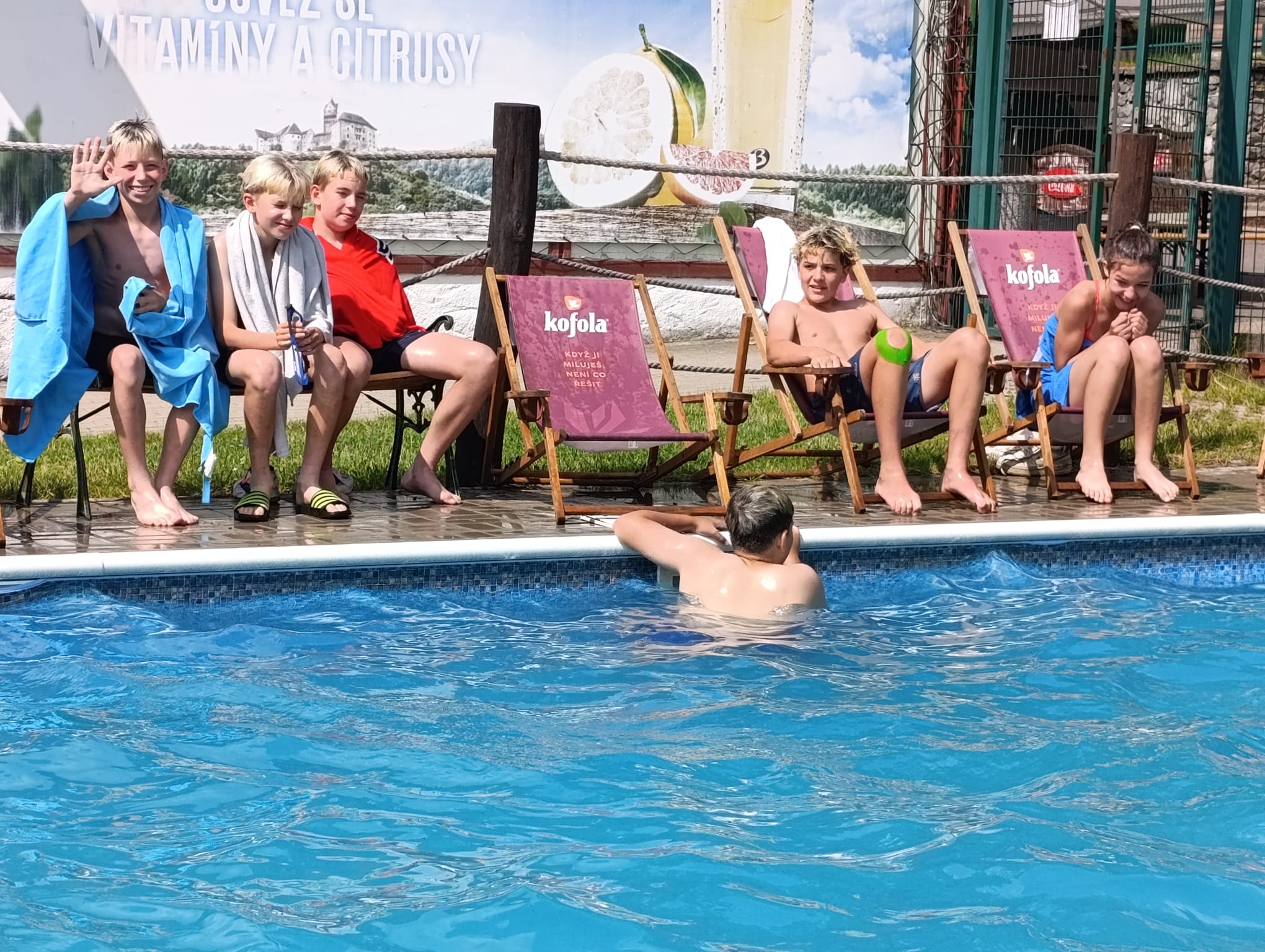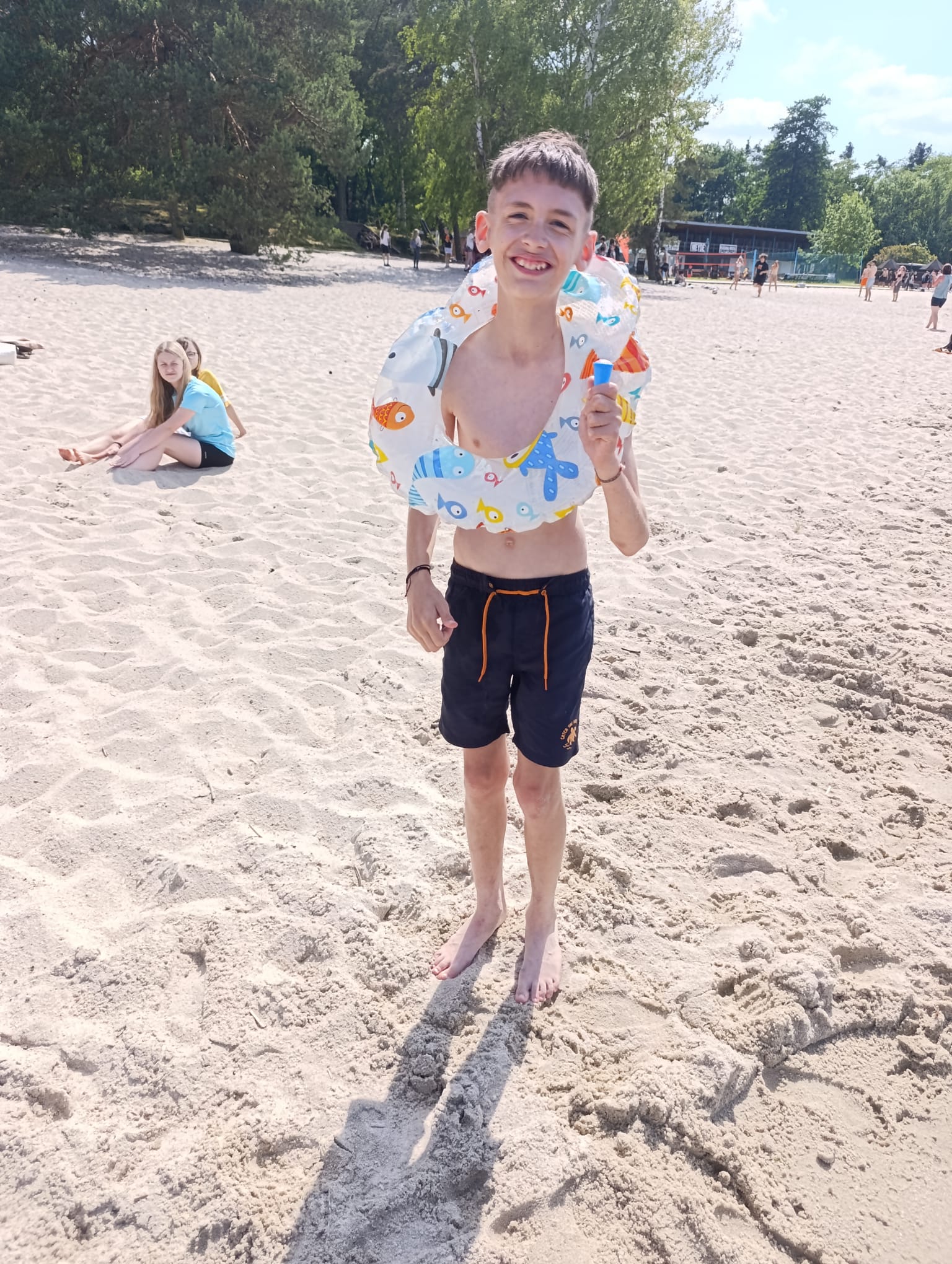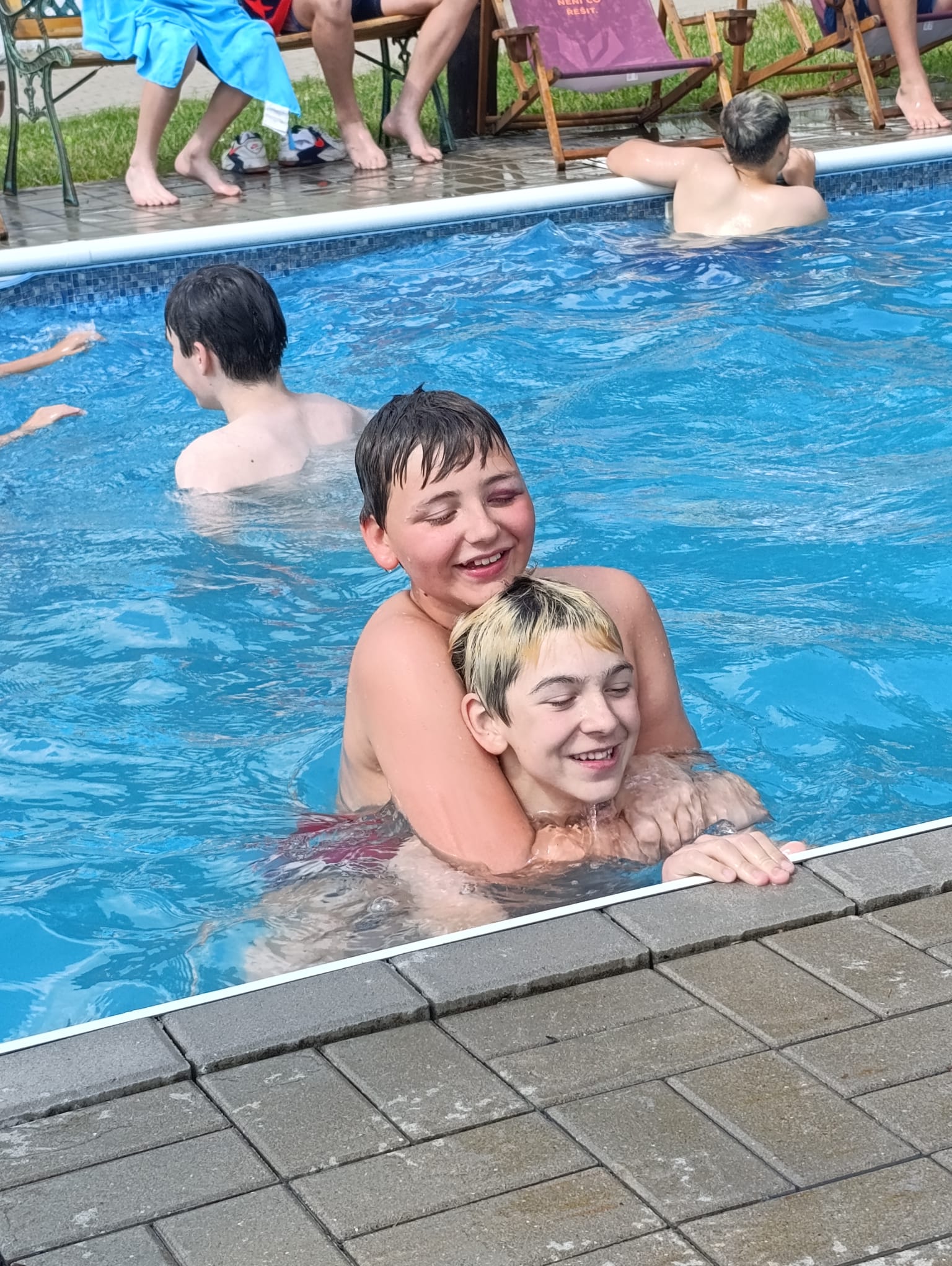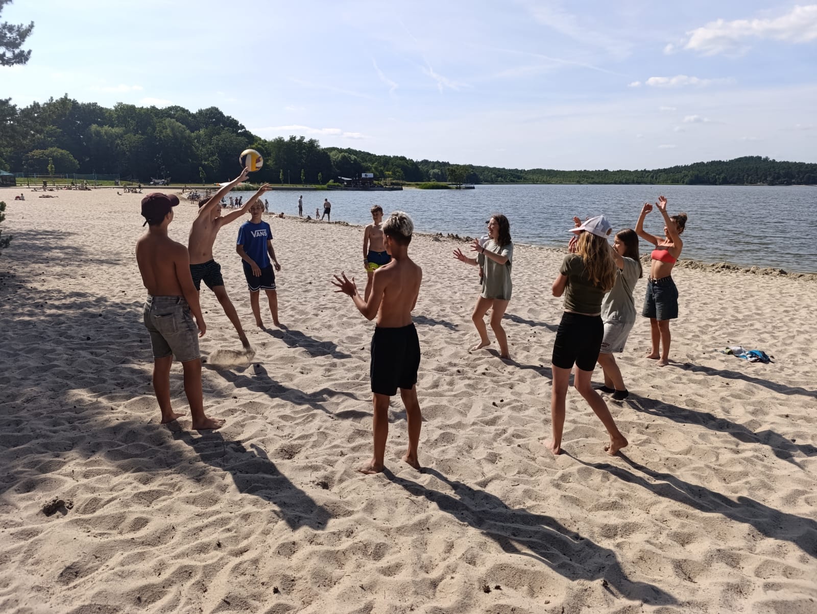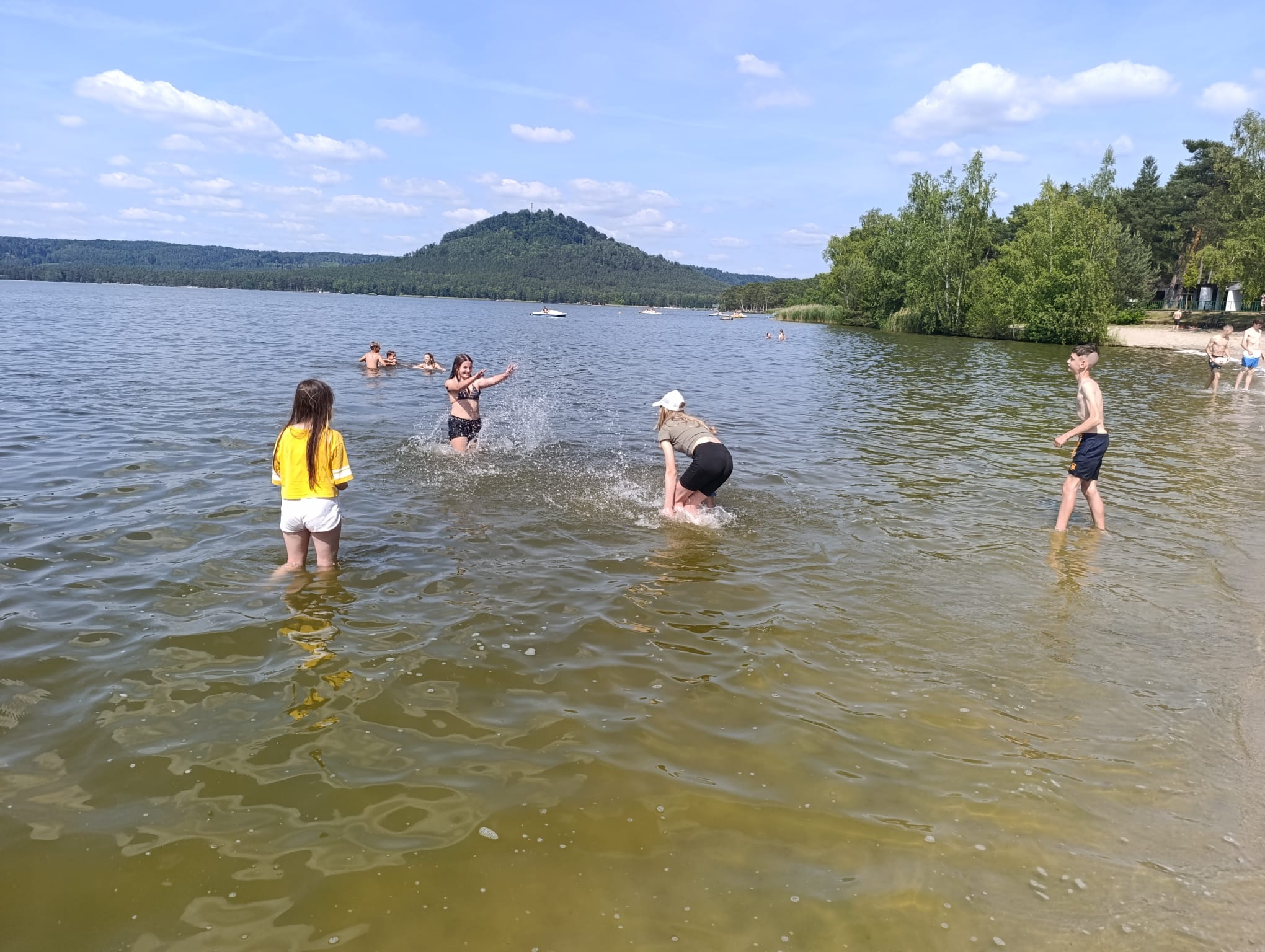 Druhý den jsme se probudili do krásného slunečného dne. Po snídani jsme celé dopoledne hráli turnaj v přehazované, poté všichni naskákali do bazénu a pořádně se vyřádili. Před obědem jsme vše zabalili, předali chatky a po knedlu, špenátu, vepřu jsme se vydali směr Máchovo jezero. Tentokrát do vody vlezli všichni. Někteří si půjčili šlapadla, jiní plavali, další hráli míčové hry nebo si pochutnávali na zmrzlině či ledové tříšti.