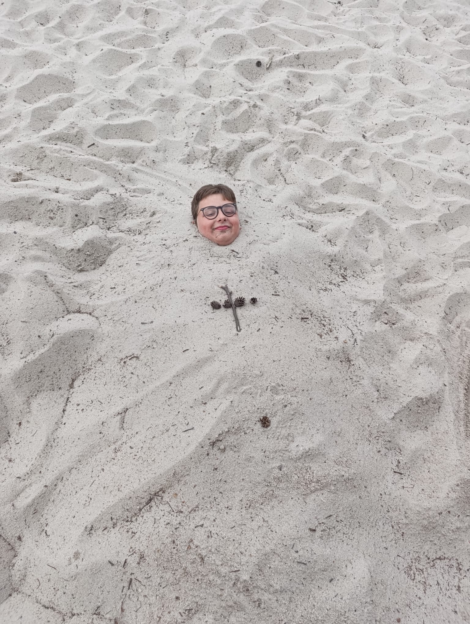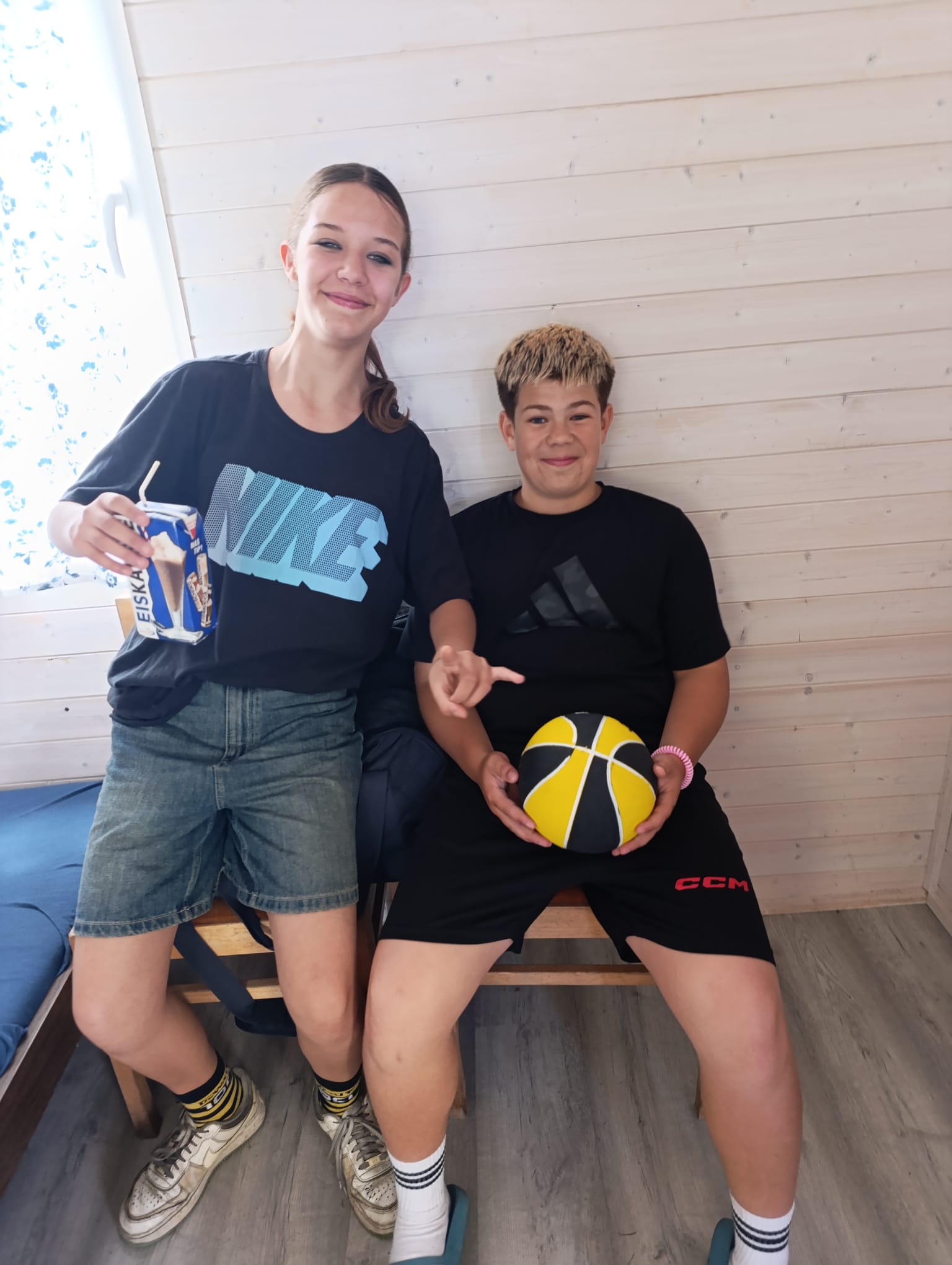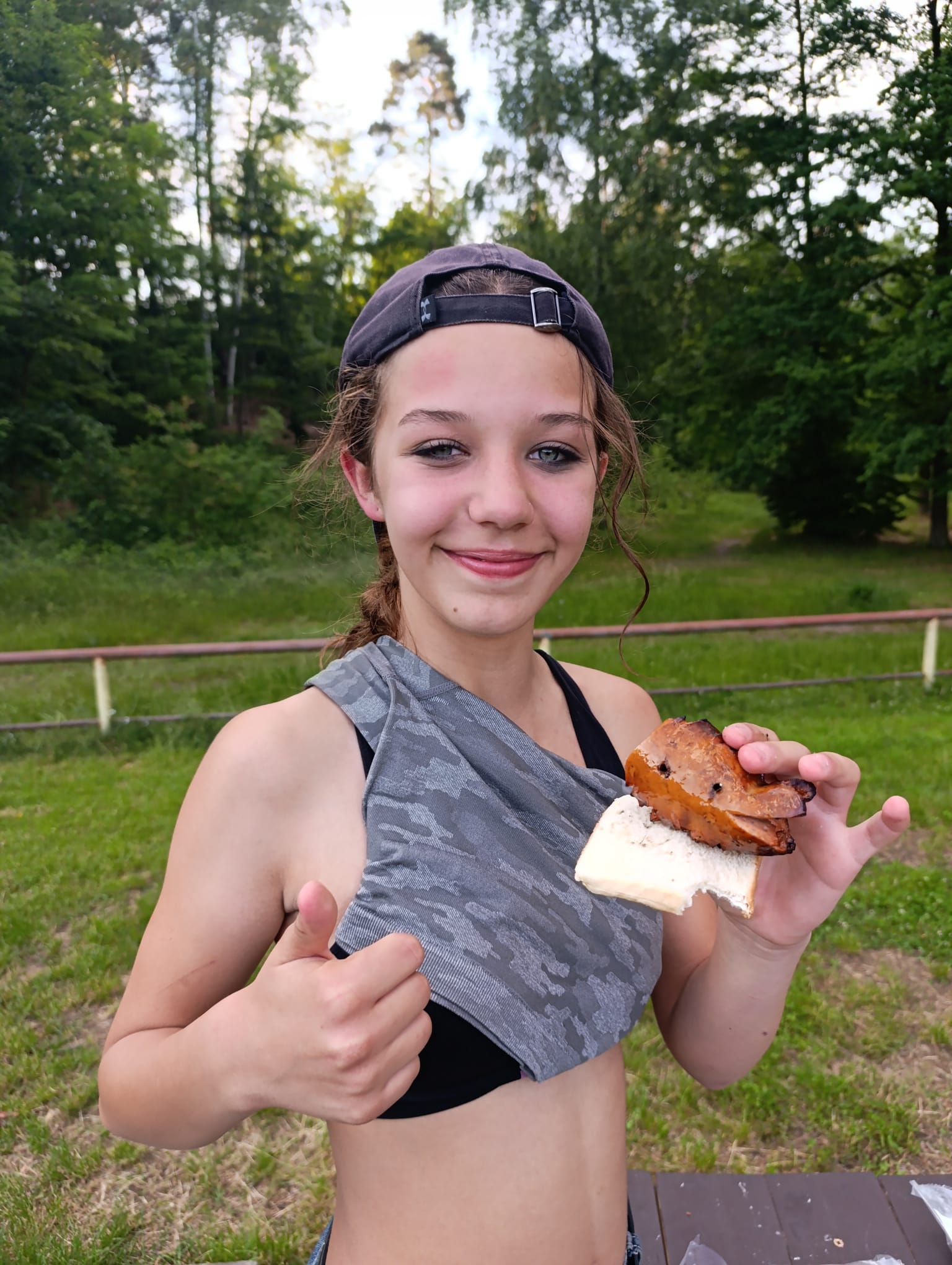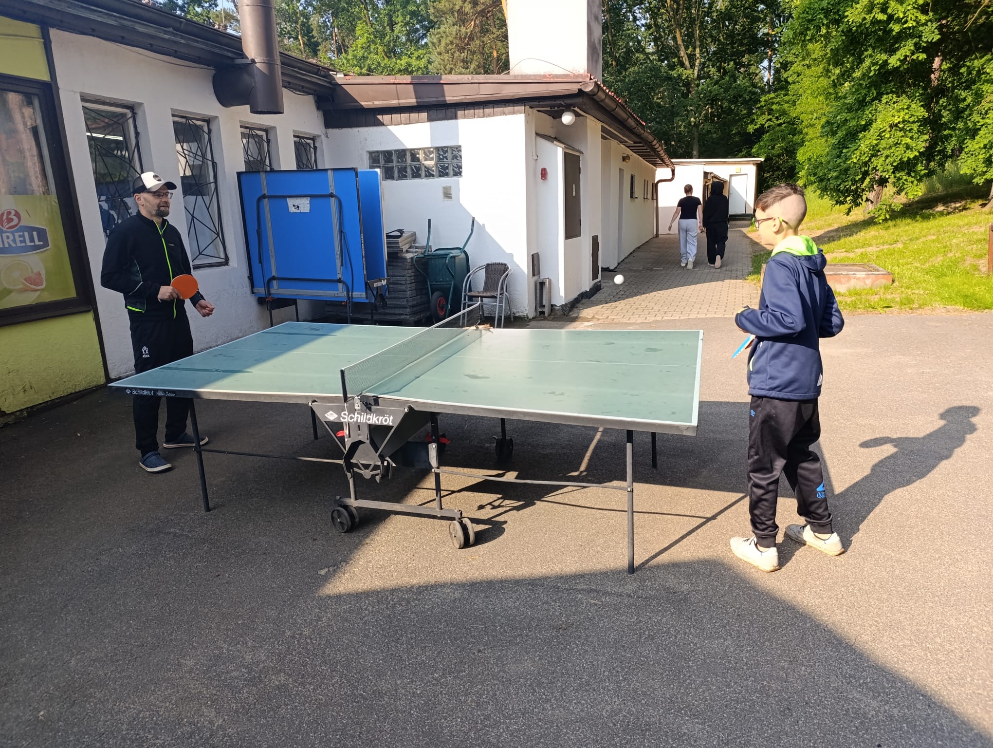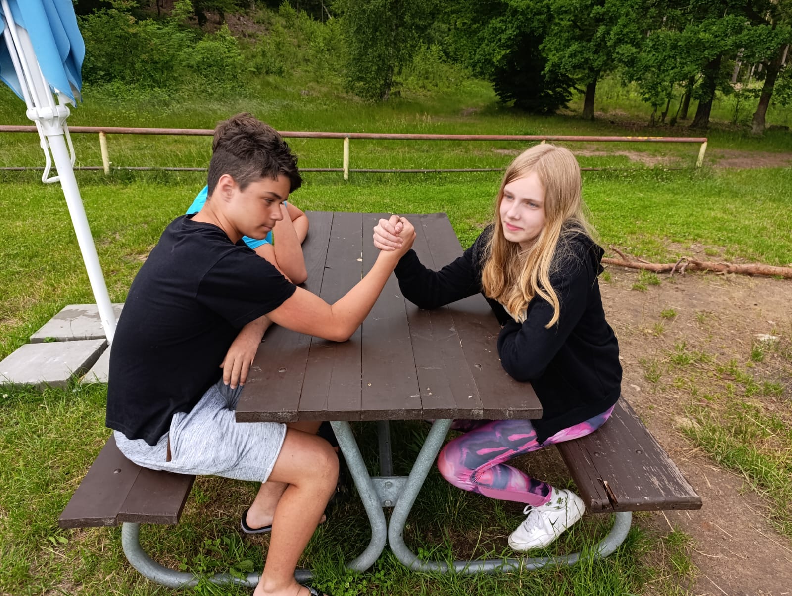 Po příchodu do areálu přestalo pršet a my se mohli po vybalení věcí a povlečení lůžkovin věnovat mnoha plánovaným i neplánovaným aktivitám. Bazén, beachvolejbalové kurty, hřiště na fotbal, pingpongové stoly, lezecká stěna, workoutové hřiště byly využity v plné míře. Po druhé hodině jsme si udělali procházku k Máchovu jezeru. Cestou jsme hráli několikrát „na medvěda“. Na hlavní pláži jsme pak soutěžili v písečných bězích a ve stavění přepychových staveb z písku. Odvážlivci se vykoupali v jezeře, někteří si zahráli beachvolejbal. Po příchodu jsme šli na večeři a poté jsme připravovali dřevo na večerní táborák. Plno z nás si opeklo všemožné buřtíky a klobásky.