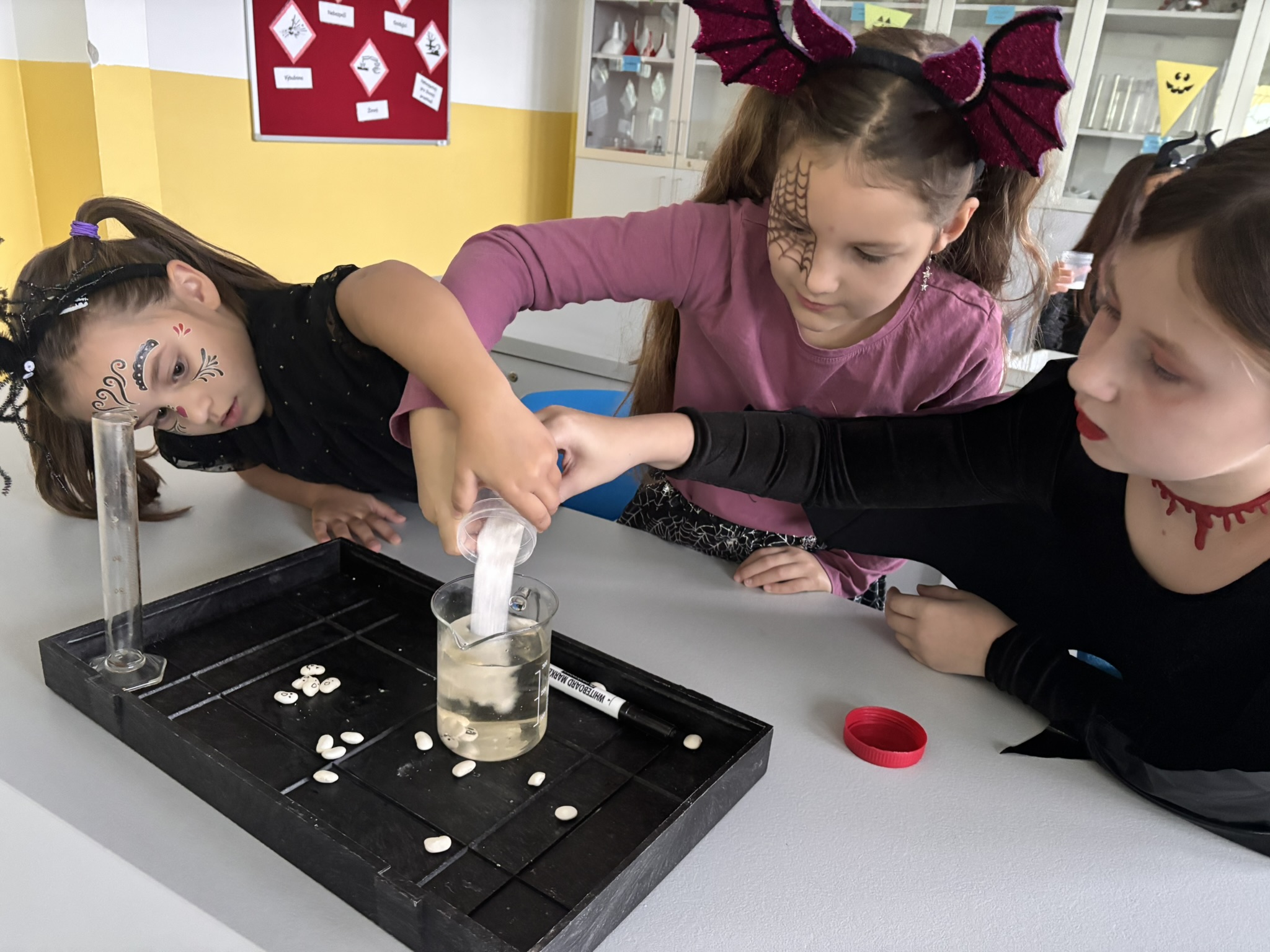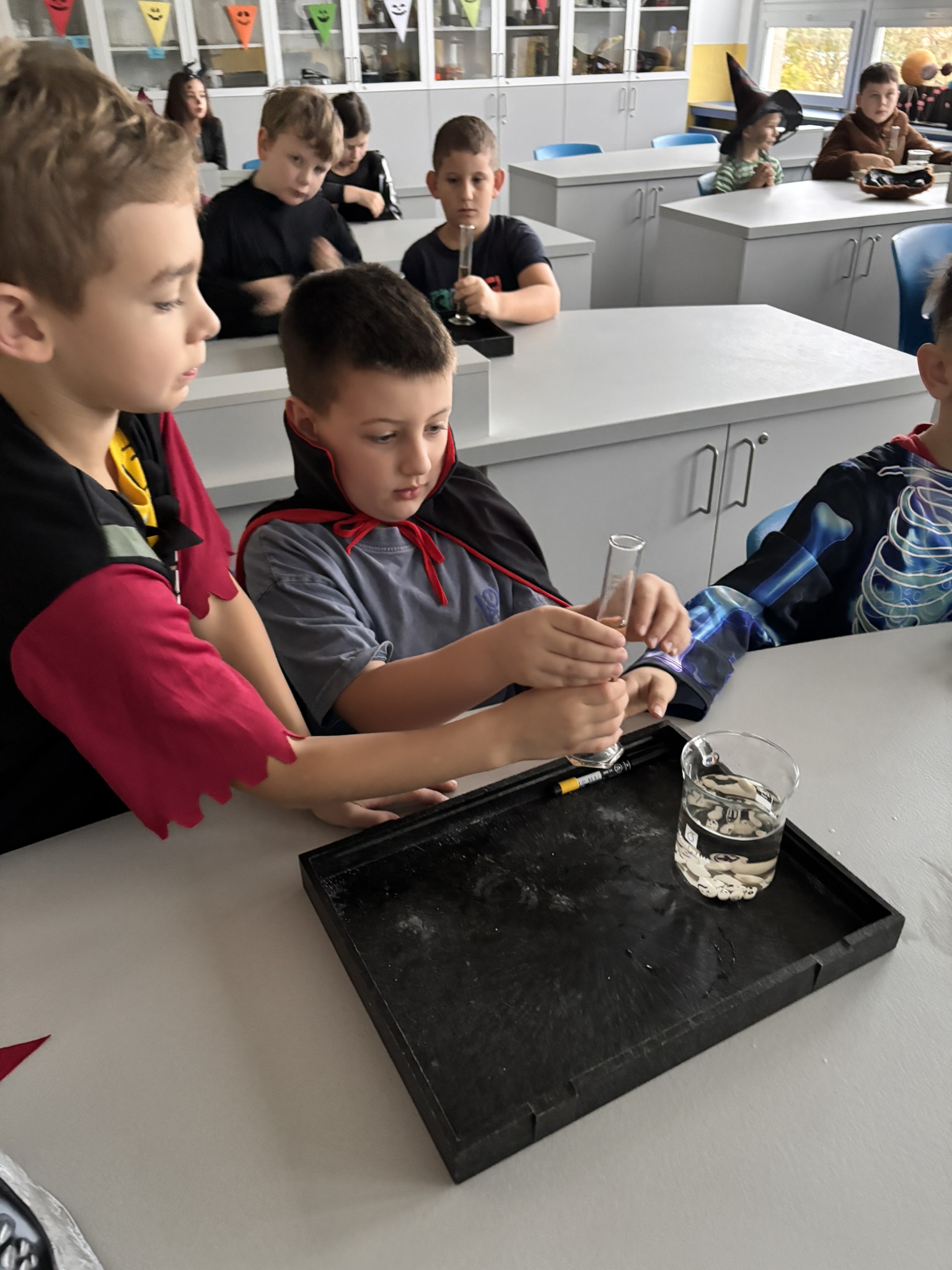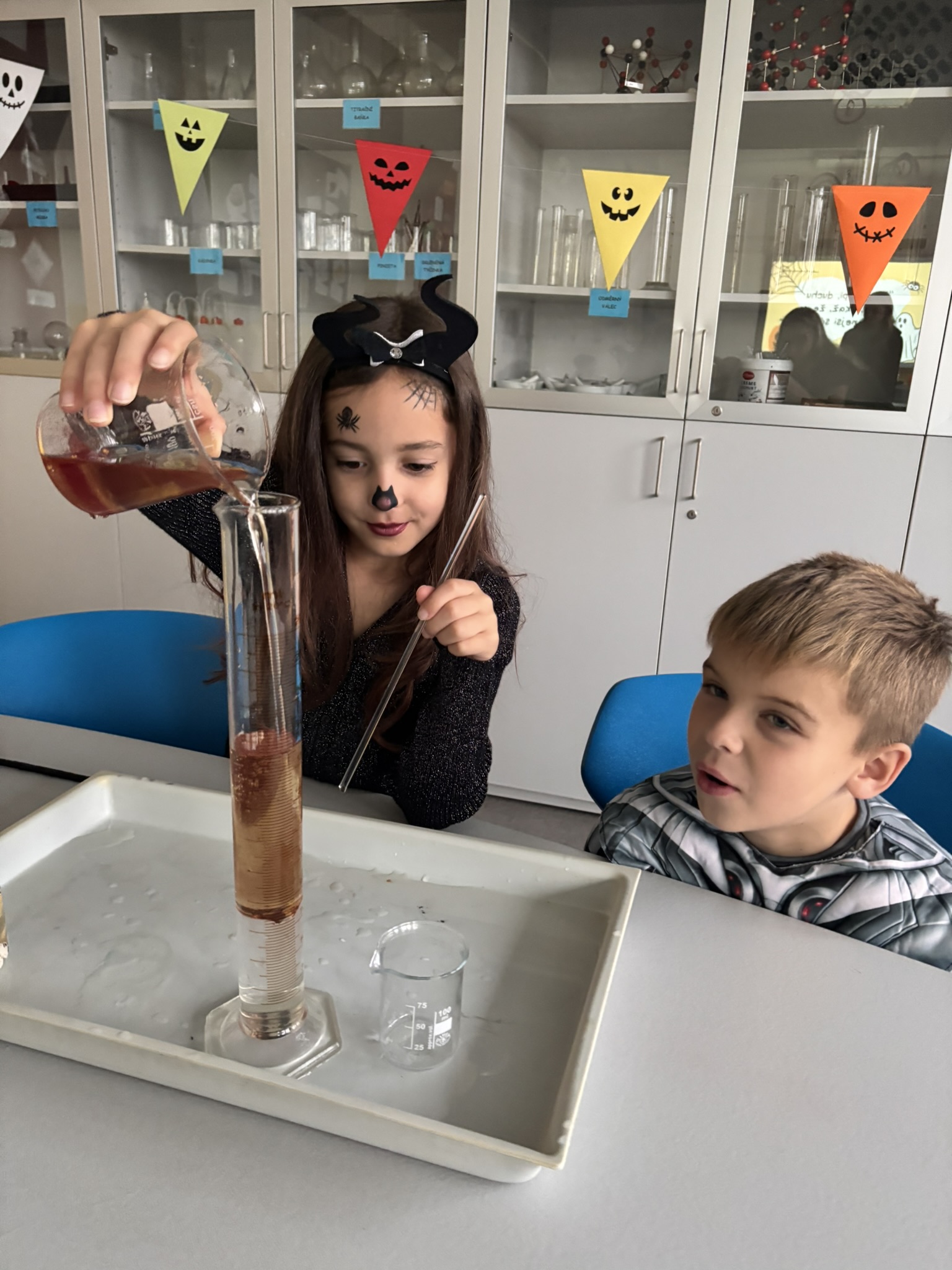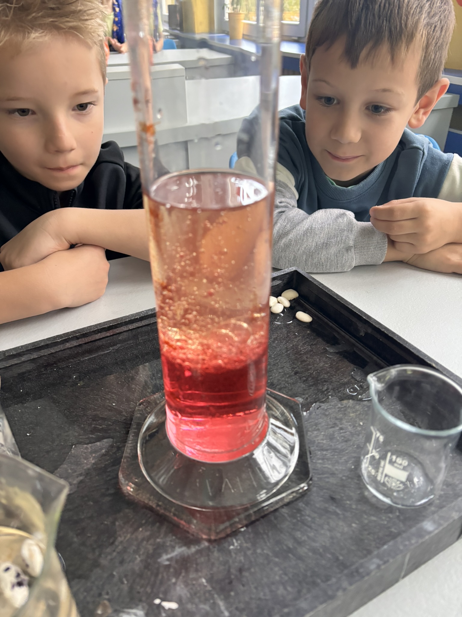 Tematické dopoledne jsme zahájili na 2.stupni v učebně fyziky, kde si děti pod vedením paní učitelky Jany Kozlovskyi zahrály na malé badatele. Vyzkoušely si kouzlo s bublajícími fazolemi, prokoukly tajemství tajemného obrázku a nakonec si vyzkoušely, jak vyrobit lávovou lampu.