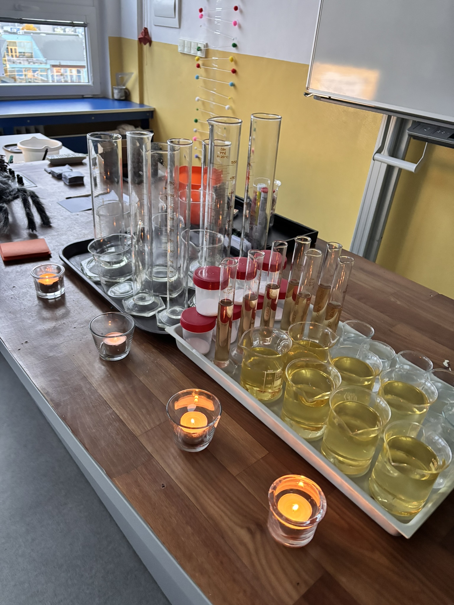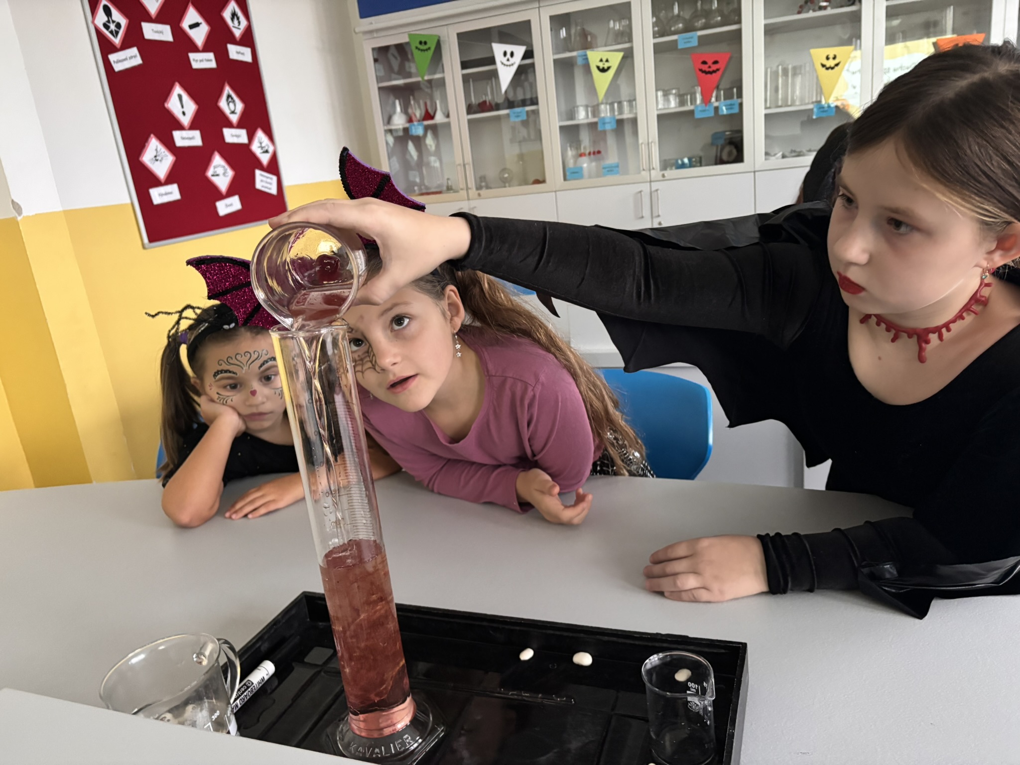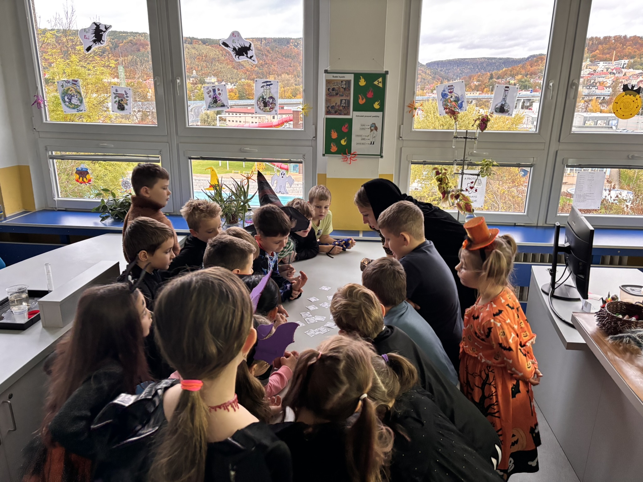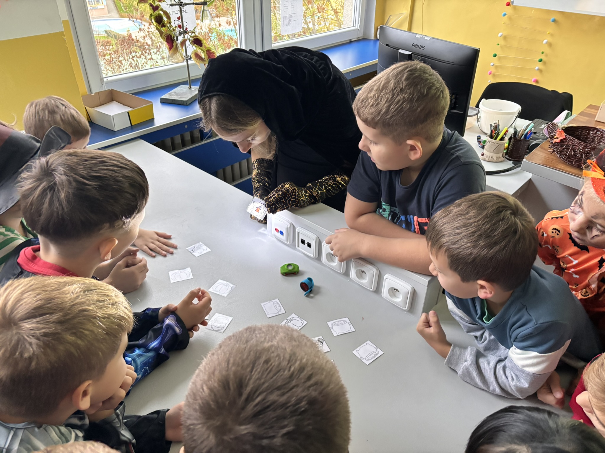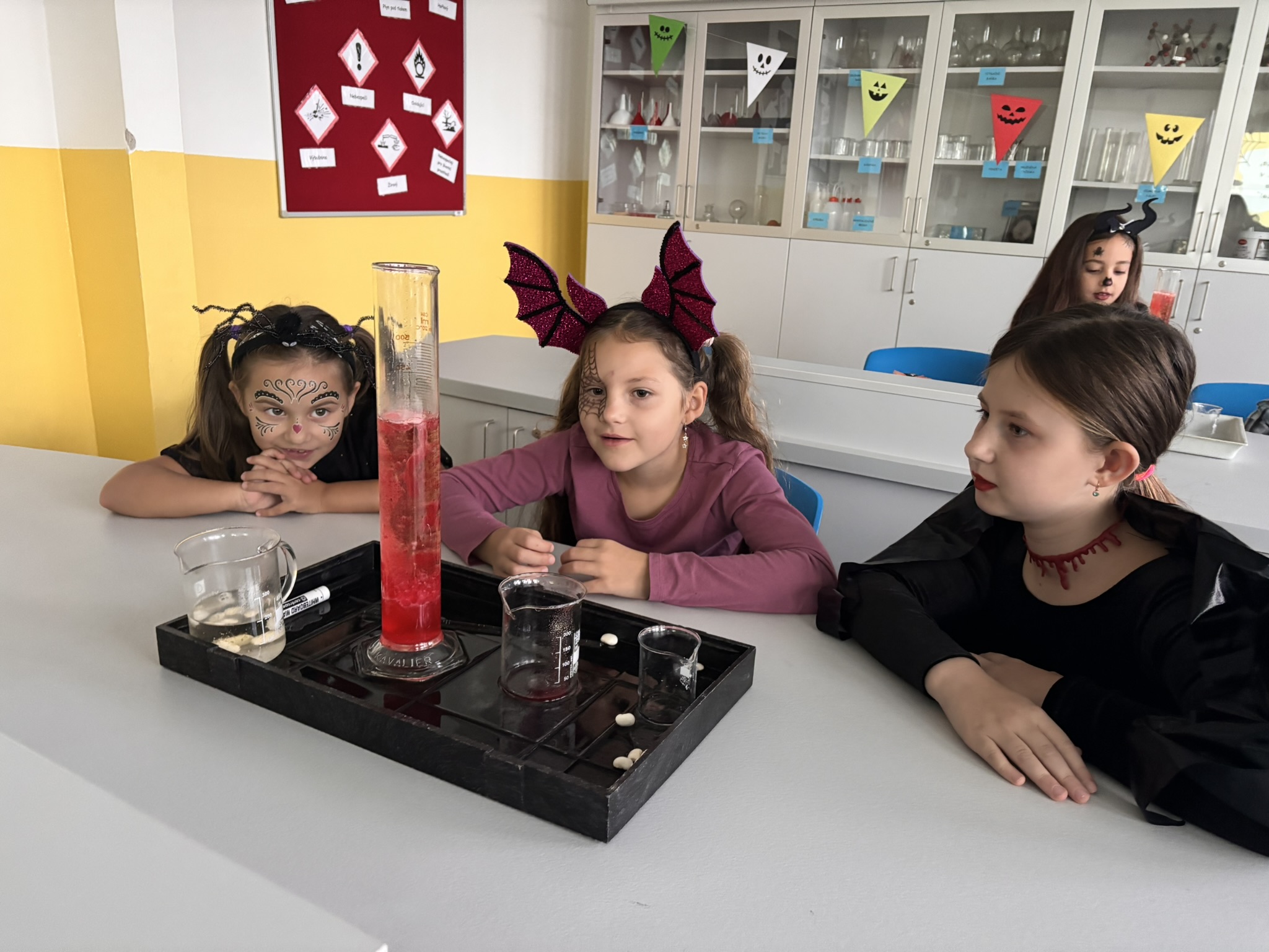 Tematické dopoledne jsme zahájili na 2.stupni v učebně fyziky, kde si děti pod vedením paní učitelky Jany Kozlovskyi zahrály na malé badatele. Vyzkoušely si kouzlo s bublajícími fazolemi, prokoukly tajemství tajemného obrázku a nakonec si vyzkoušely, jak vyrobit lávovou lampu.
