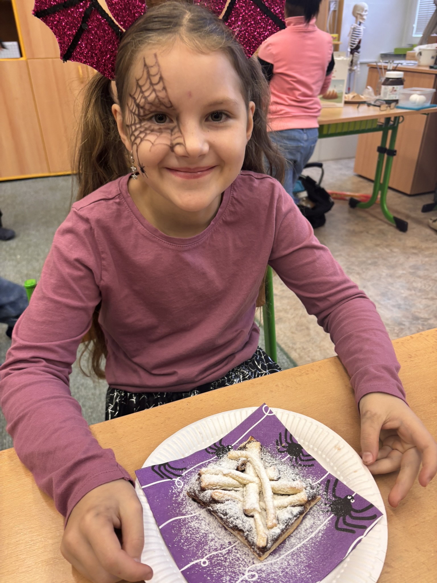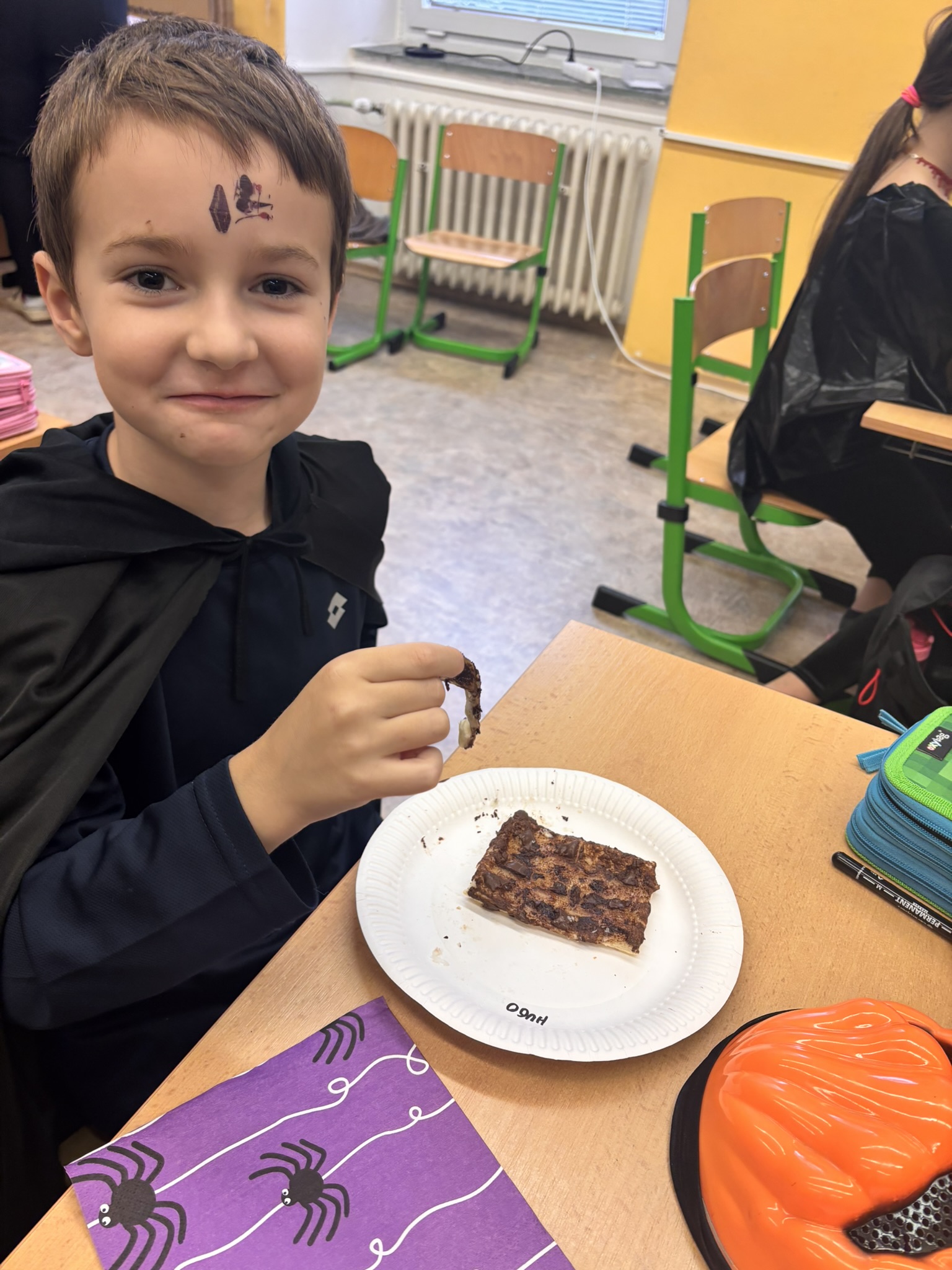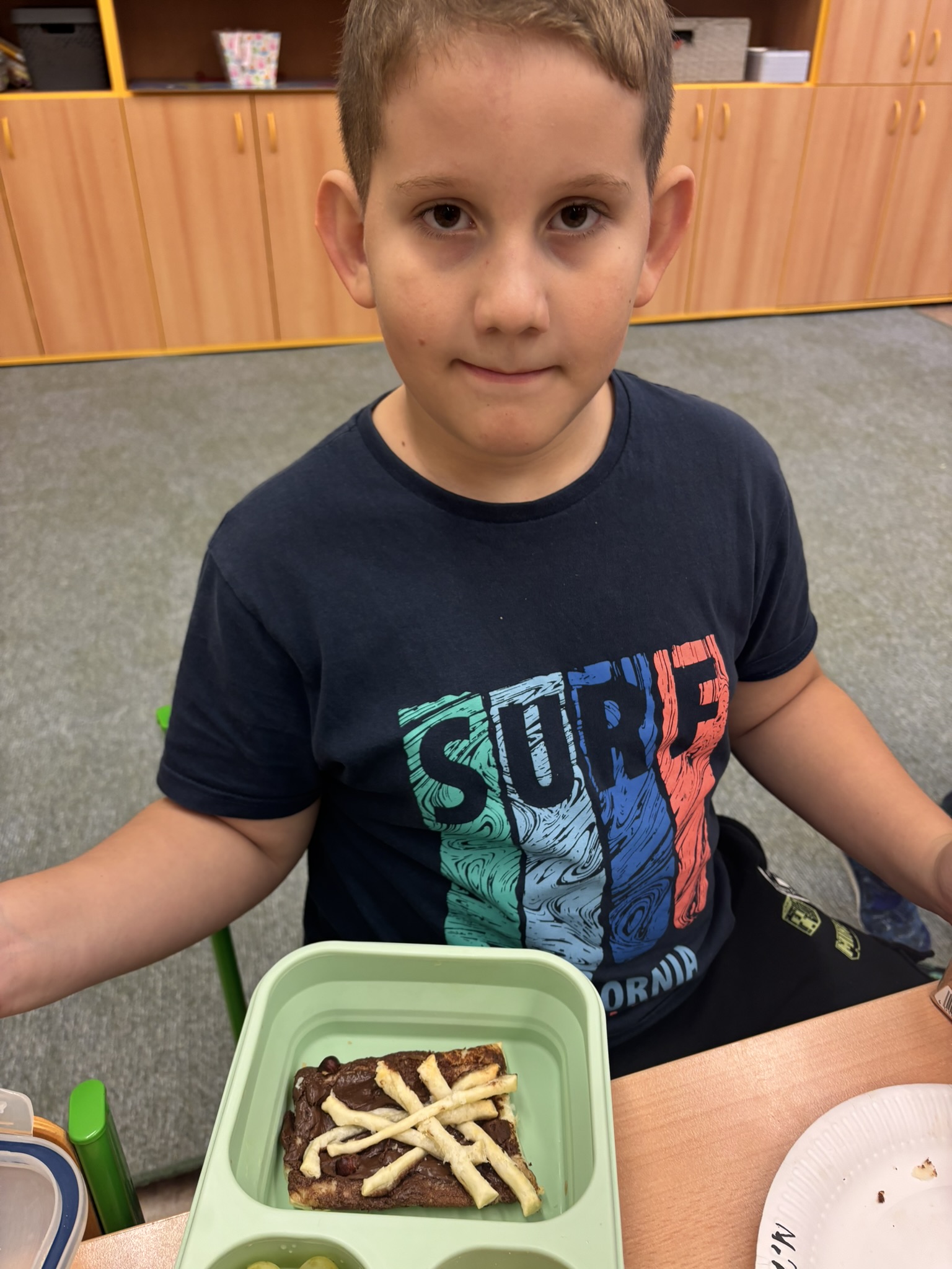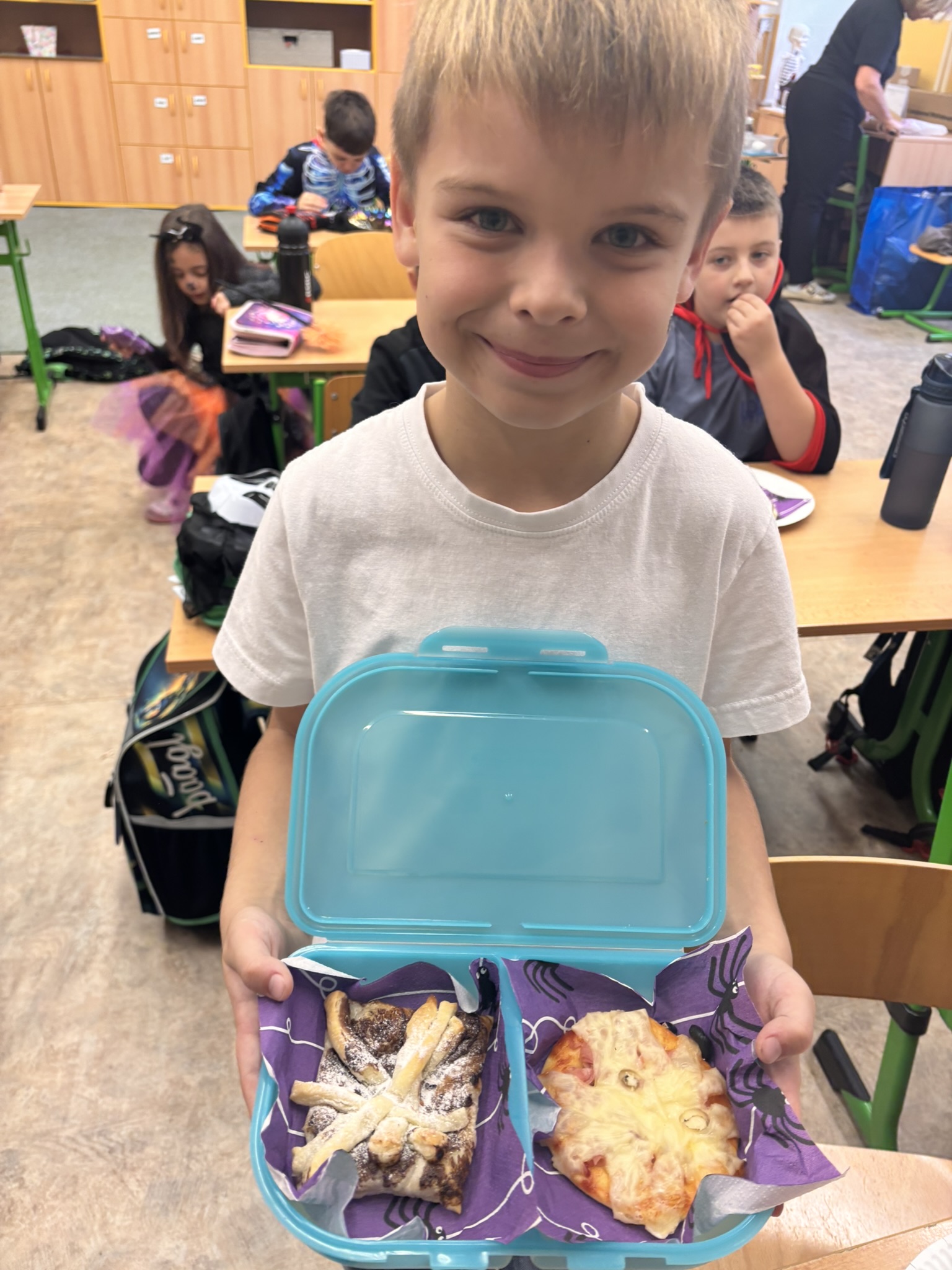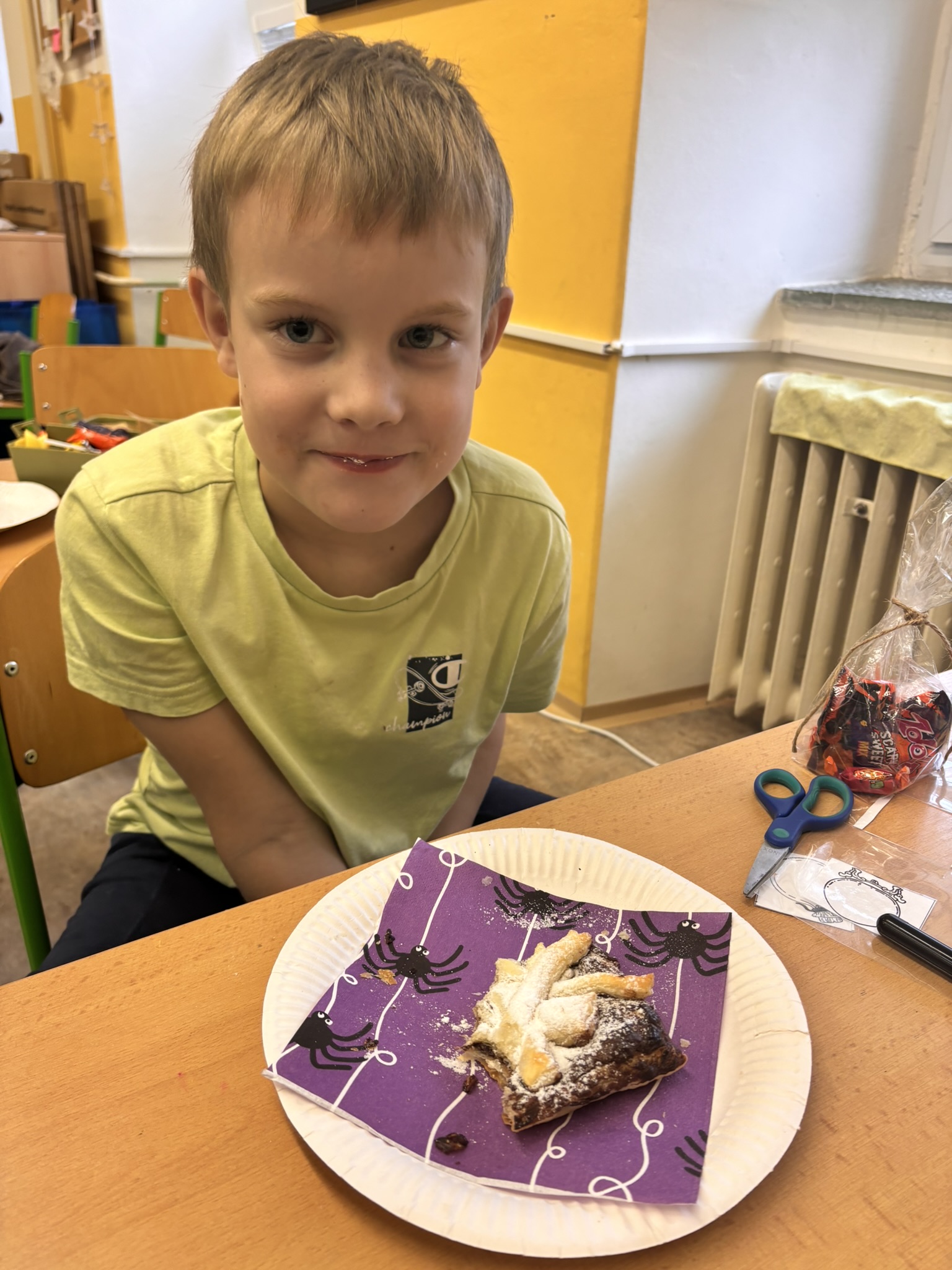 Z badatelů se děti rychle převtělily do kuchtíků a připravily si halloweenskou pizzu a nutelovou mumii. V kuchyňce si tyto dobroty daly do trouby a když se vše upeklo, tak to také dětem moc chutnalo.