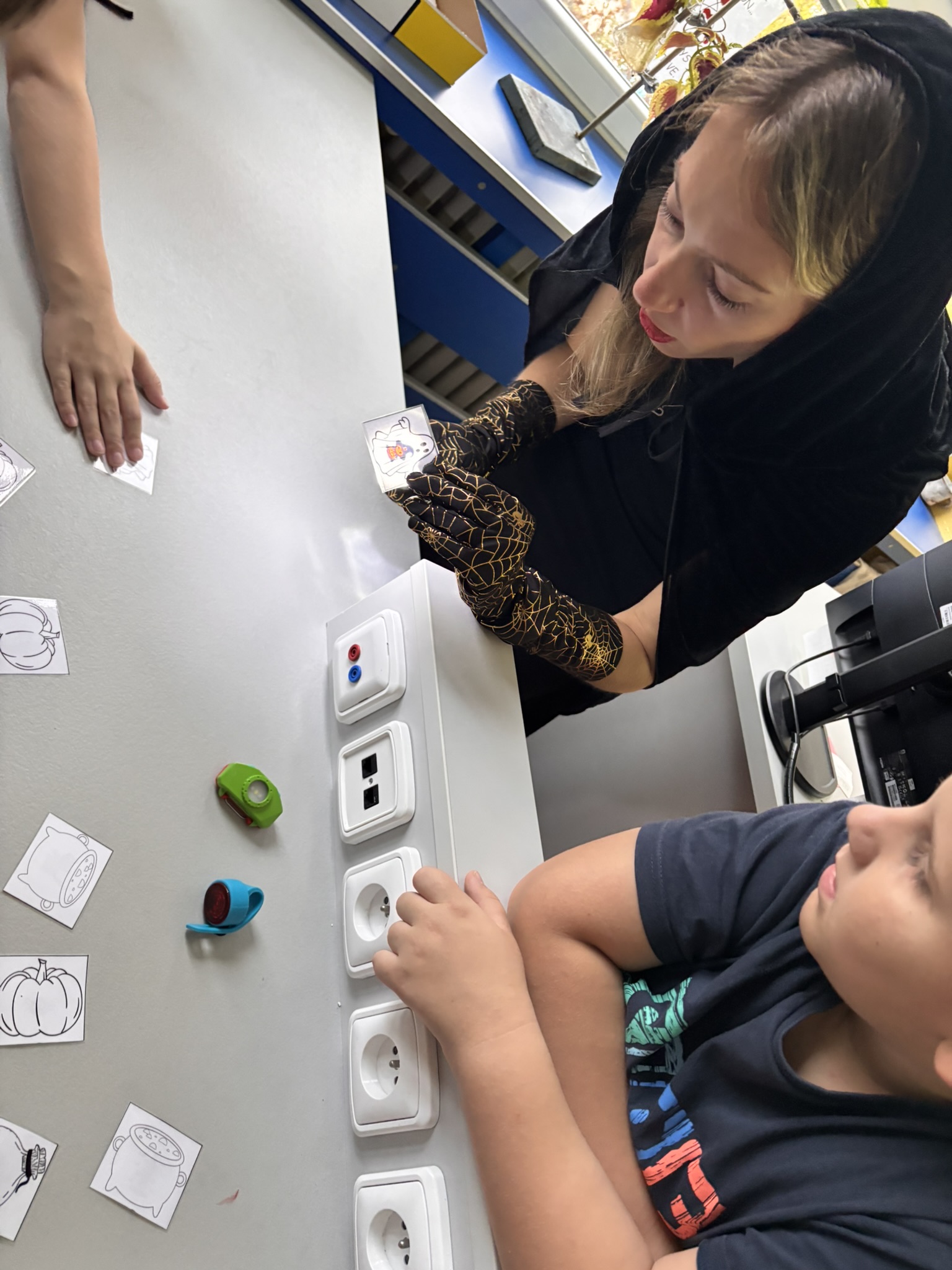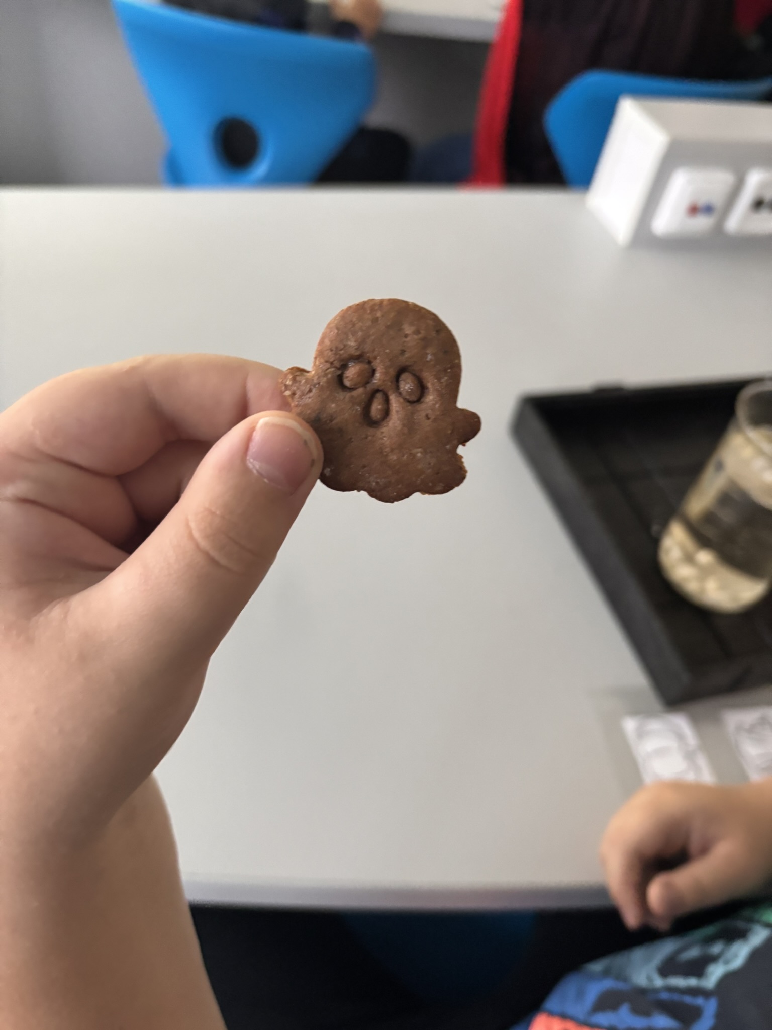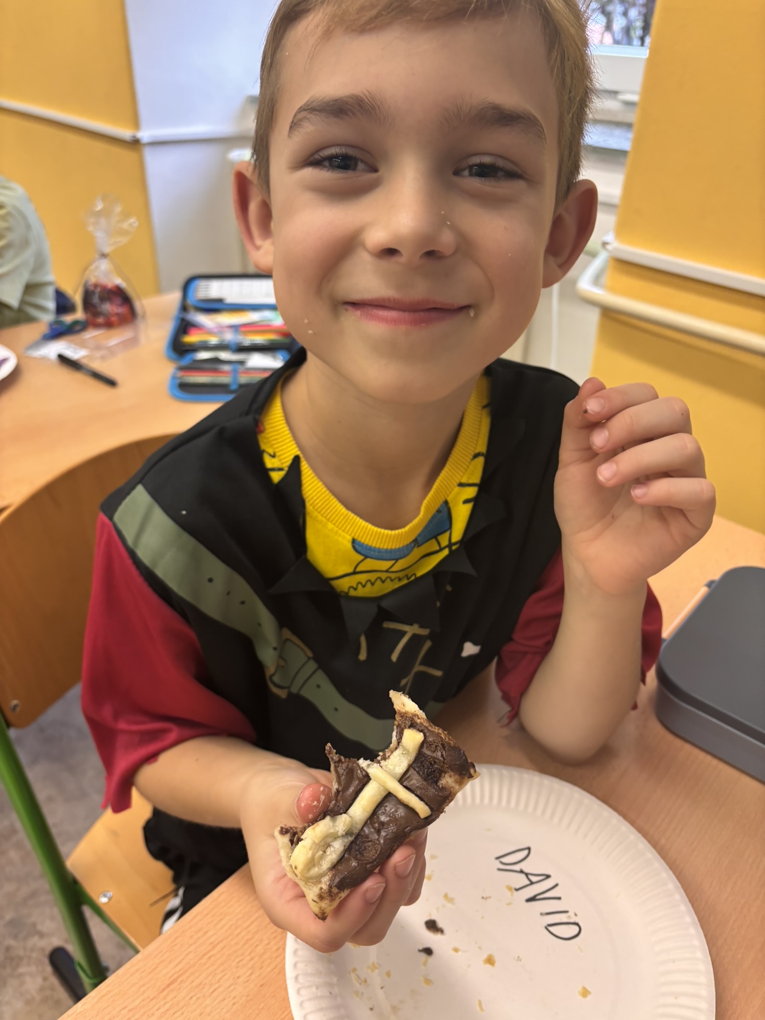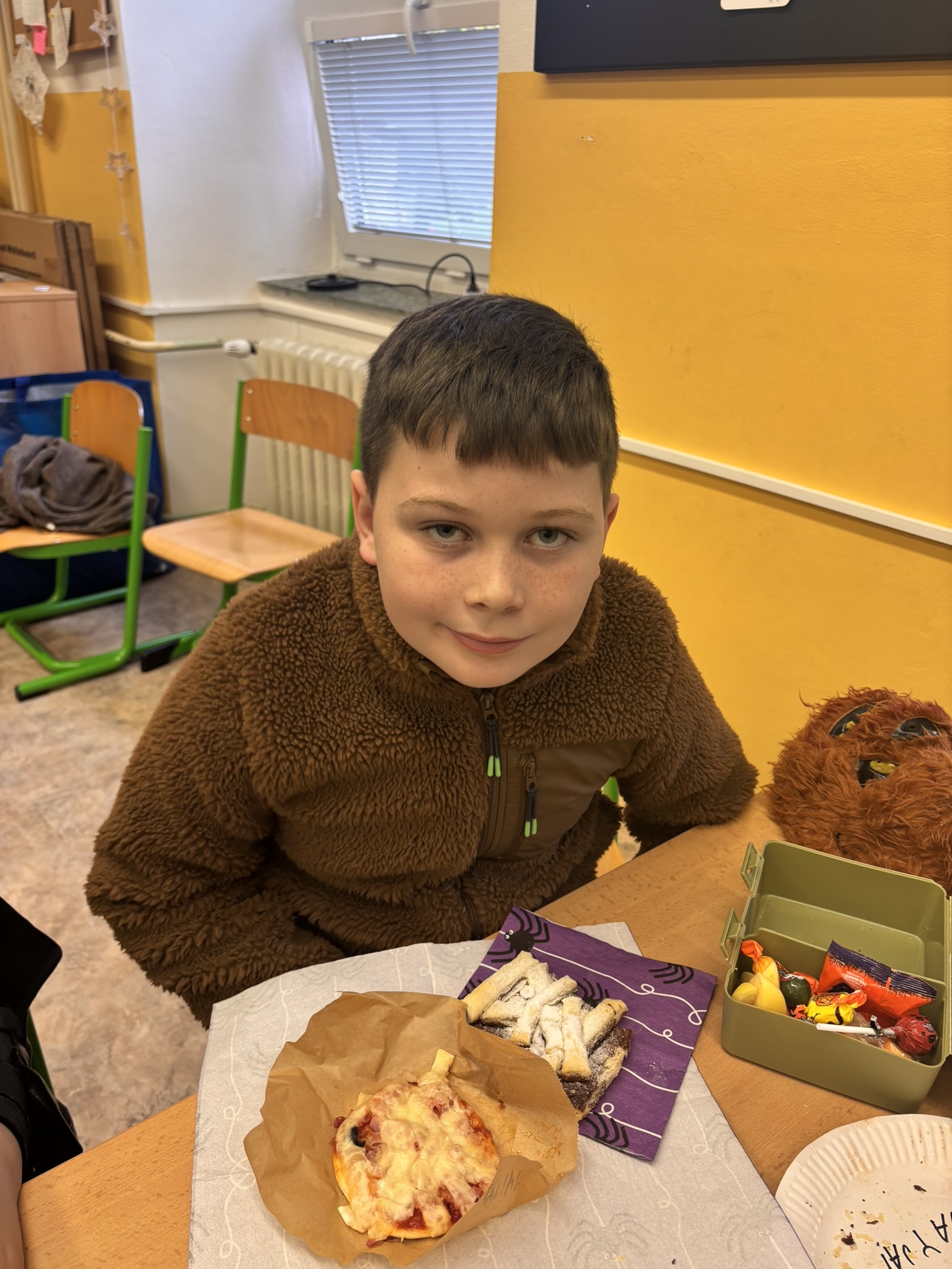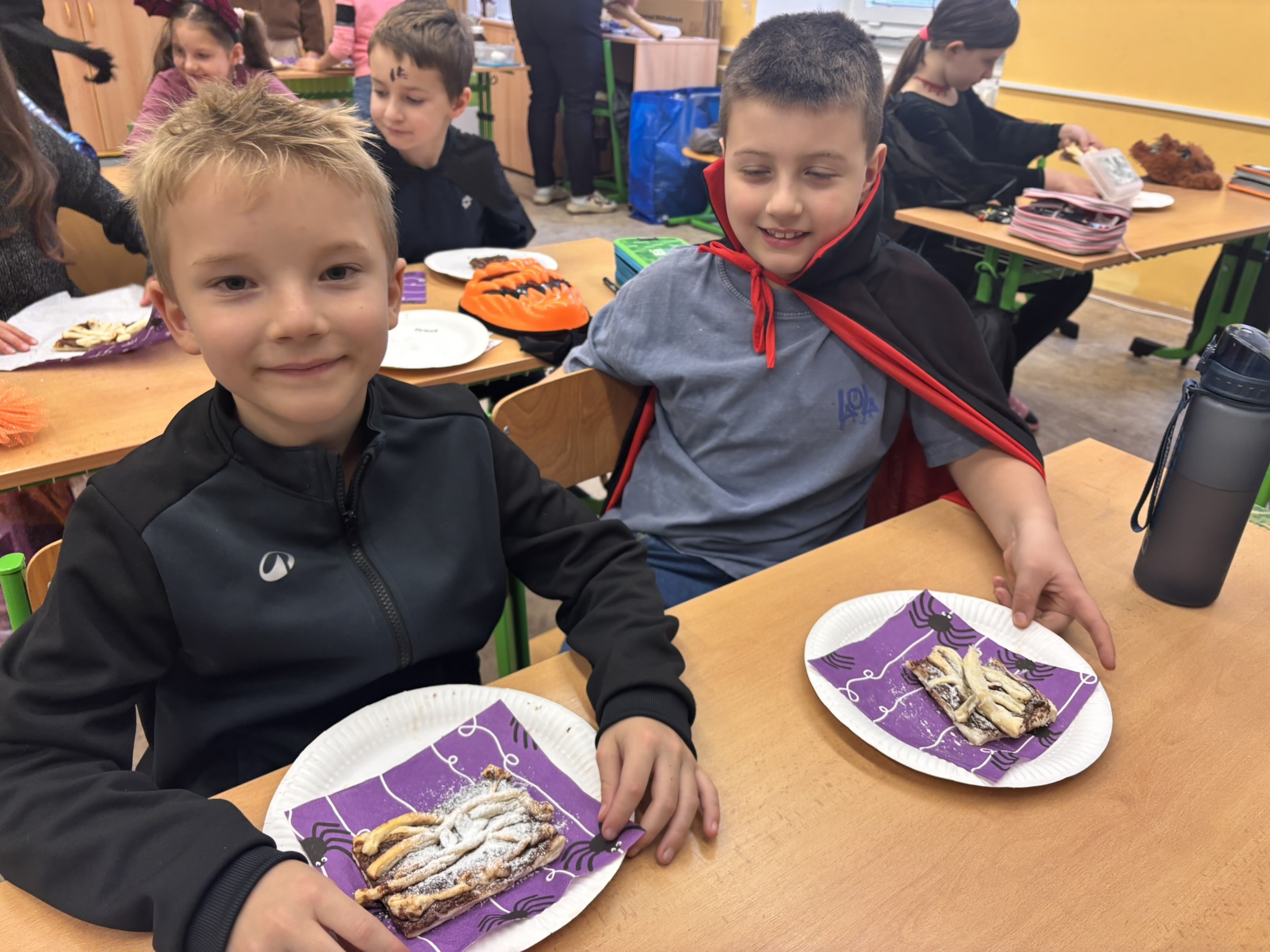 Z badatelů se děti rychle převtělily do kuchtíků a připravily si halloweenskou pizzu a nutelovou mumii. V kuchyňce si tyto dobroty daly do trouby a když se vše upeklo, tak to také dětem moc chutnalo.