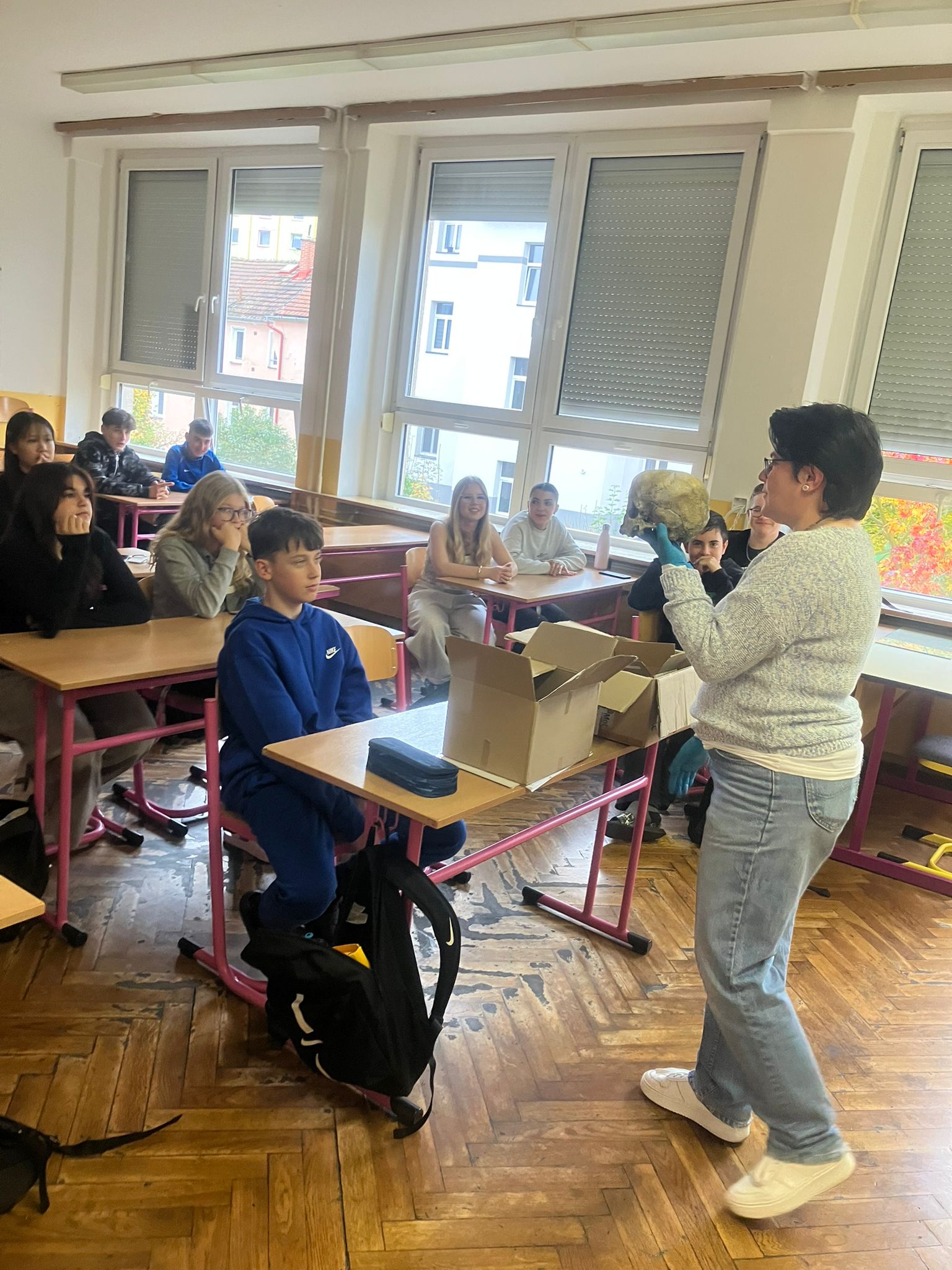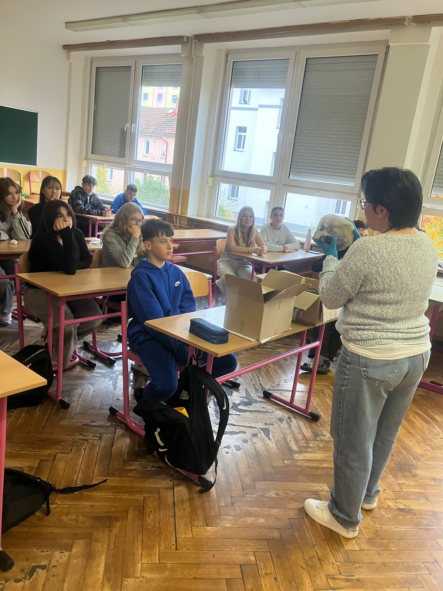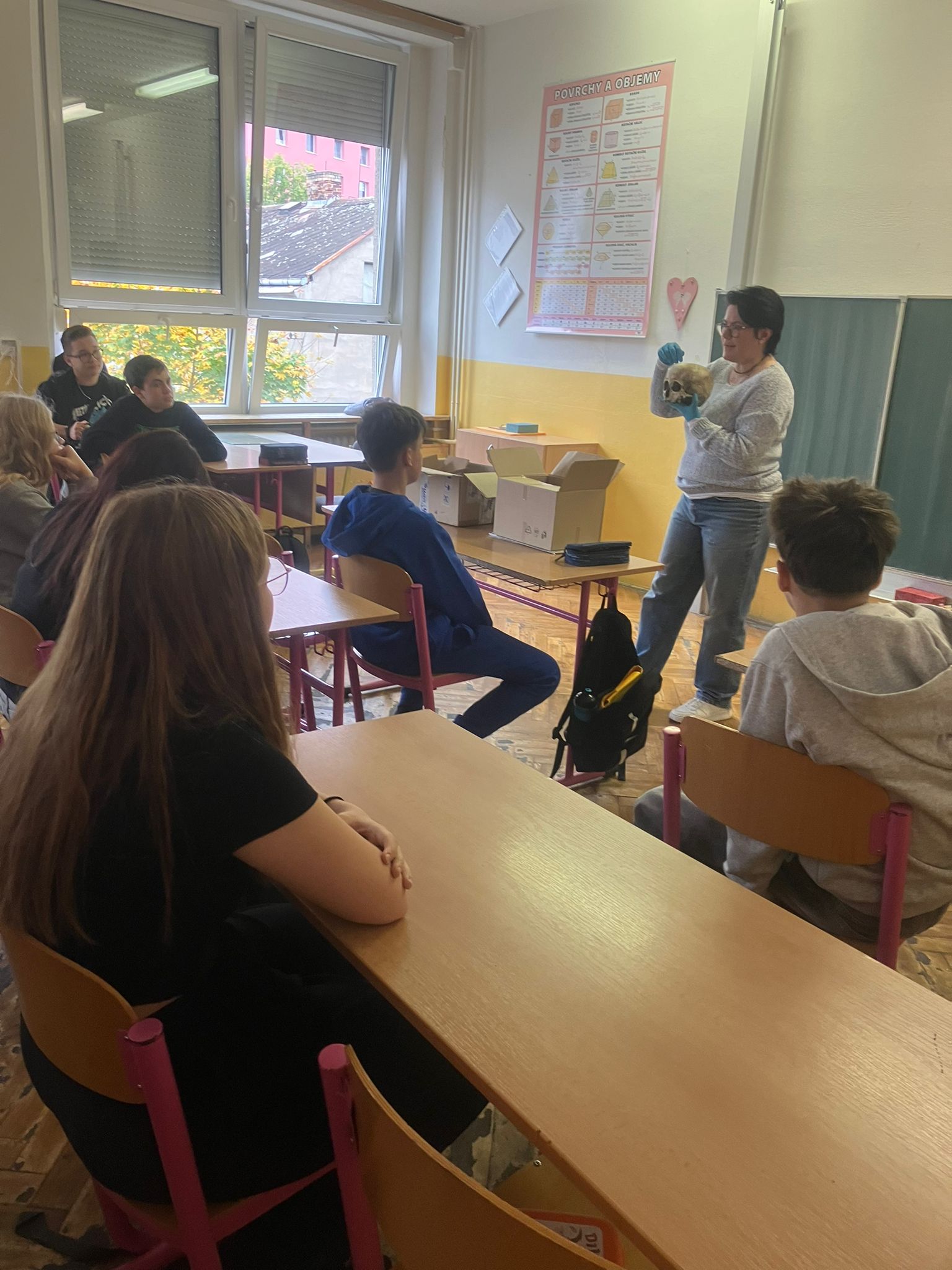 Tentokrát se žákům 9. tříd představila ve čtvrtek 16. 10. forenzní specialistka ze soudního lékařství. Její povídání bylo velice poutavé a doplnila ho celou řadou zajímavých ukázek od fotografií po lebku a čelisti.