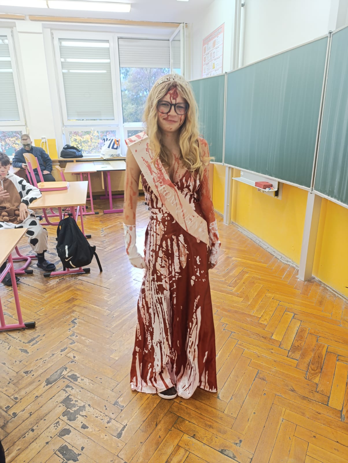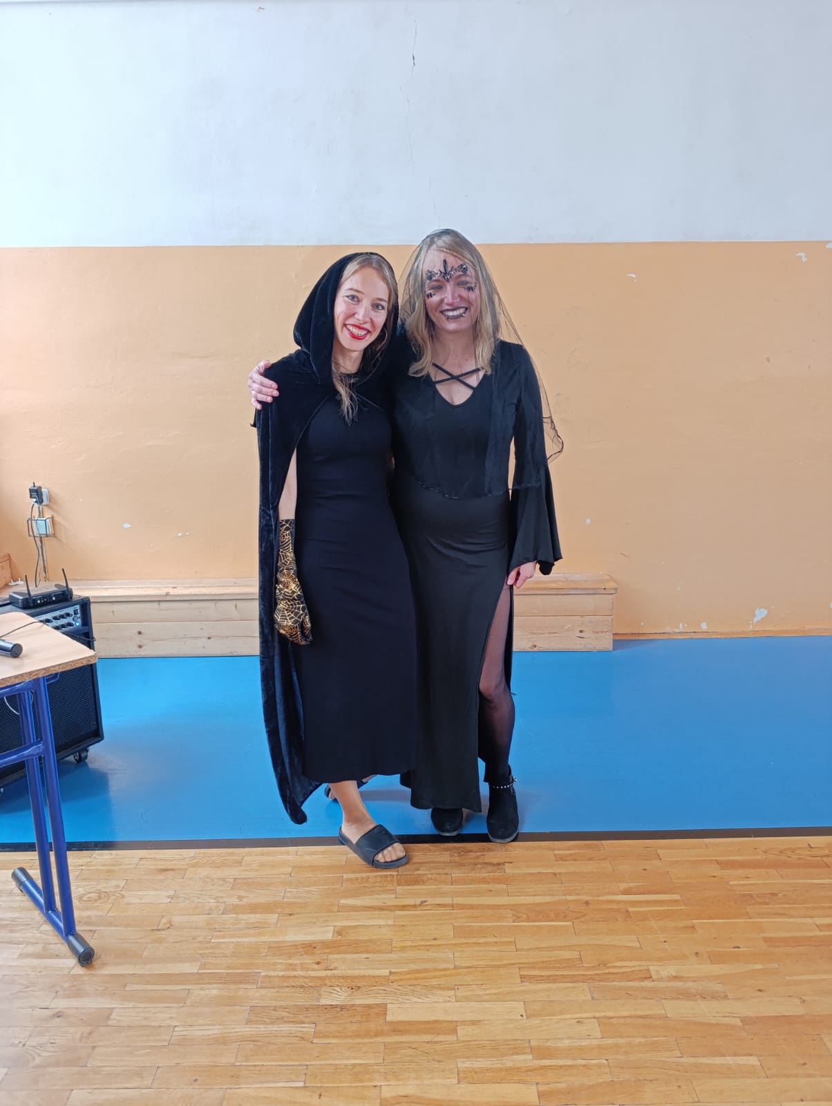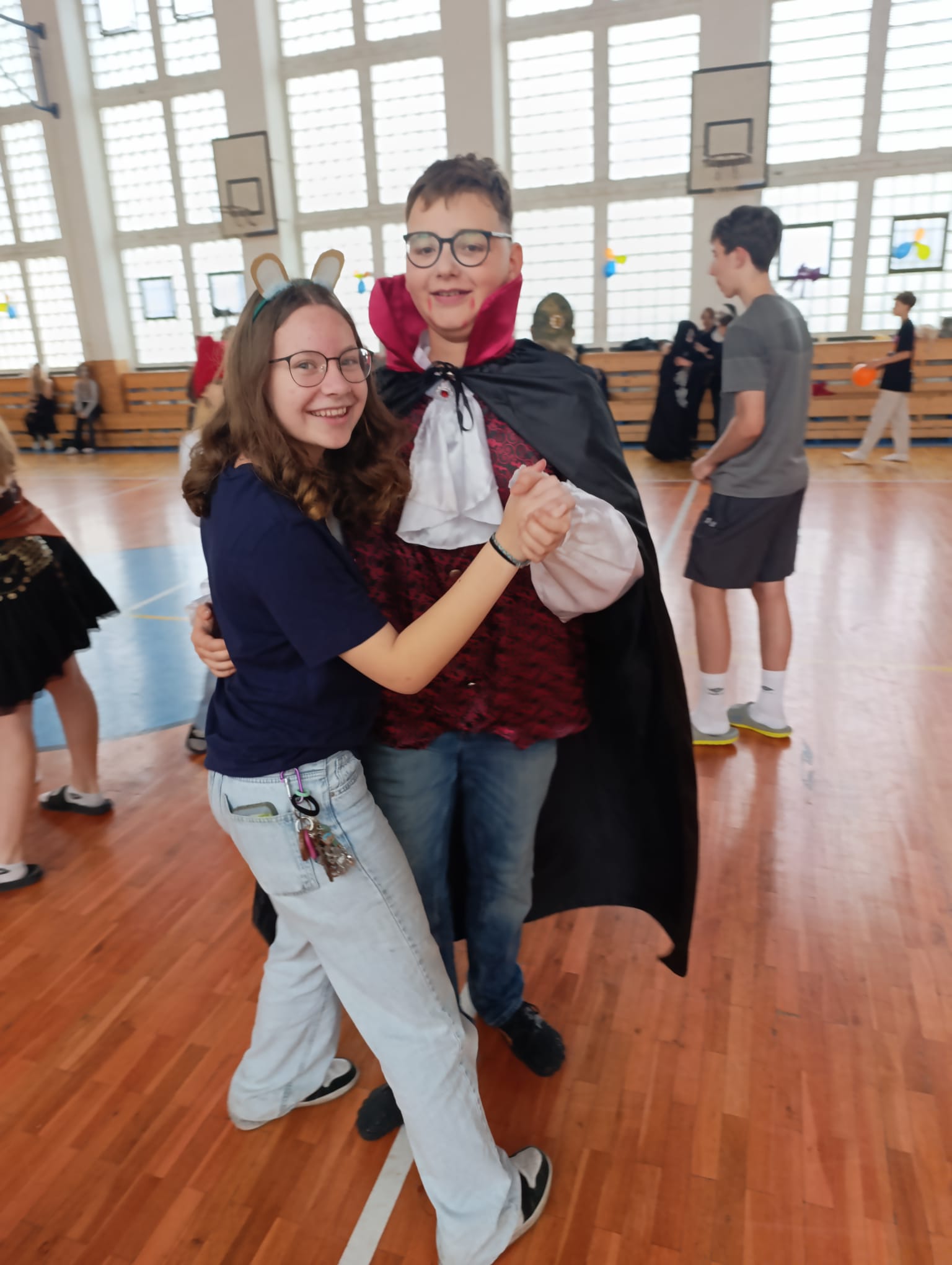 Po průvodu jsme se již přesunuli do školní tělocvičny, kde jsme si 2 hodiny užívali plnými doušky pořádnou halloweenskou párty. Nejeden kostým se propotil pořádnými tanečními kreacemi.