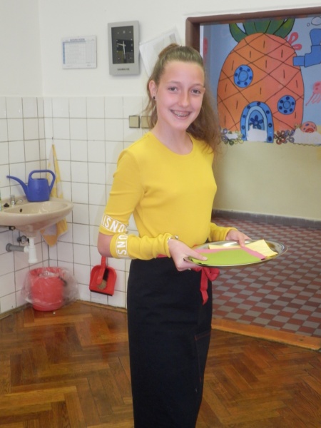 6. a 7. ročníky si vyzkoušely testy fyzické zdatnosti (člunkový běh, kliky, skoky přes švihadlo a celostní motorický test) a testy sebepoznání (postřeh, pozornost, paměť, schopnost předvídat a přesnost), ve skupinách vyplnily pracovní listy „Svět práce“ a v kuchyňce připravily jarní menu, které servírovaly ve své restauraci.