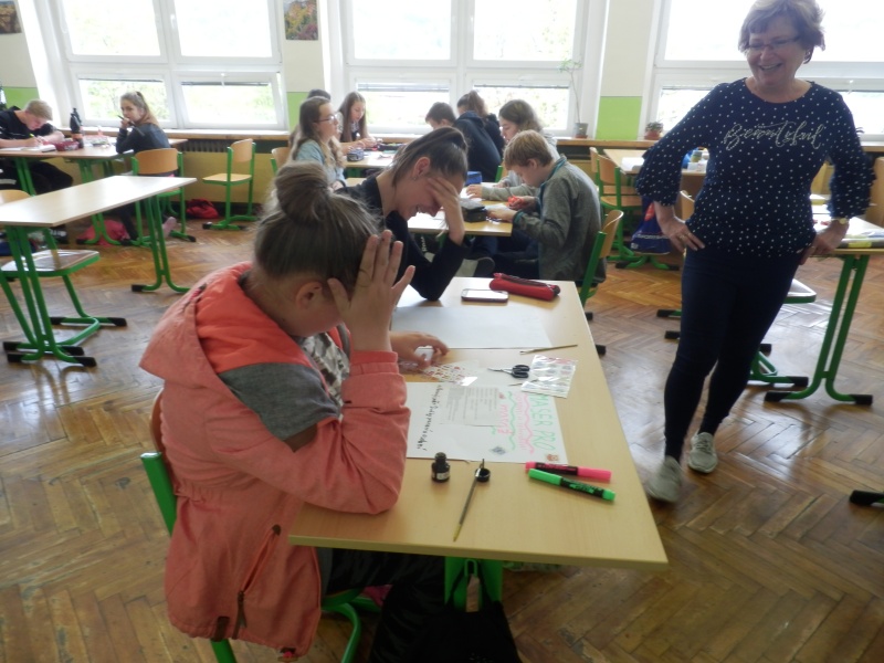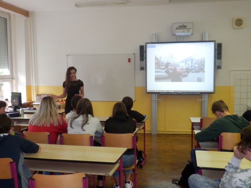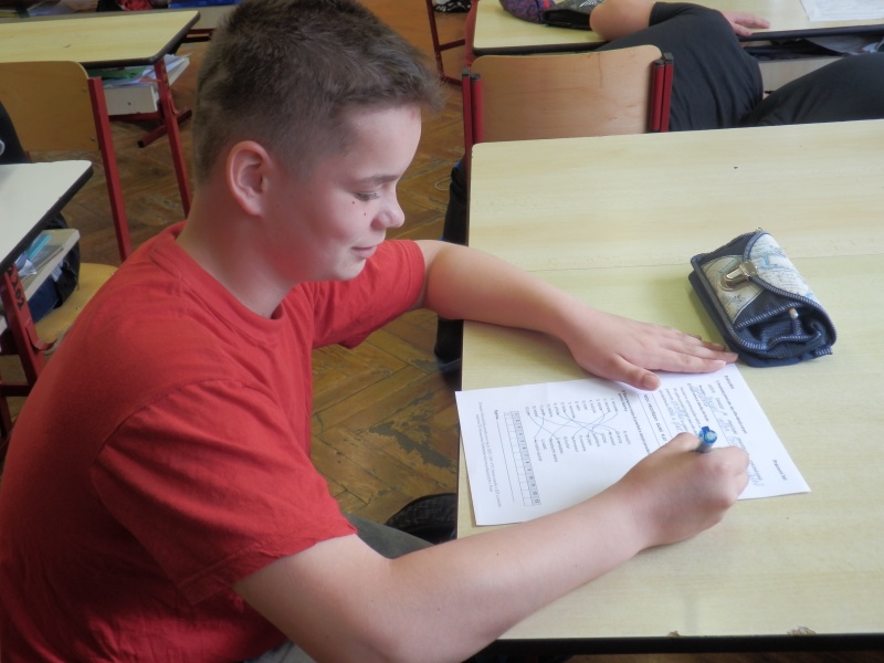 Žáci 8. ročníku zhlédli videoukázky o vybraných povoláních a vyplnili pracovní listy, na počítačích vypracovali test volby povolání, absolvovali besedu se slečnou učitelkou Jeriovou, která jim vyprávěla o svých zážitcích a studiu v cizině, a ve výtvarné dílně zpracovali plakát o svém vysněném povolání.