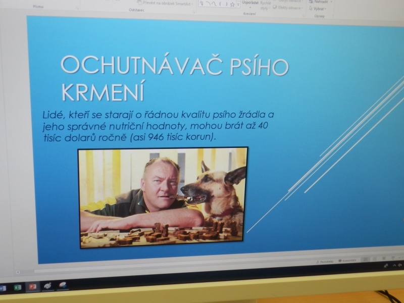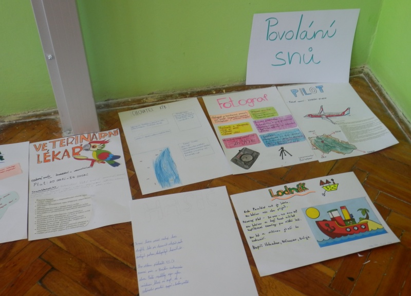 Žáci 9. ročníku zpracovávali na PC prezentace o neobvyklých povoláních, absolvovali besedu s paní Jeriovou z firmy Silike, která jim vyprávěla o svých vzorech, své volbě školy a povolání, o vlivech na tento výběr. Ve výtvarné dílně tvořili plakáty o svém povolání snů a nakonec si procvičili svou anglickou slovní zásobu při vytváření životopisu v angličtině.